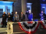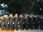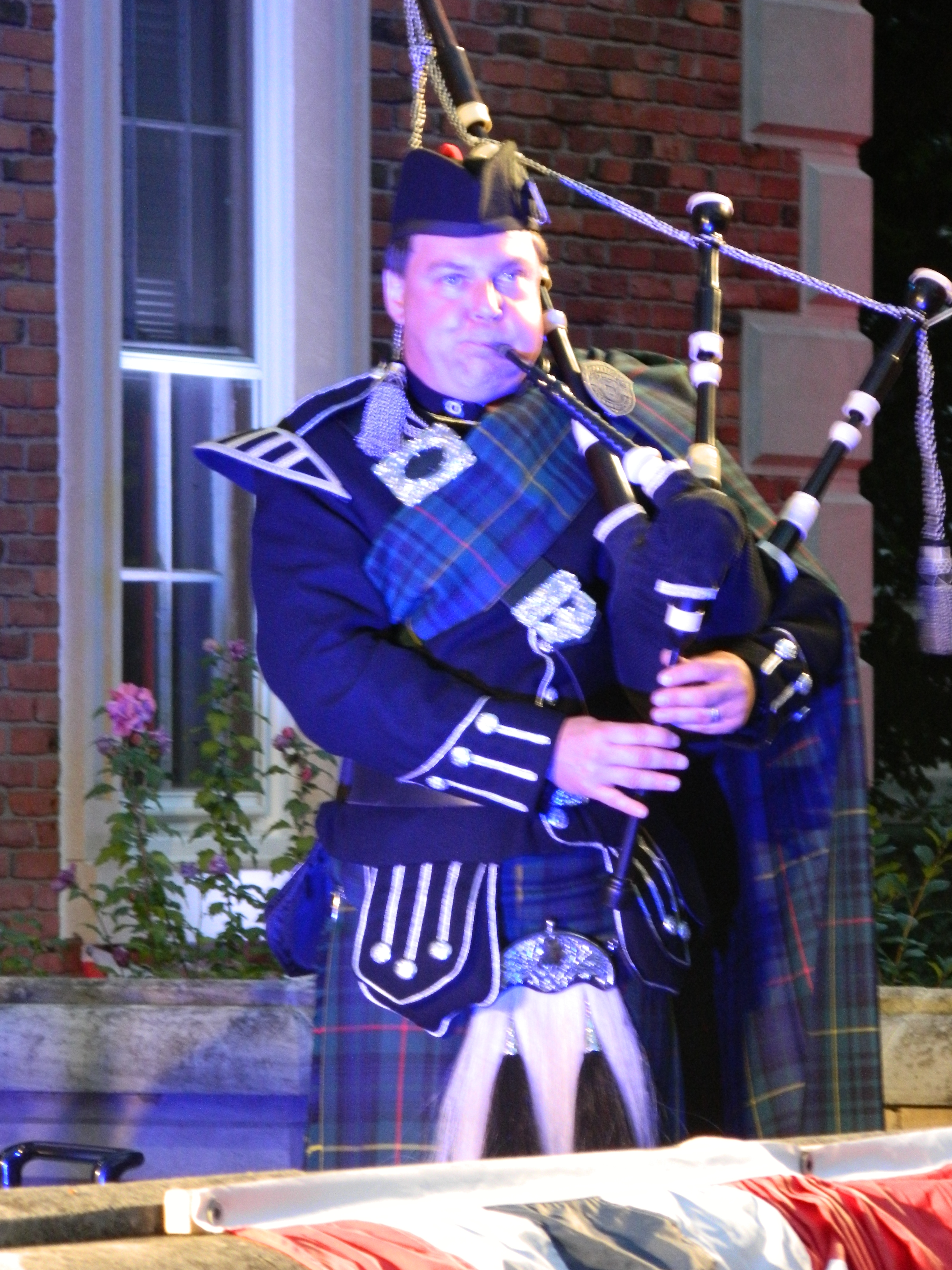 In front of town hall, which is located on the green and was illuminated and draped in American flags, a brief ceremony took place at 7:00 p.m. – including speakers, an a cappella rendition of the Star Spangled Banner by the band Tirebiter, a traditional bell-tolling from the Windsor Volunteer Fire Department and “Amazing Grace” performed by bagpiper Richard Shea.