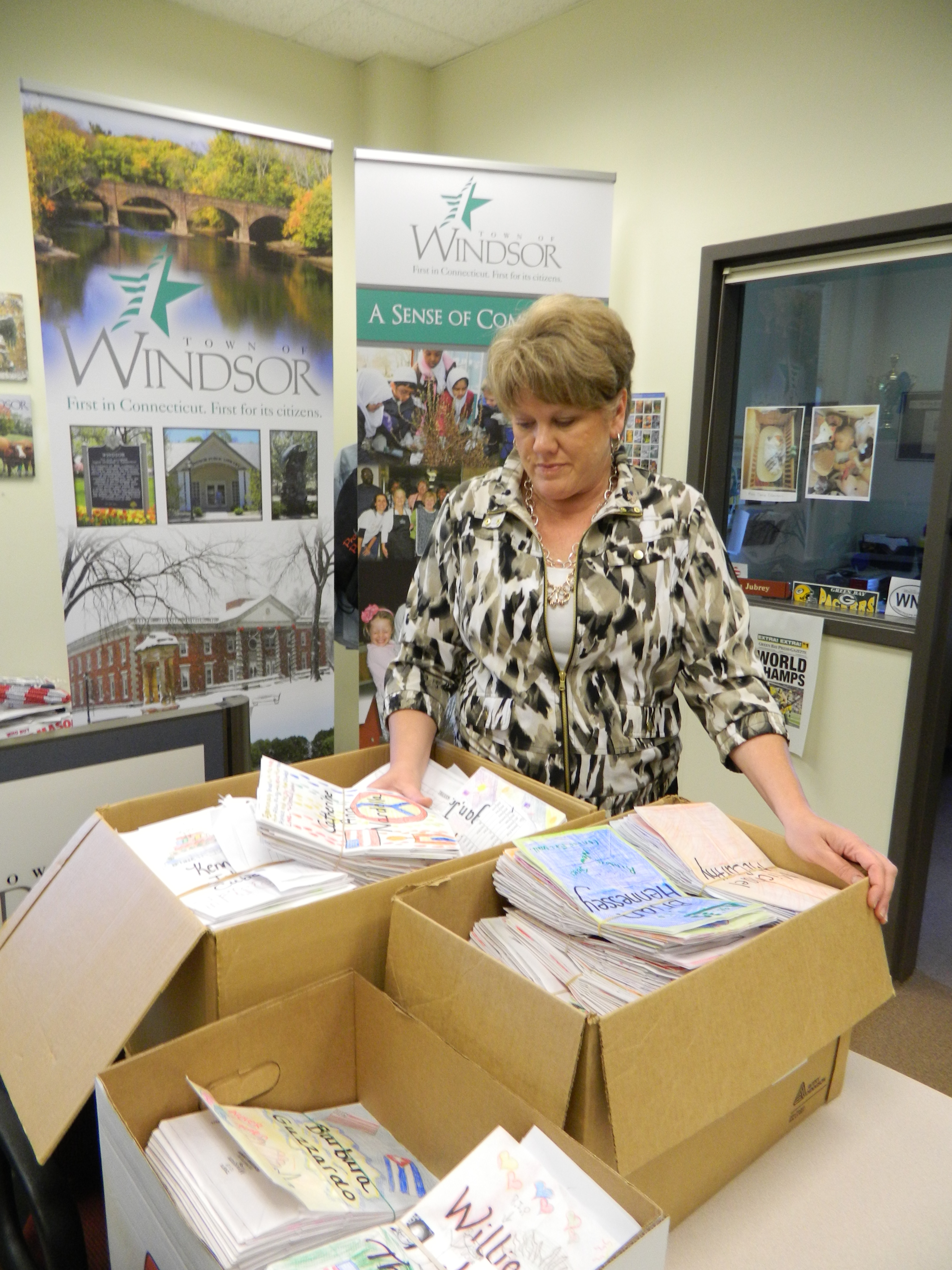 Sage Park Middle School and Windsor High School researched the personal histories of the victims online and decorated 1,900 of the bags. Other Windsor students from Madina Academy-a Muslim school, St.Gabriel’s School and Trinity Christian School, as well as, inmates at the York Correctional Institution decorated the remaining bags.
