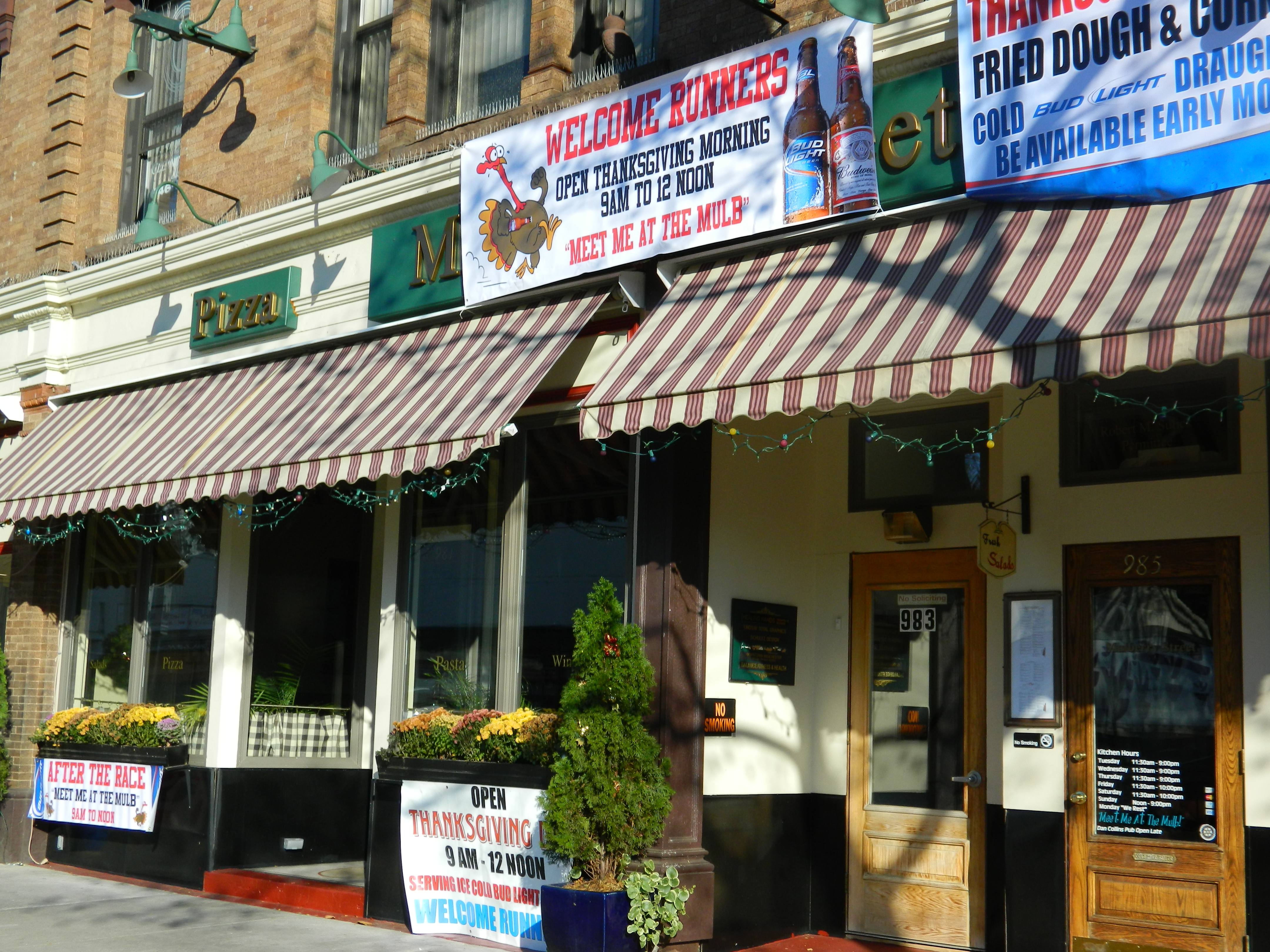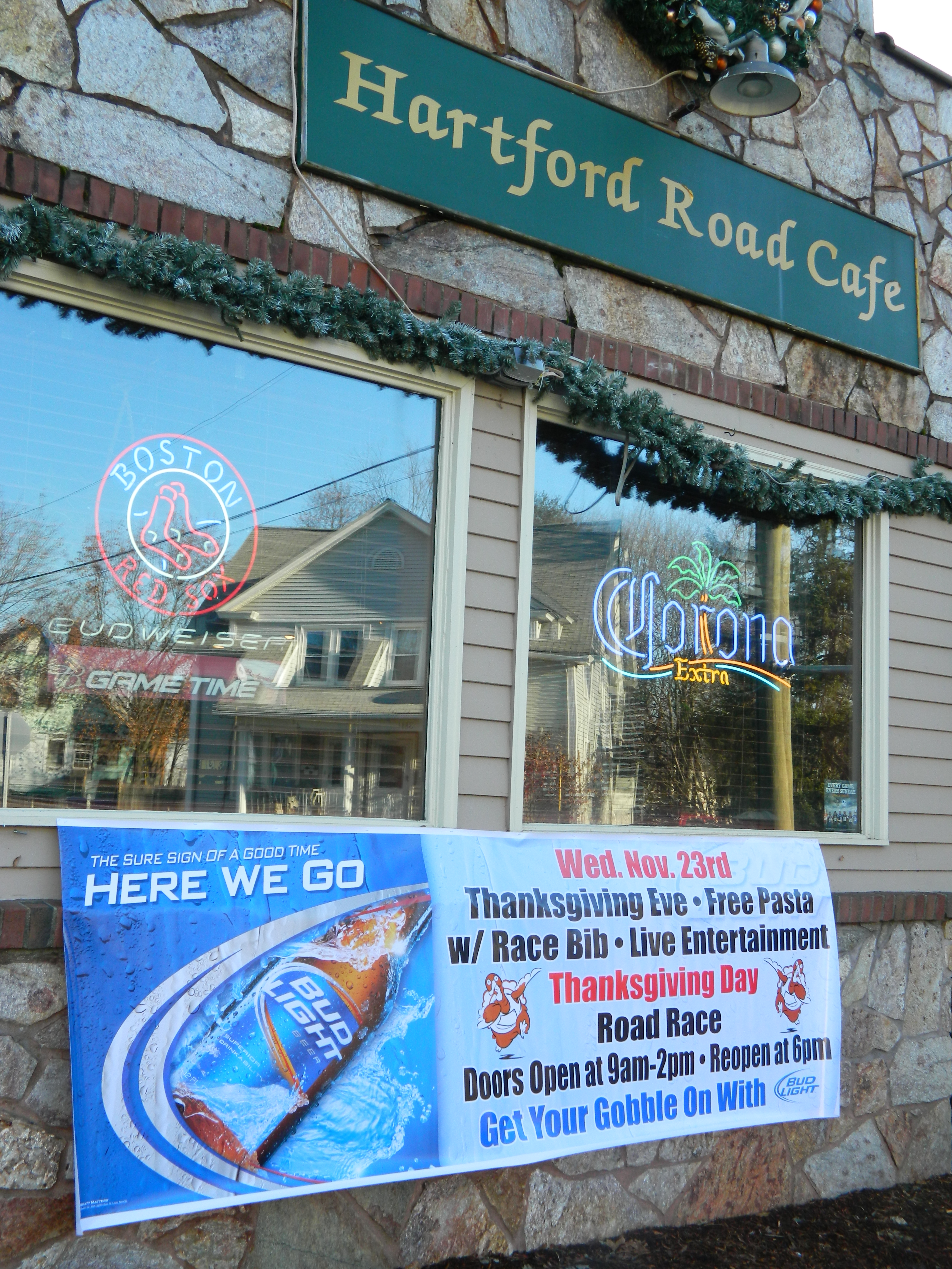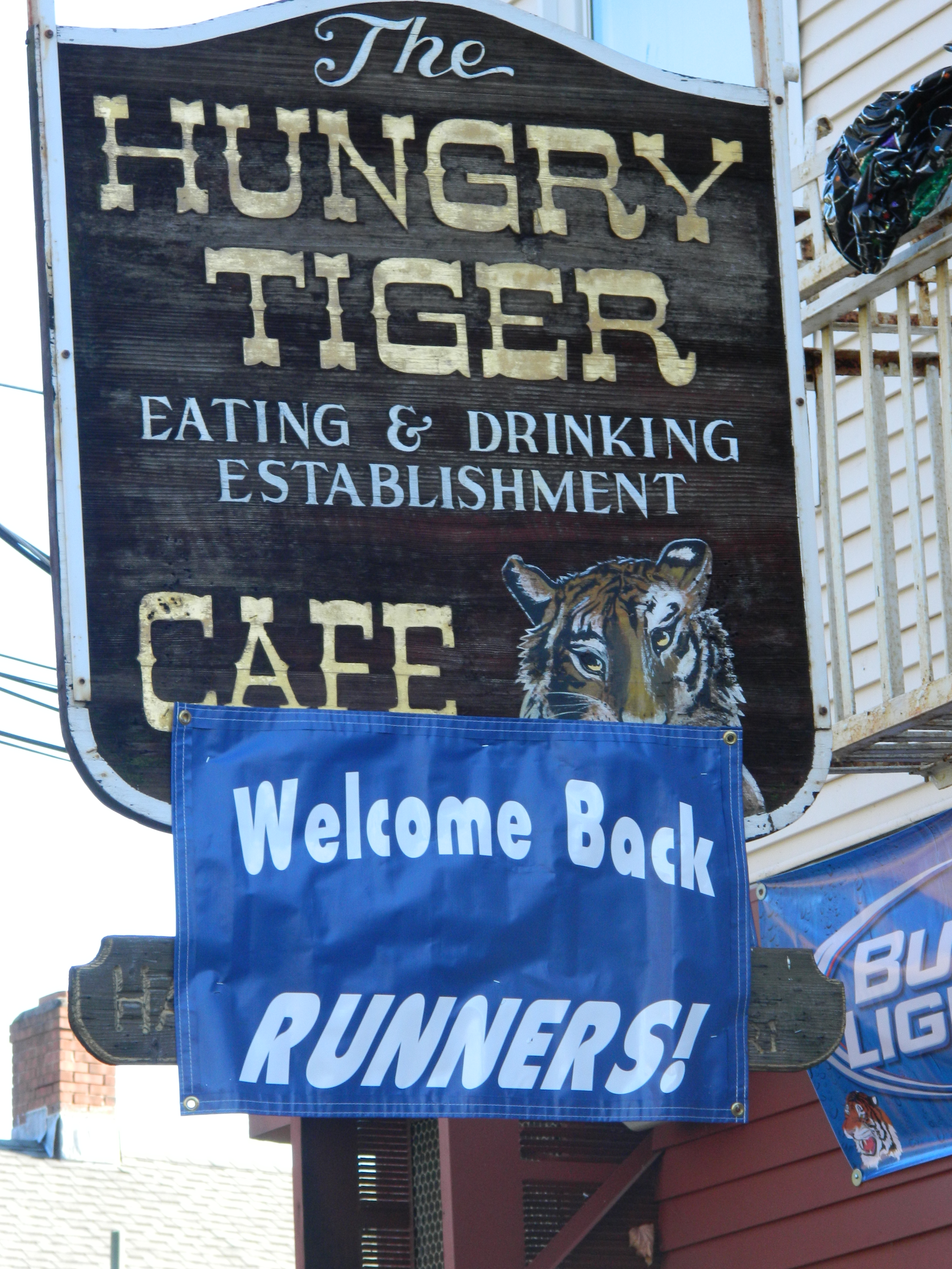 As usual, local restaurants and pubs put up welcome signs for the runners.