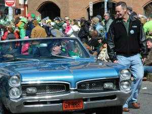 On leave from duty in Afghanistan, Staff Sgt. Danny Nolan of Windsor, a longtime Hartford firefighter, surprised his colleagues greeting them on the parade route. Before passing away, Nolan’s father retired from the HFD as deputy chief and was a co-founder of the Hartford St.Patrick’s Day Parade. Nolan said he was especially glad to be able to attend this year because the HFD chose the event to honor Frank Droney, who rode in the parade. According to Nolan, Droney is among the last surviving firefighters who responded to the Hartford Hospital fire 51 years ago, which resulted in changes in hospital safety procedures and building codes throughout the nation. Droney fought that fire side by side with Nolan’s father whose company was the first to respond.
