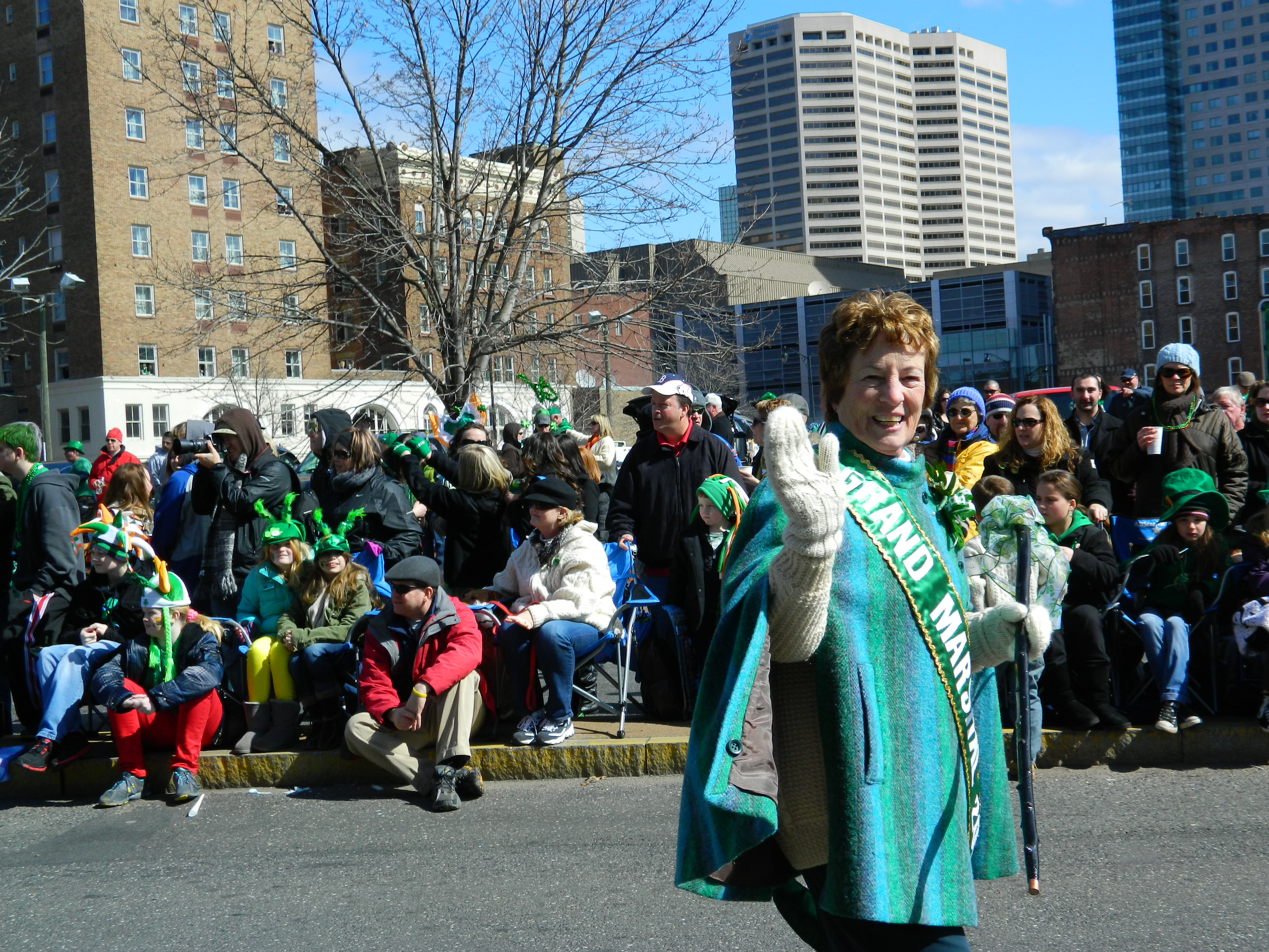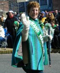 Sister Peggy Evans, an East Catholic High School faculty member, was the Parade Grand Marshal and local television anchor, Irene O’Connor of WFSB, marched – in green high, high heels -as