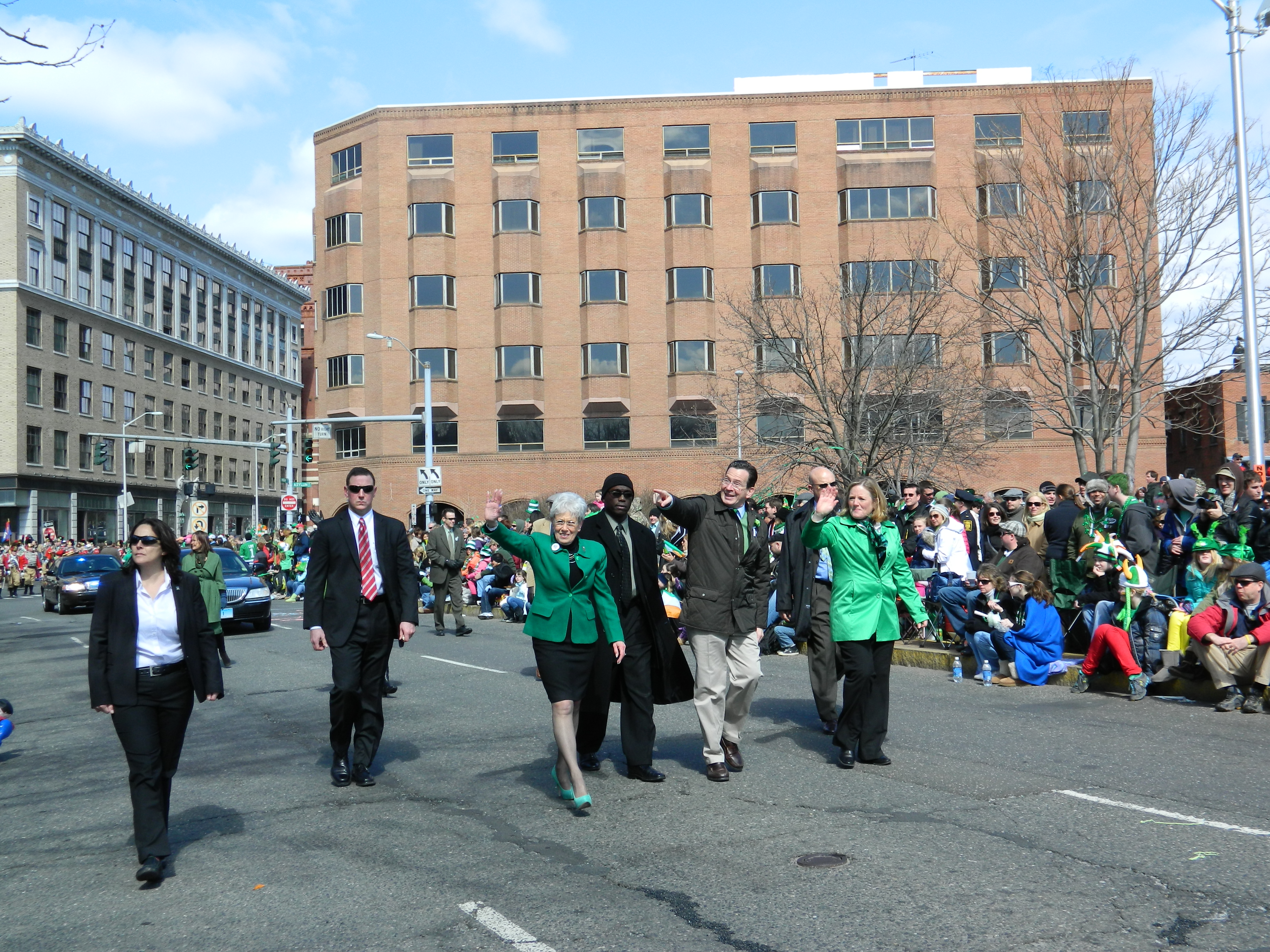 Nancy Wyman also sporting green high heels, were among the dignitaries in the parade. Participating as well, were U.S.Senator Richard Blumenthal, Congressmen Joe Courtney and John Larson, Secretary of State Denise Merrill and many local officials including Hartford Mayor Pedro Seggara.