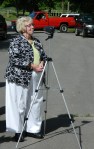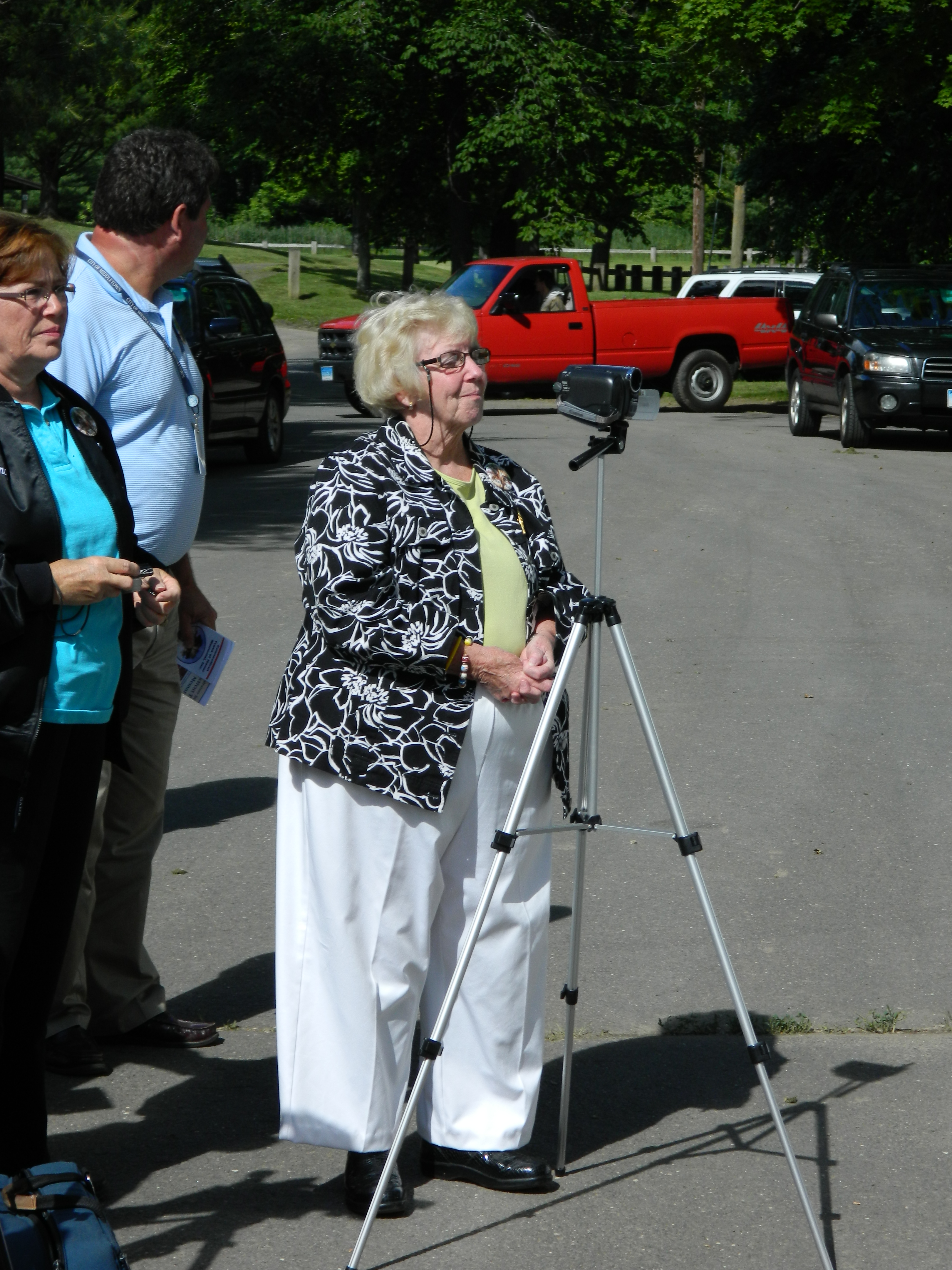 Ann Walsh of Windsor,CT., a member of the Connecticut Trees of Honor Memorial, Inc. Committee shoots video of the June 5 memorial site selection for WIN-TV.