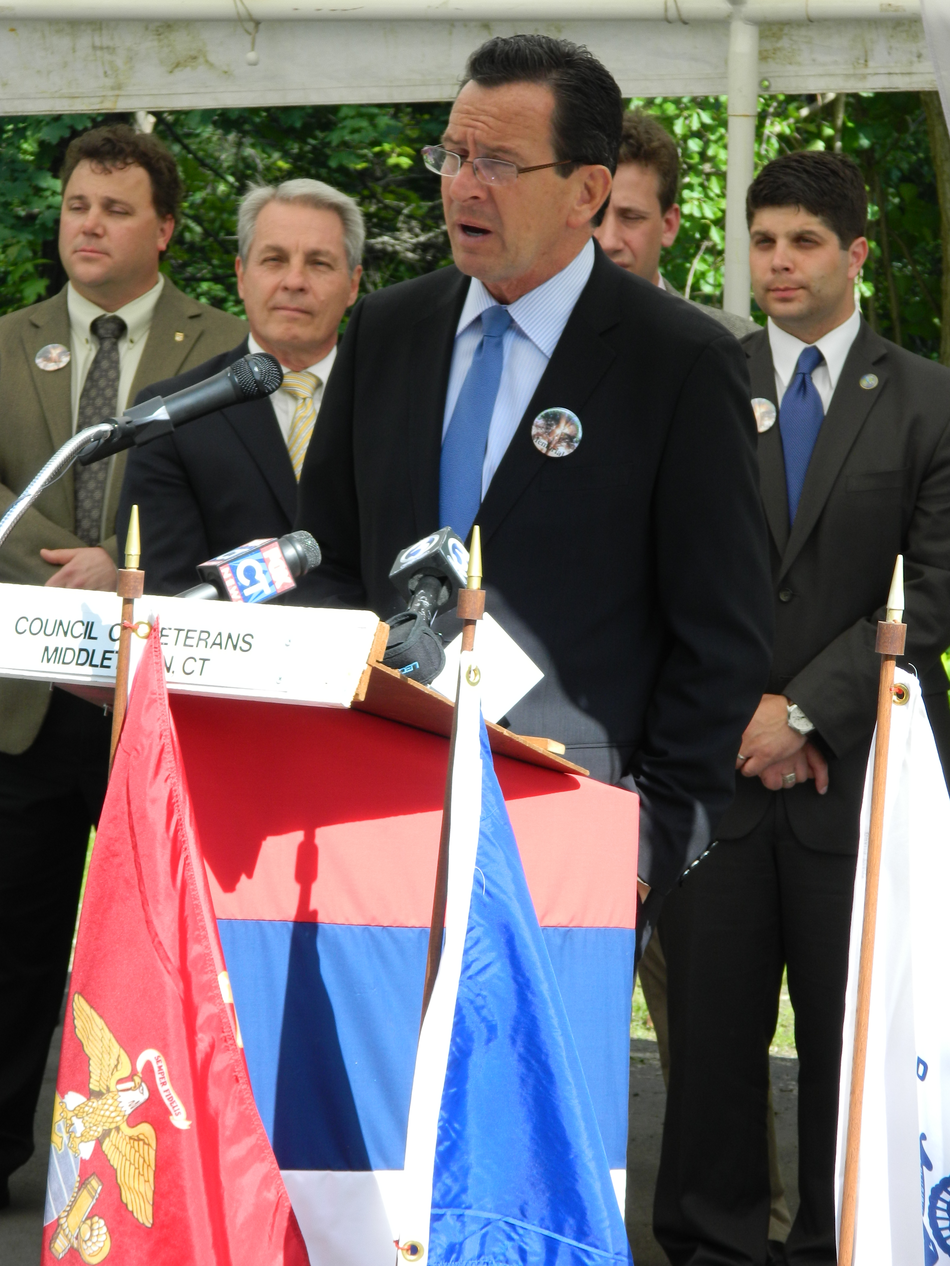 Gov. Dannel Malloy spoke June 5, at Veterans Memorial Park in Middletown, Connecticut where a “Trees of Honor” living memorial will be built.