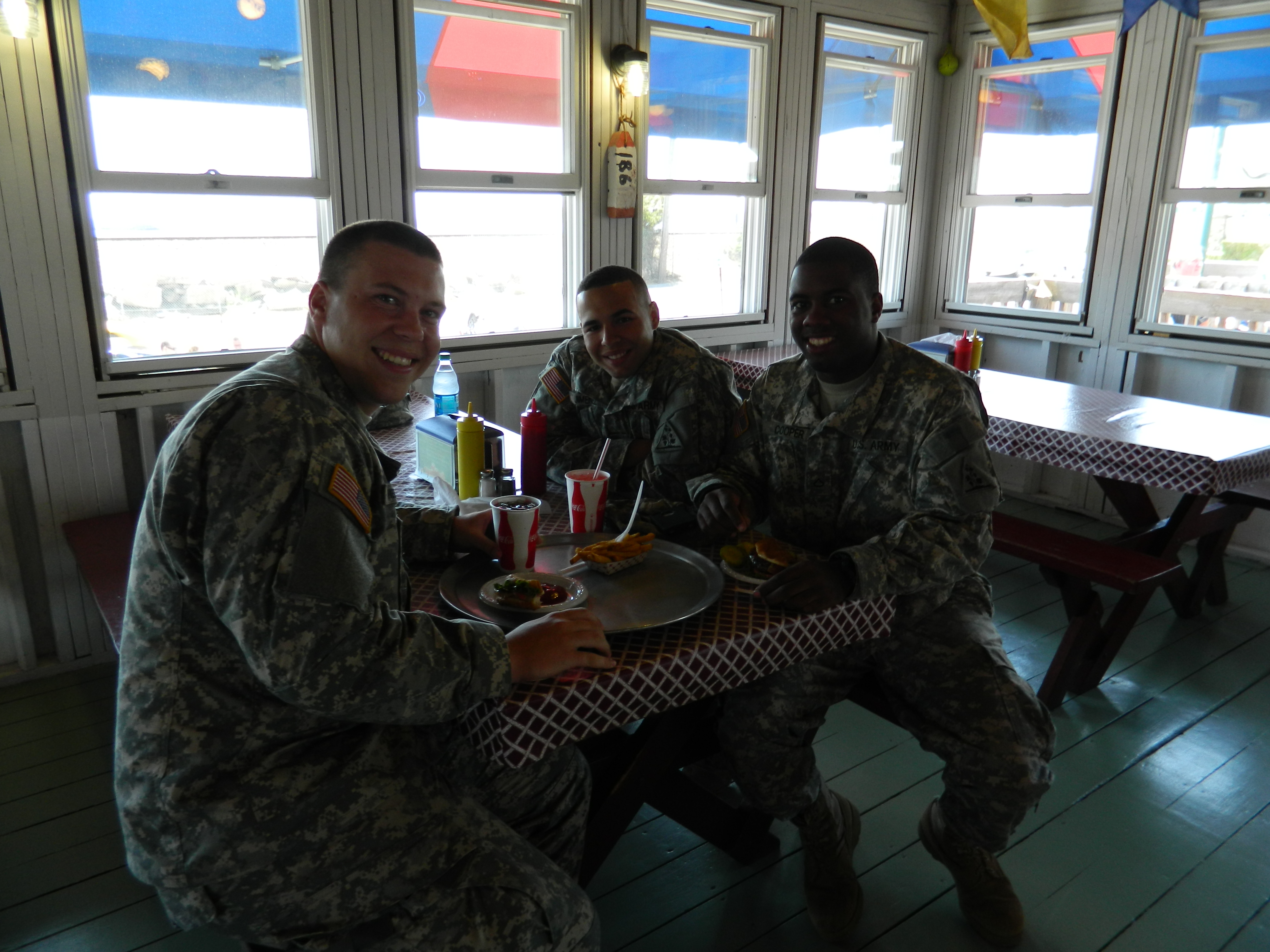 Members of the 143rd unit out of West Hartford enjoy lunch at Dad’s Restaurant. They are training at nearby Camp Niantic.