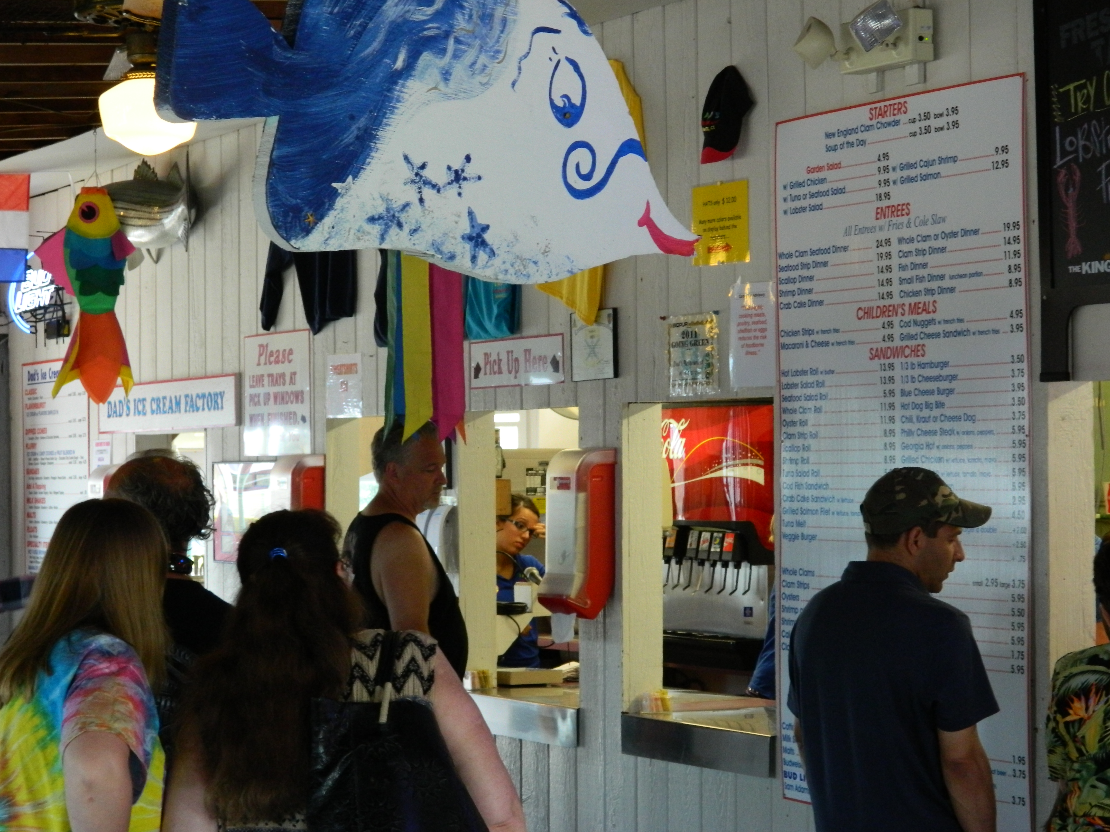 As for the food, the steady line of customers who step up to the windows and pick up large, heaping full plates of whole belly clams, clams strips, onion rings and stuffed lobster rolls speaks for itself.