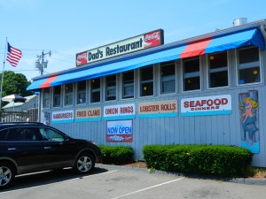 What a great treat for dad on Father’s Day to visit Dad’s Restaurant in Niantic, Connecticut. Not far from Rocky Neck State Park, Dad’s is a terrific seafood and burger shack perched on a small hill directly across from the ocean. It has two outdoor decks and inside the ocean breeze floats through screened windows across the picnic tabled dining area. Colorful, ocean themed decor creates a fun, relaxed atmosphere. Husband and wife Pete and Debbie Salomonson run this place with an attentiveness to their customers that sets a tone for the friendliness of the entire staff.