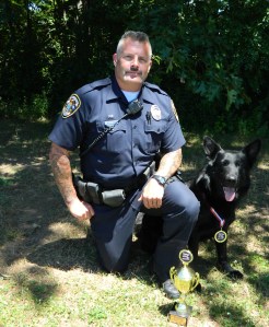 Photo by Jacqueline Bennett Officer Steve Vesco & his K-9 partner Iko shown with the 1st place trophy and medallion they won at the 2012 USPCA Region #4 K9 Field Trials