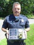 Photo by Jacqueline Bennett Officer Steve Vesco displays the plague presented by the USPCA in memory of his deceased partner, Jag.