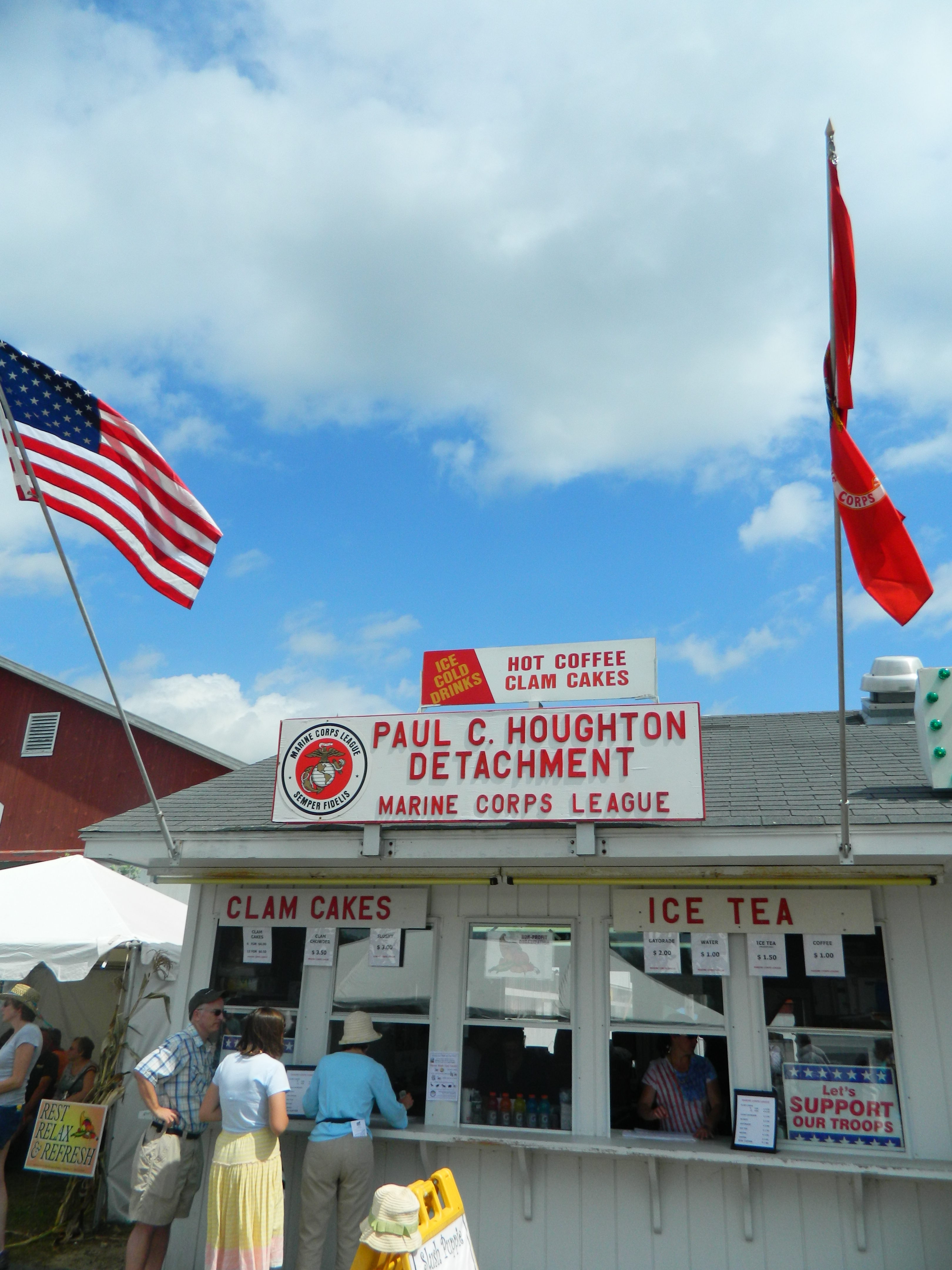 Of course, there was food galore – corn chowder, baked potatoes crowned with melted cheese and broccoli or bacon, potato skins, steak & cheese grinders, hotdogs, hamburgers, pizza and all manner of desserts – apple crisps, strawberry, blueberry and peach shortcake, as well as, soft serve chocolate/vanilla twists ice cream cones dipped in cherry or chocolate toppings.