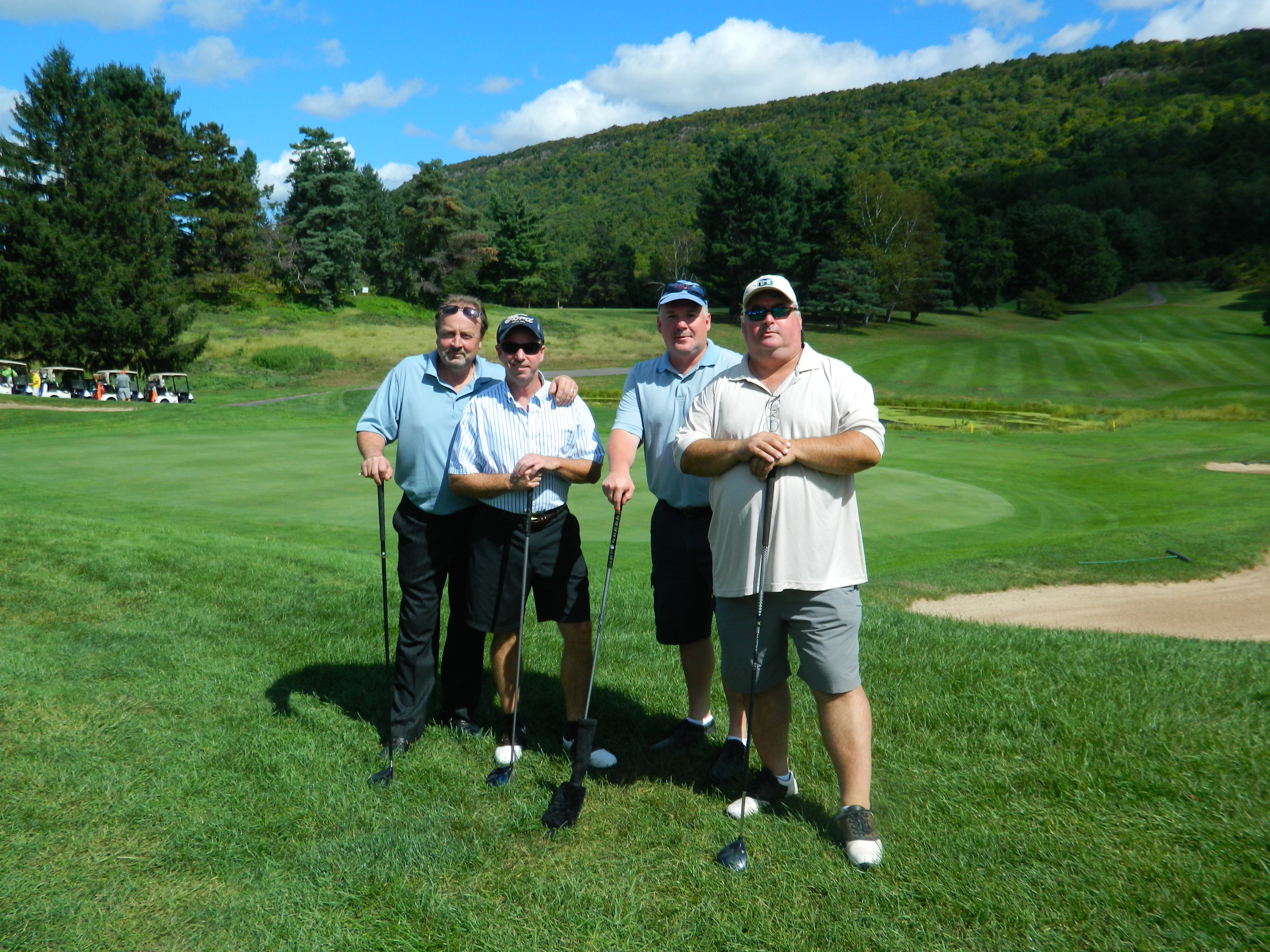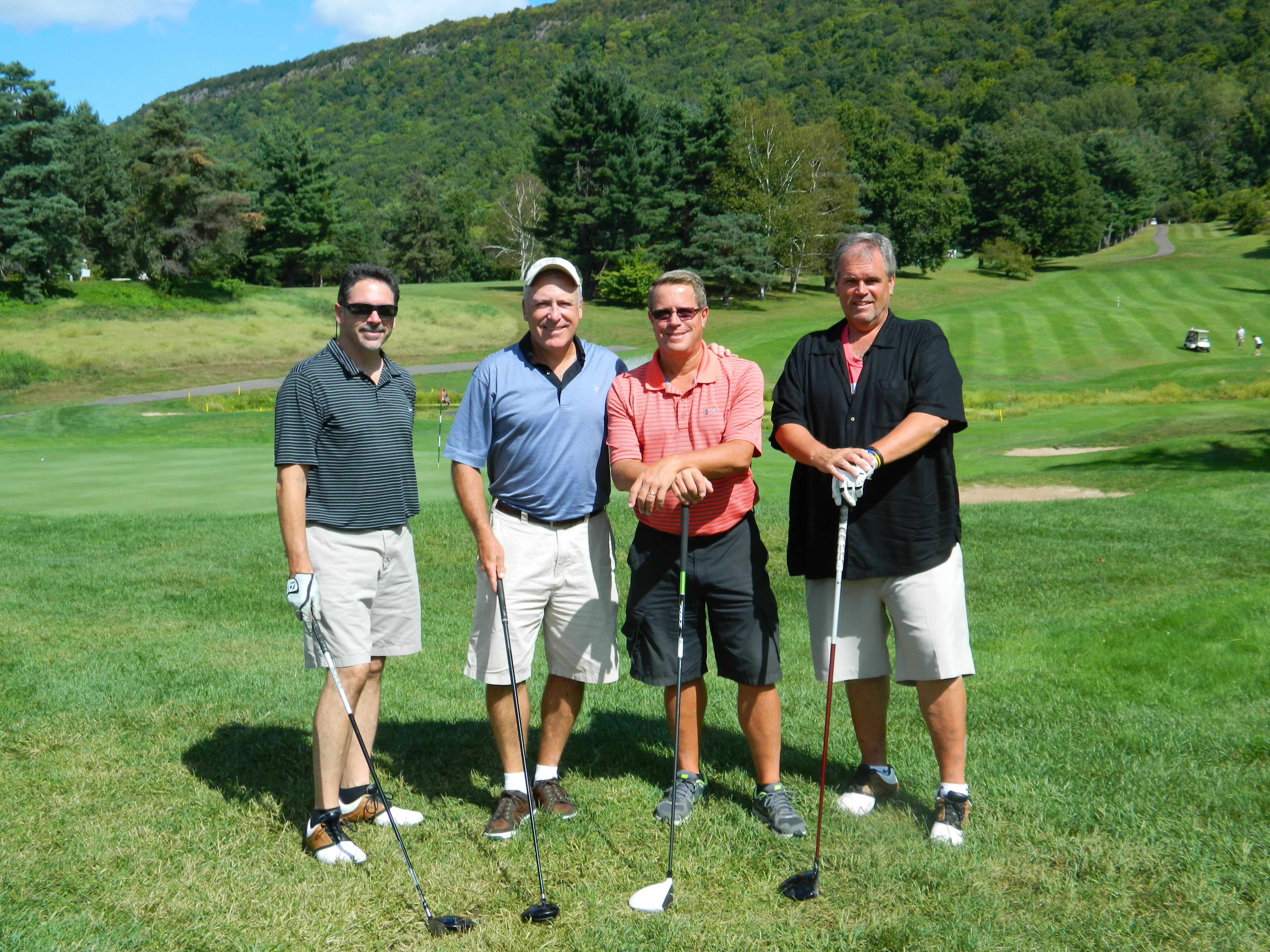 Joining Jim Walsh’s foursome were Keith Samolyk, Will Hoddinott and Jim Ennis. Mike Deneen, part owner of the Union Street Tavern in Windsor was on hand too, joined by T.J.Selig, Paul Hansen and Paul Murray. The Union Street Tavern is hosting the 6th Annual Tavern Trot, 3.5 mile road race this Sunday, September 16. Proceeds from the race will, as well, benefit Alex’s Lemonade Stand Foundation. (For more information go to:unionstreettavern.com/taverntrot.) Another foursome was Windsor High School golf coach Gregg Hannan with Gary Barcher, Carlos Salmon and Matt Tatelman.