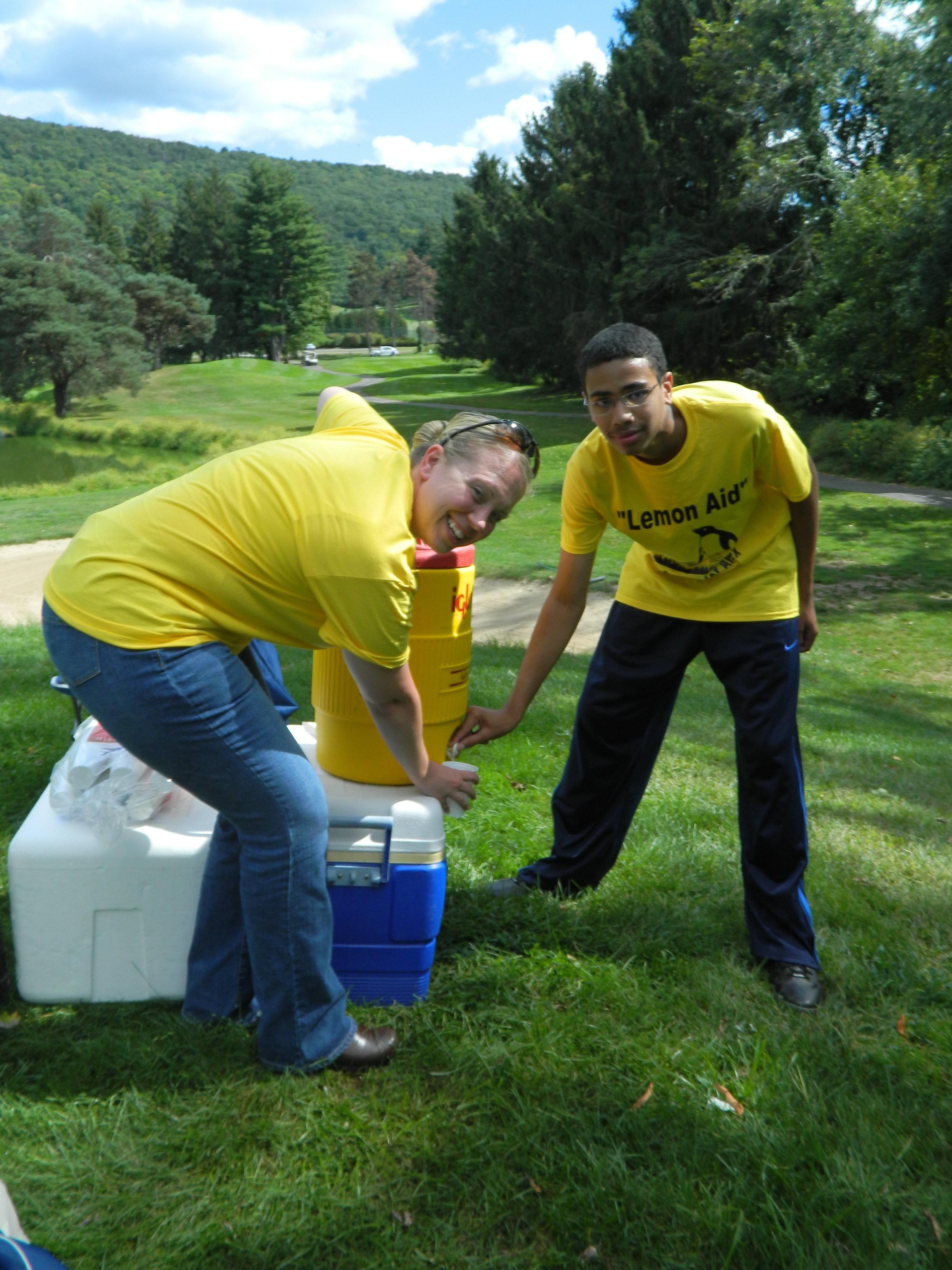 Windsor, Conn. police officer Teresa Baboolal and her son Tyler served lemonade to golfers out on the course.