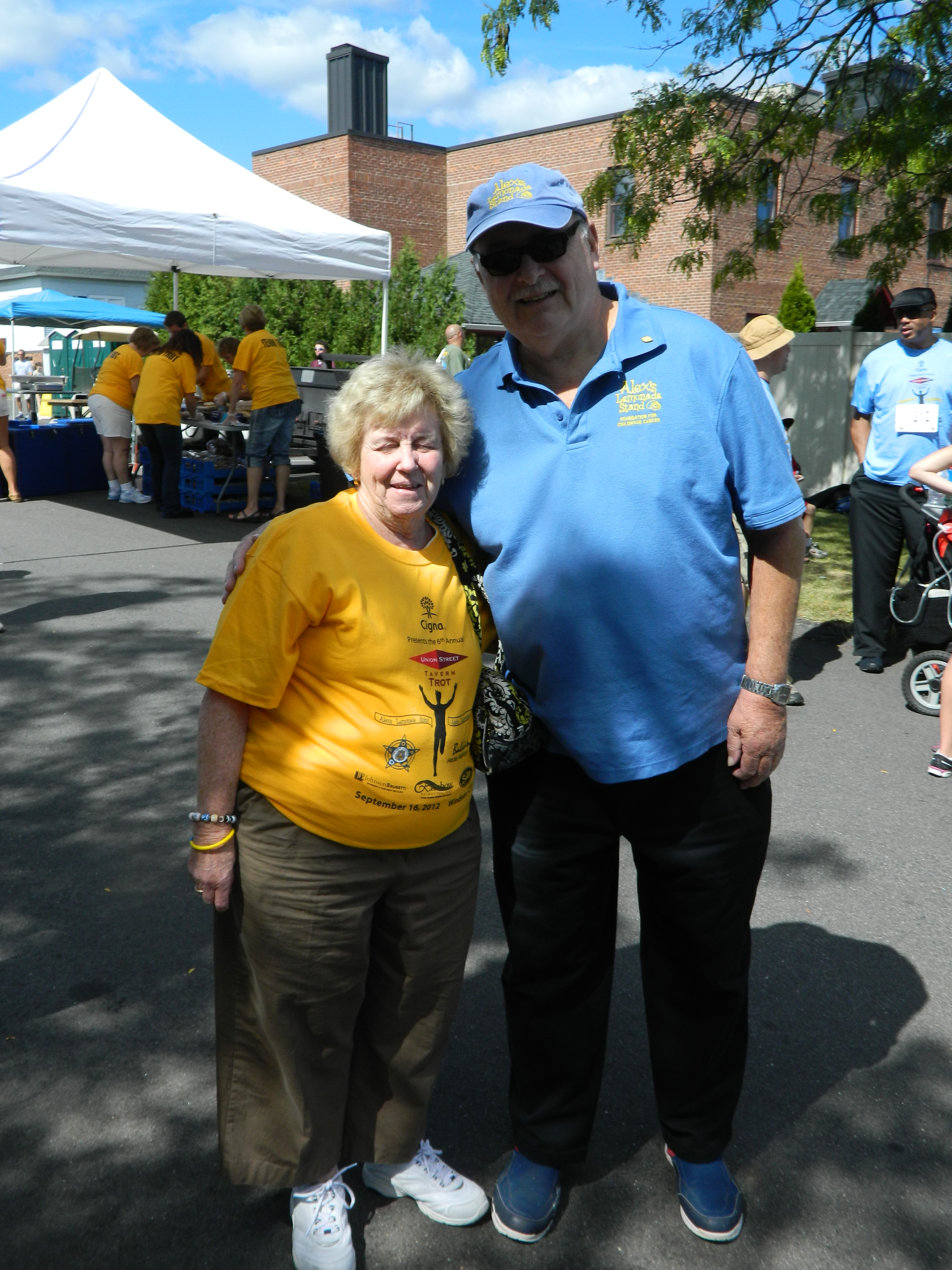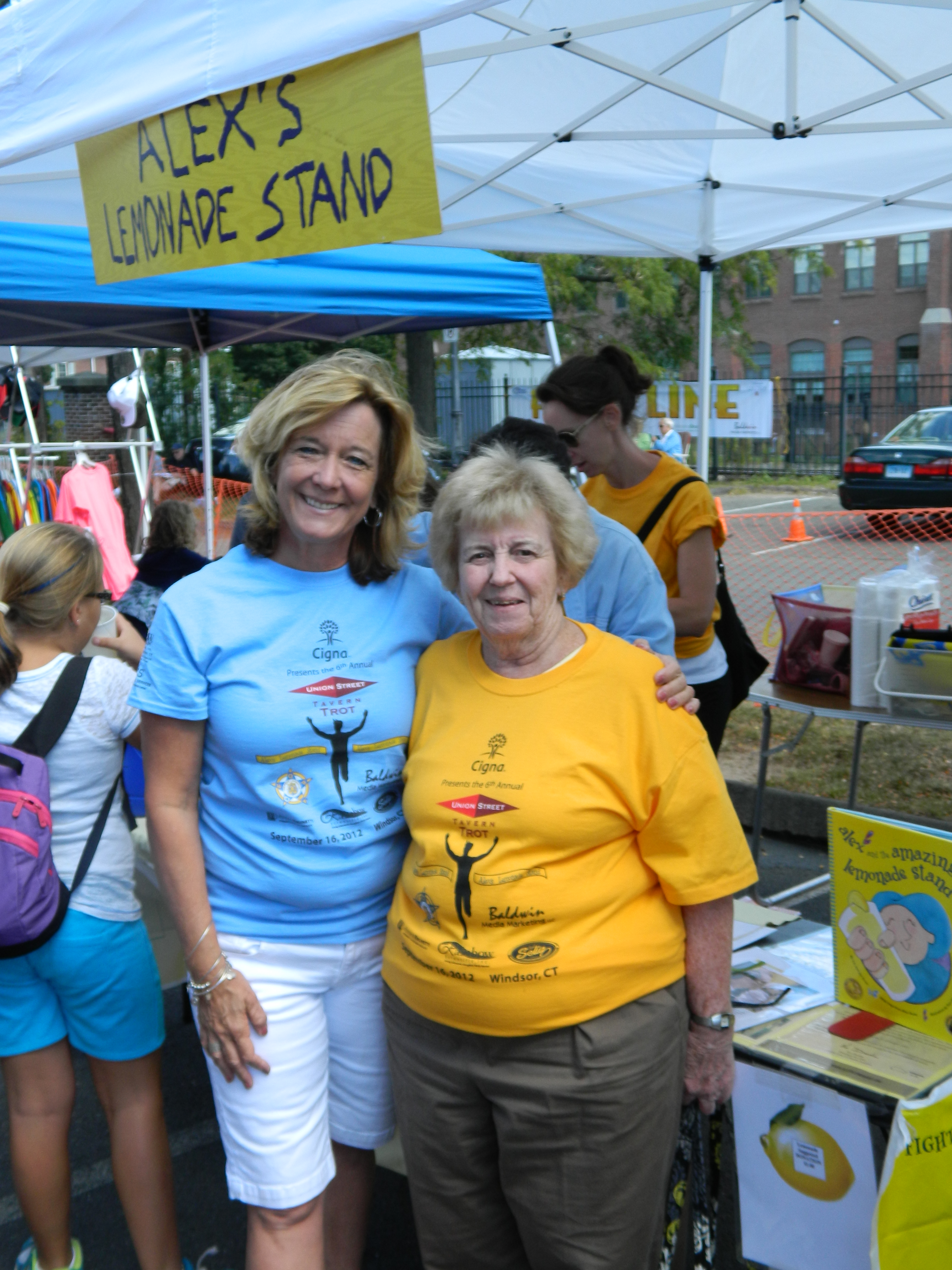 ALSF volunteer Ann Walsh with Pat Flynn, Alexandra “Alex” Scott’s grandfather, both of Windsor, Conn.