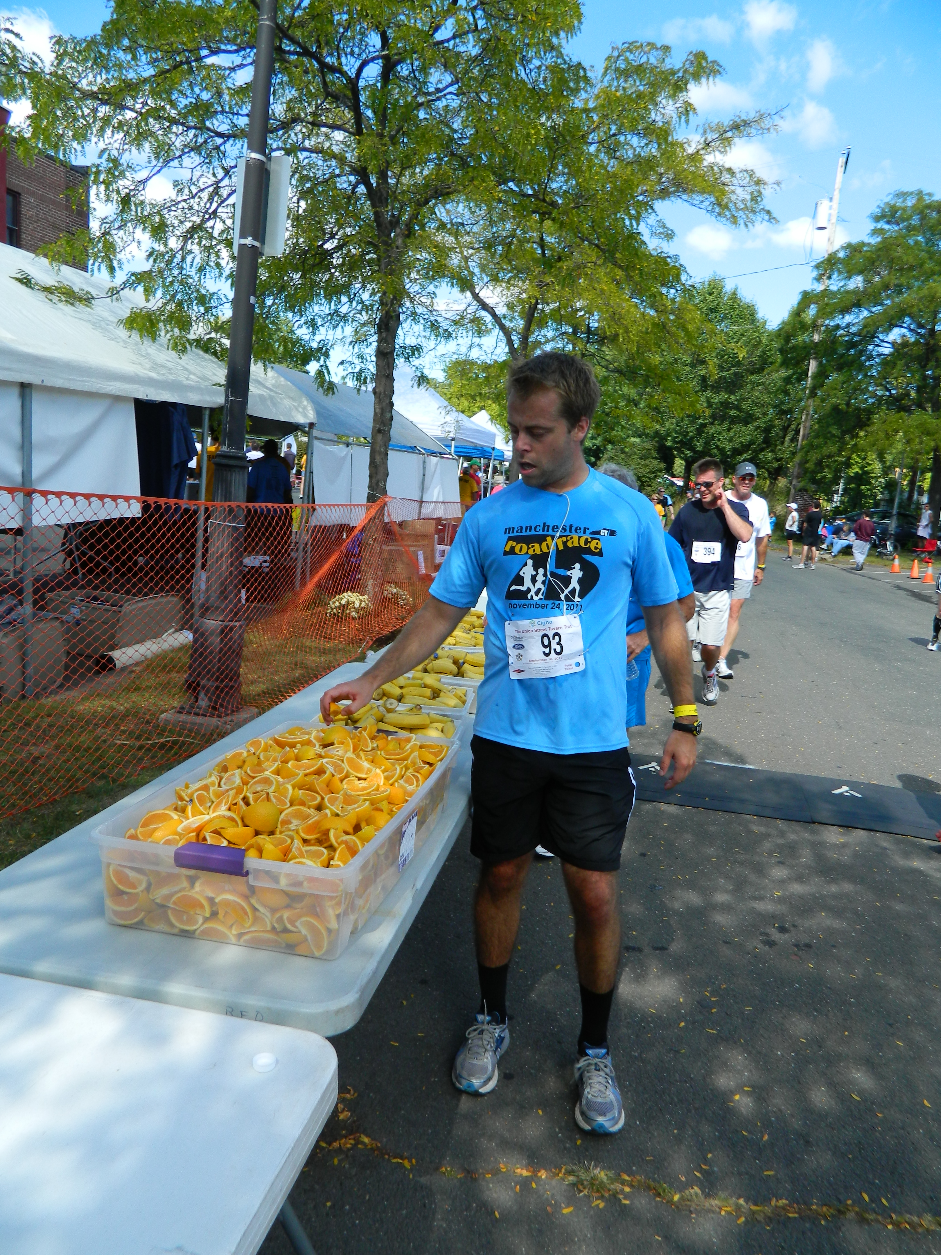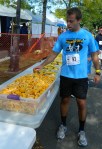 A first time participant, Brian Cocuzzo headed for the table filled with cut bananas and lemon slices available for runners at the end of the race.