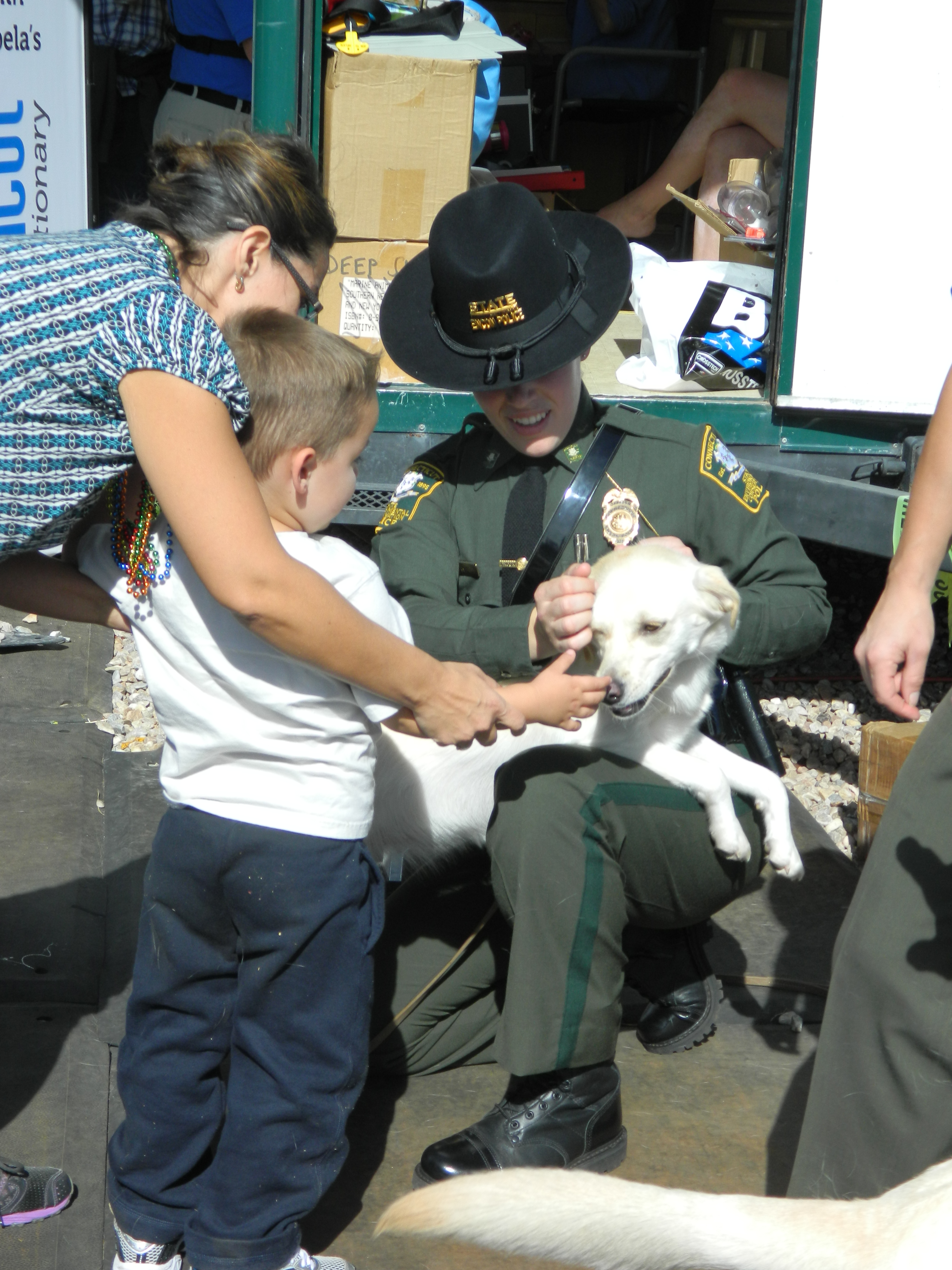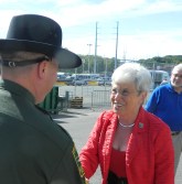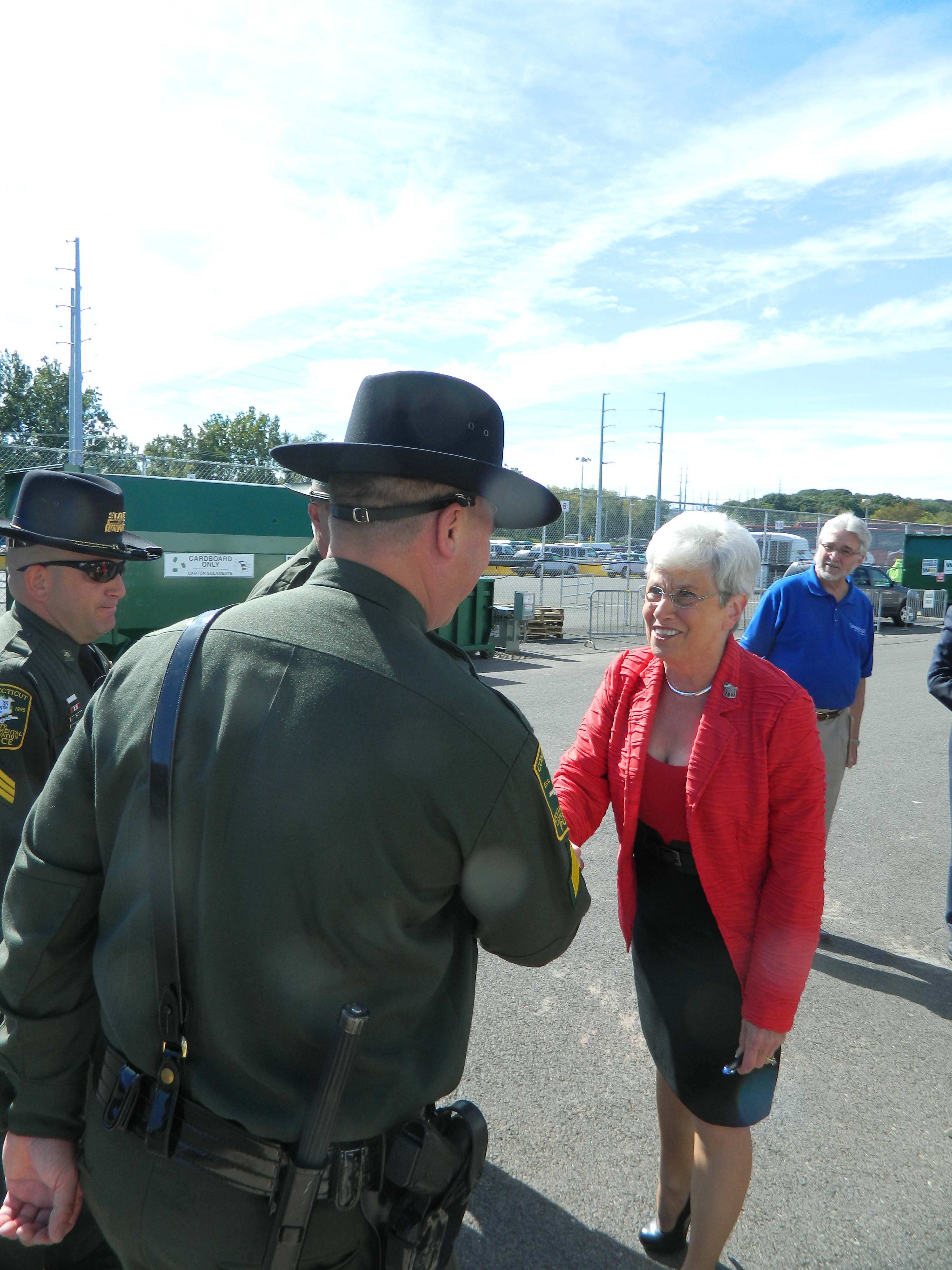 Lt. Gov Nancy Wyman greeted by Sgt. Jeff Samonajczyk of the Connecticut Environmental Conservation Police.