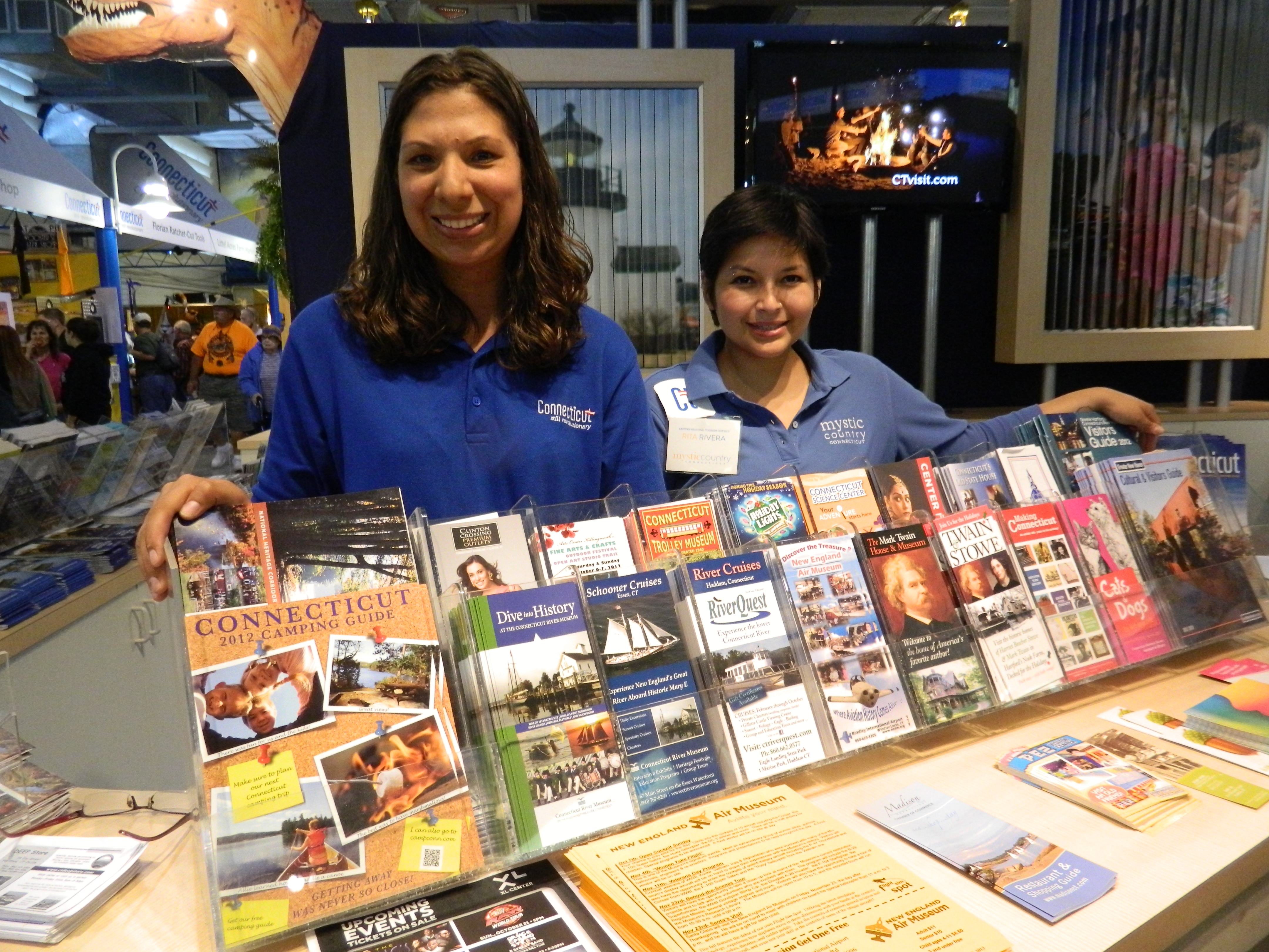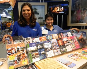 Jilline Gonzalez and Rita Rivera welcomed visitors to the tourism counter at the Connecticut building.
