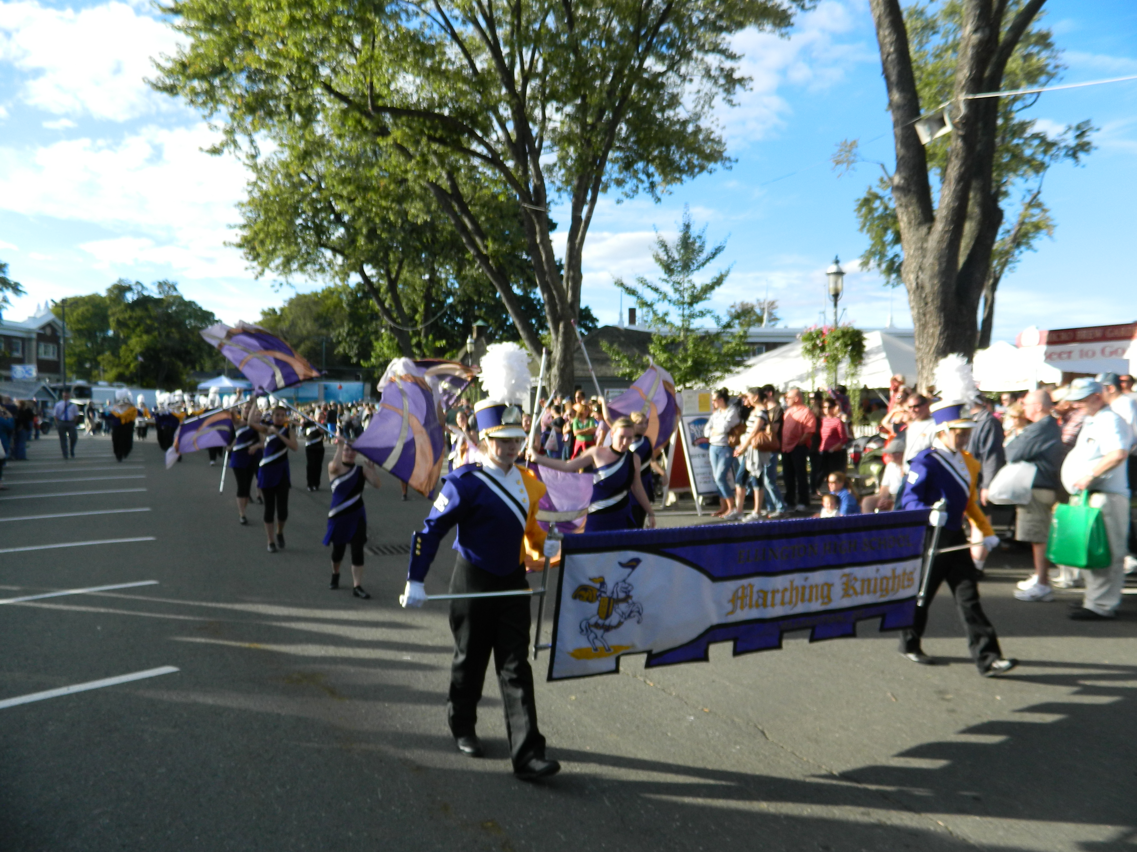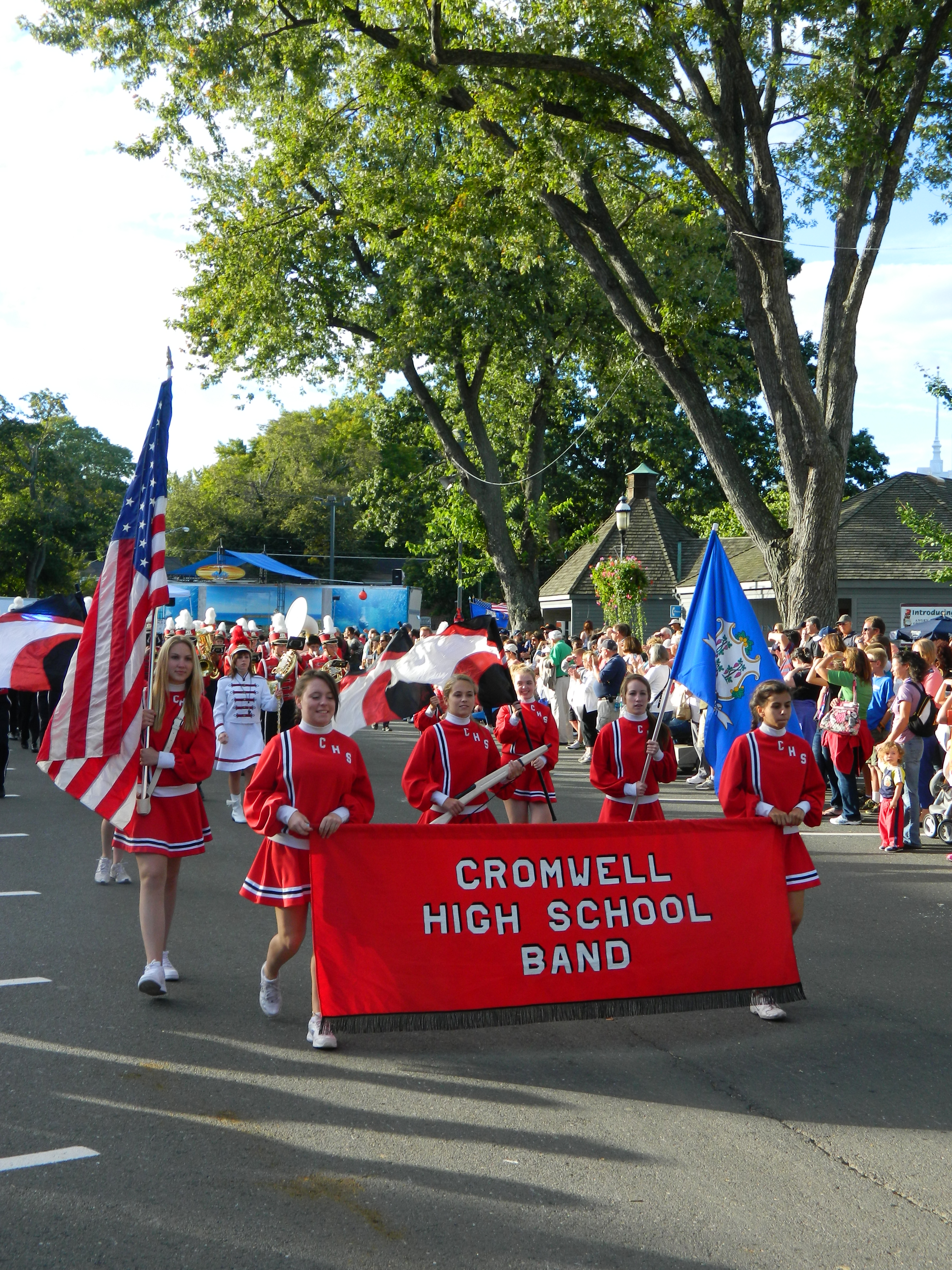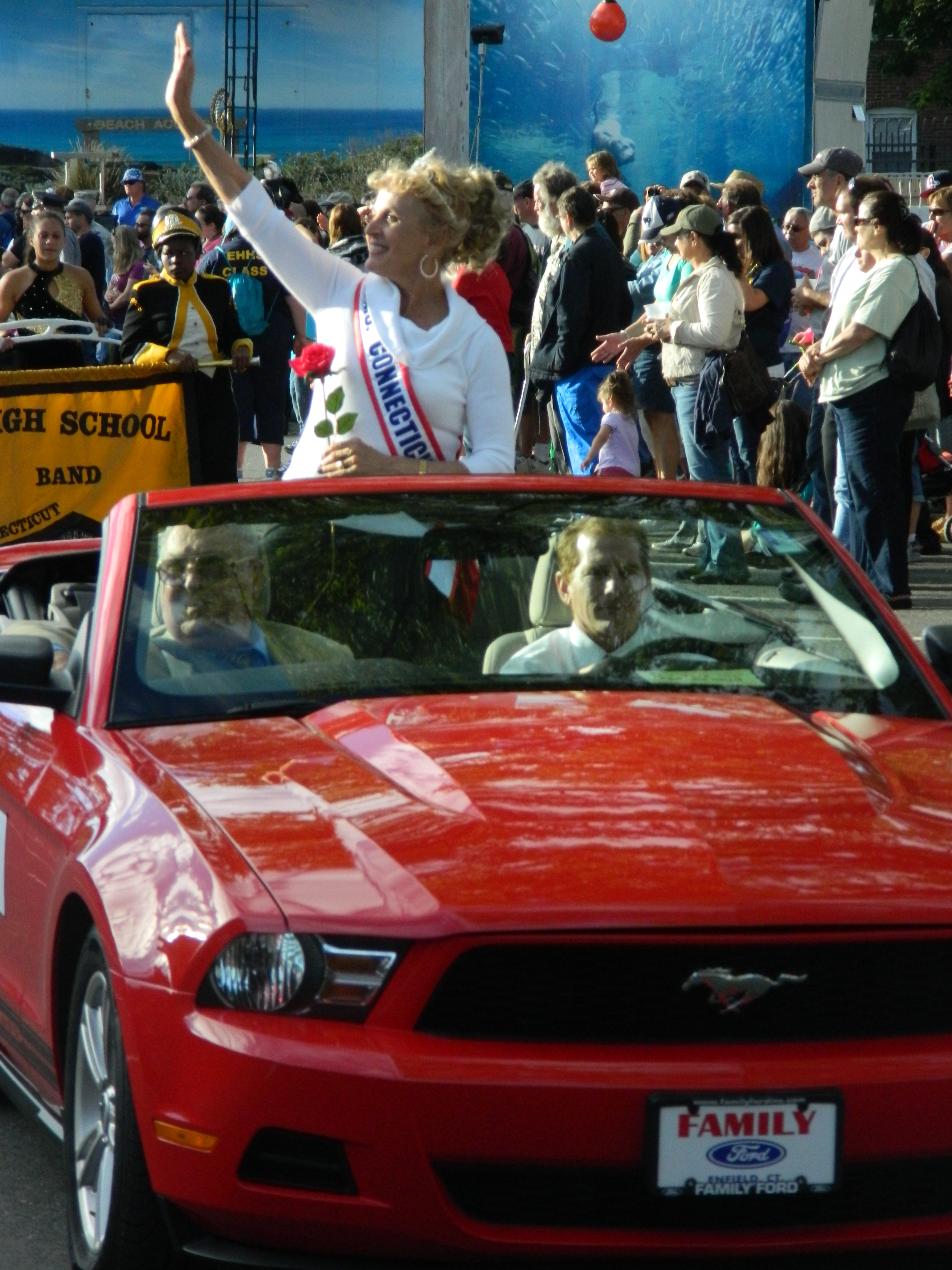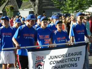 Led off by Wyman, also taking part were the Connecticut National Guard Color Guard, the 2012 Junior League Connecticut Champions, the Connecticut State Police, a CT National Guard monster truck, antique car club, South Windsor Kennel Club, Ms. Senior Connecticut , businesses such as Guida Dairy and Clydesdale horse-drawn wagons. High school marching bands turned out from across the state – Bethel High, Cromwell, East Hartford, East Haven, East Windsor, Ellington High, Hartford Magnet, Lewis S. Mills, Portland, Shelton and Somers along with the U.S Coast Guard Band. Judging from the smiles and applause from viewers, the parade did not disappoint.