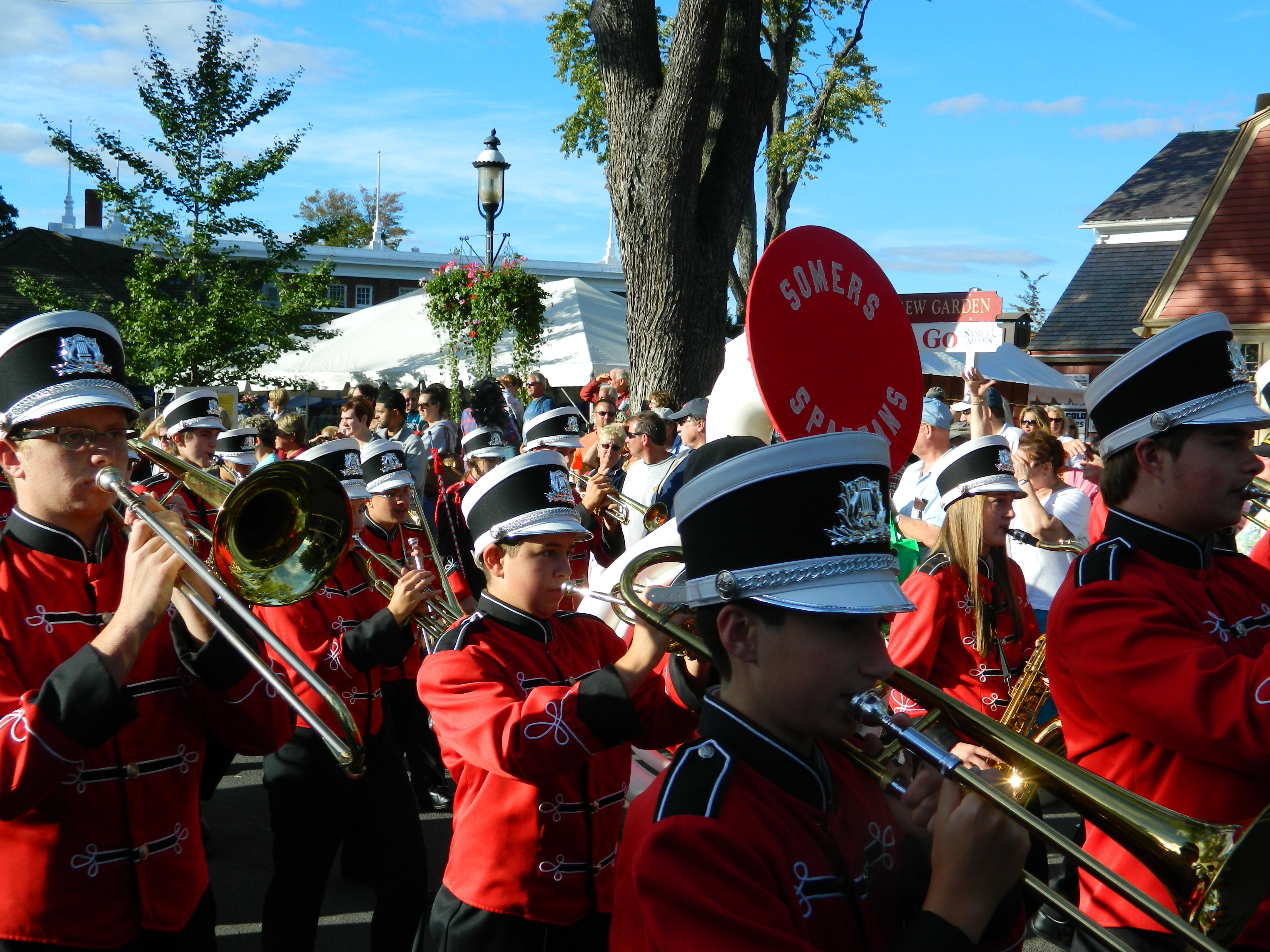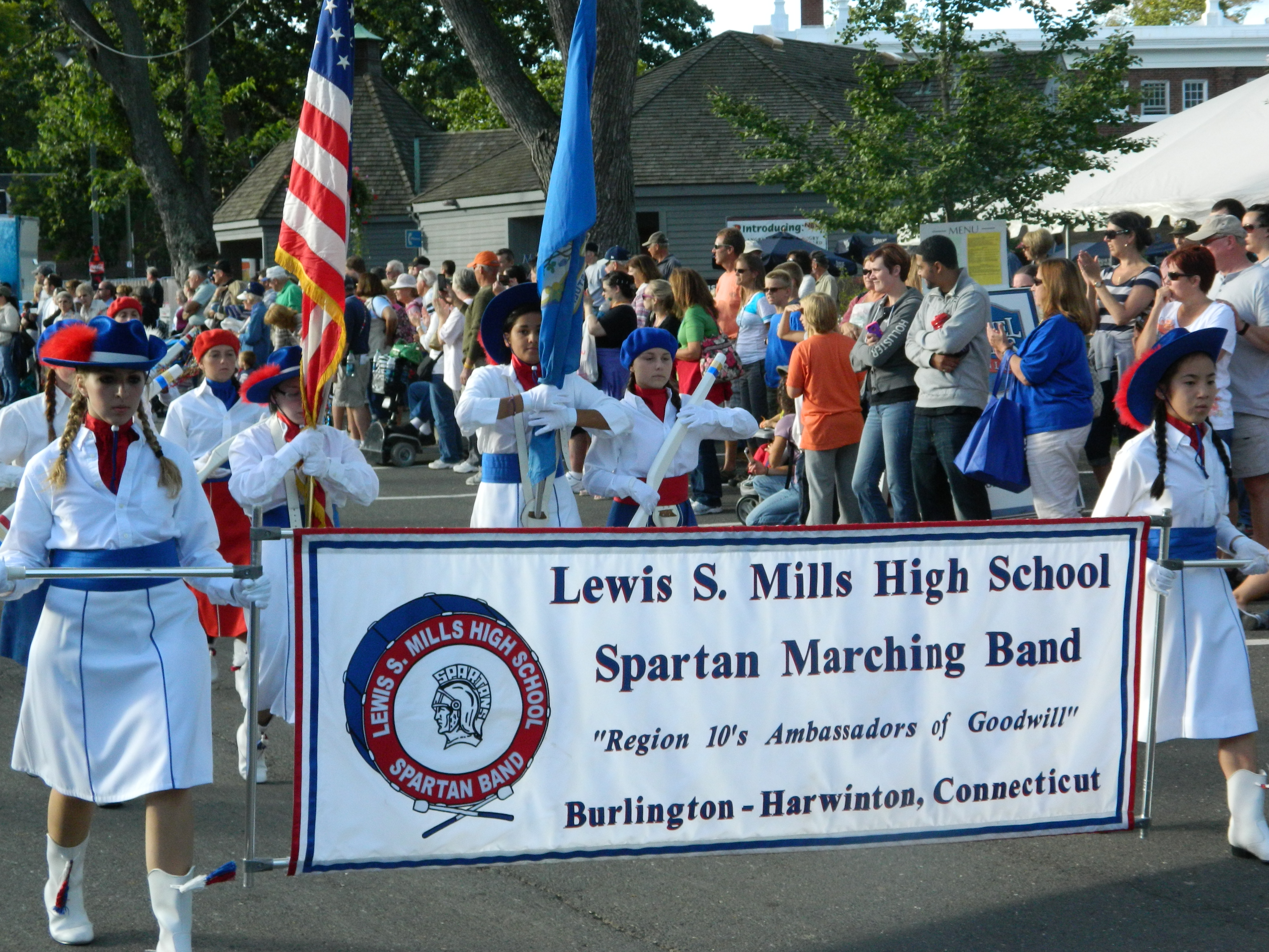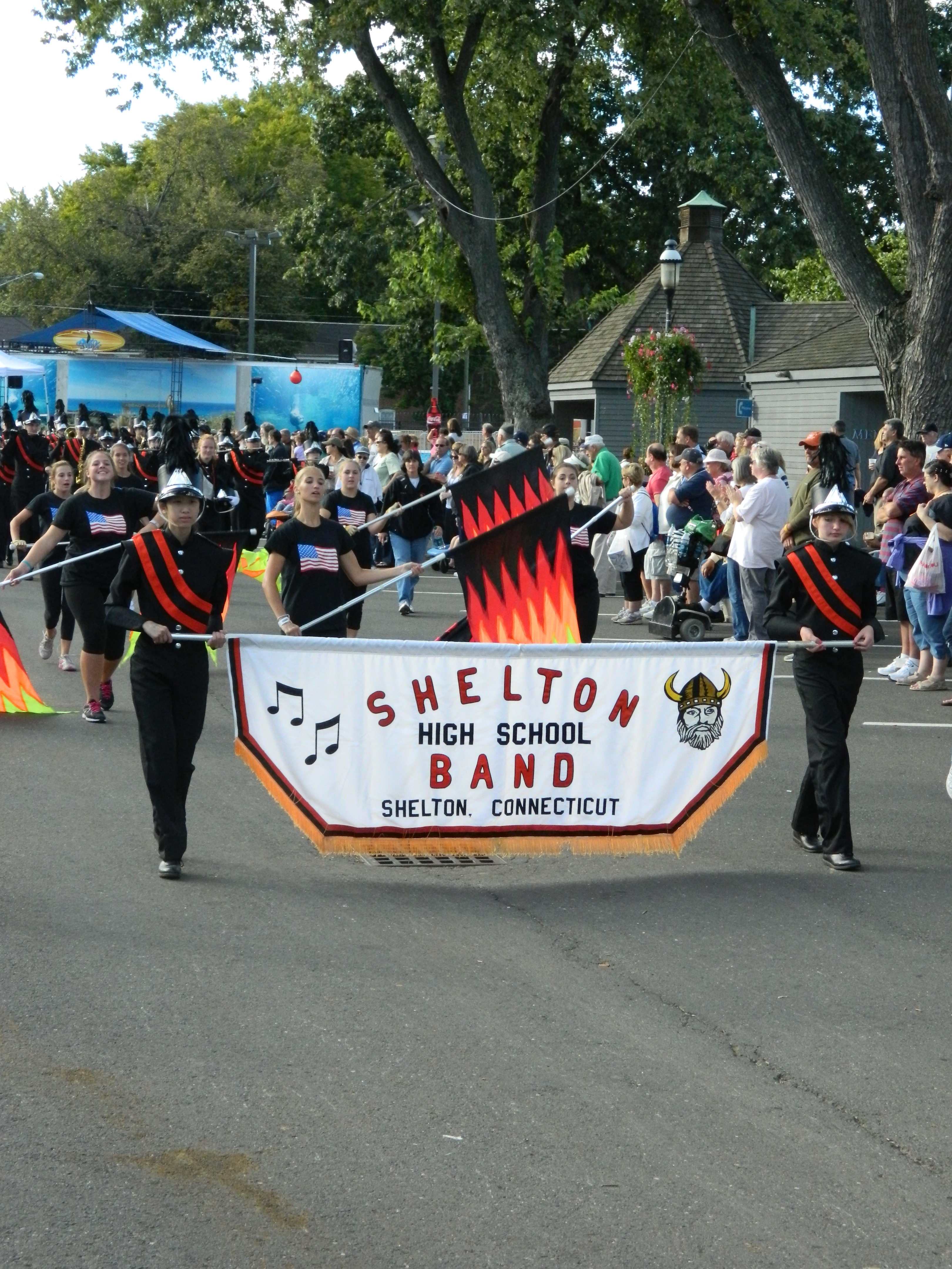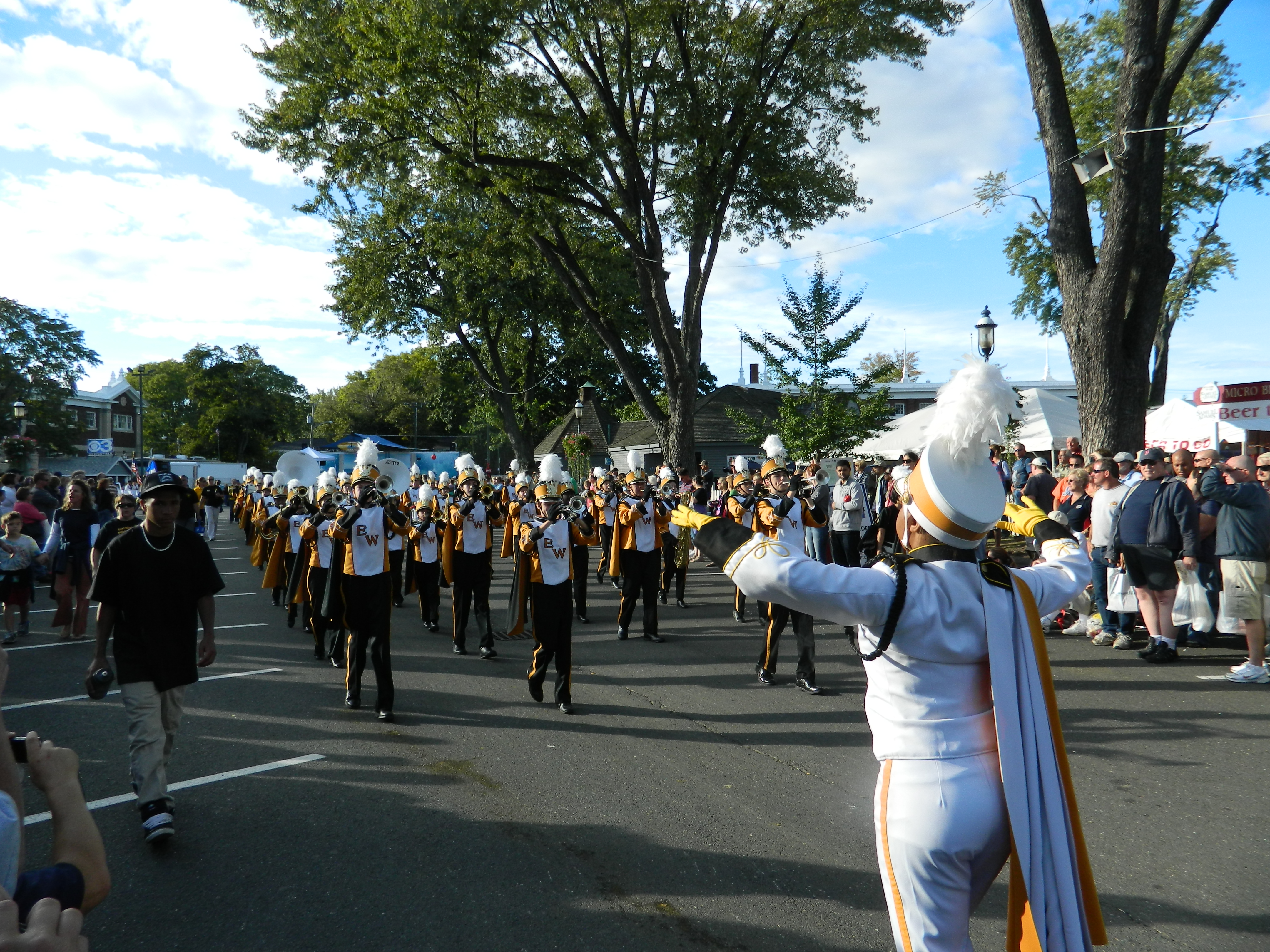 Led off by Wyman, also taking part were the Connecticut National Guard Color Guard, the 2012 Junior League Connecticut Champions, the Connecticut State Police, a CT National Guard monster truck, antique car club, South Windsor Kennel Club, Ms. Senior Connecticut , businesses such as Guida Dairy and Clydesdale horse-drawn wagons. High school marching bands turned out from across the state – Bethel High, Cromwell, East Hartford, East Haven, East Windsor, Ellington High, Hartford Magnet, Lewis S. Mills, Portland, Shelton and Somers along with the U.S Coast Guard Band. Judging from the smiles and applause from viewers, the parade did not disappoint.