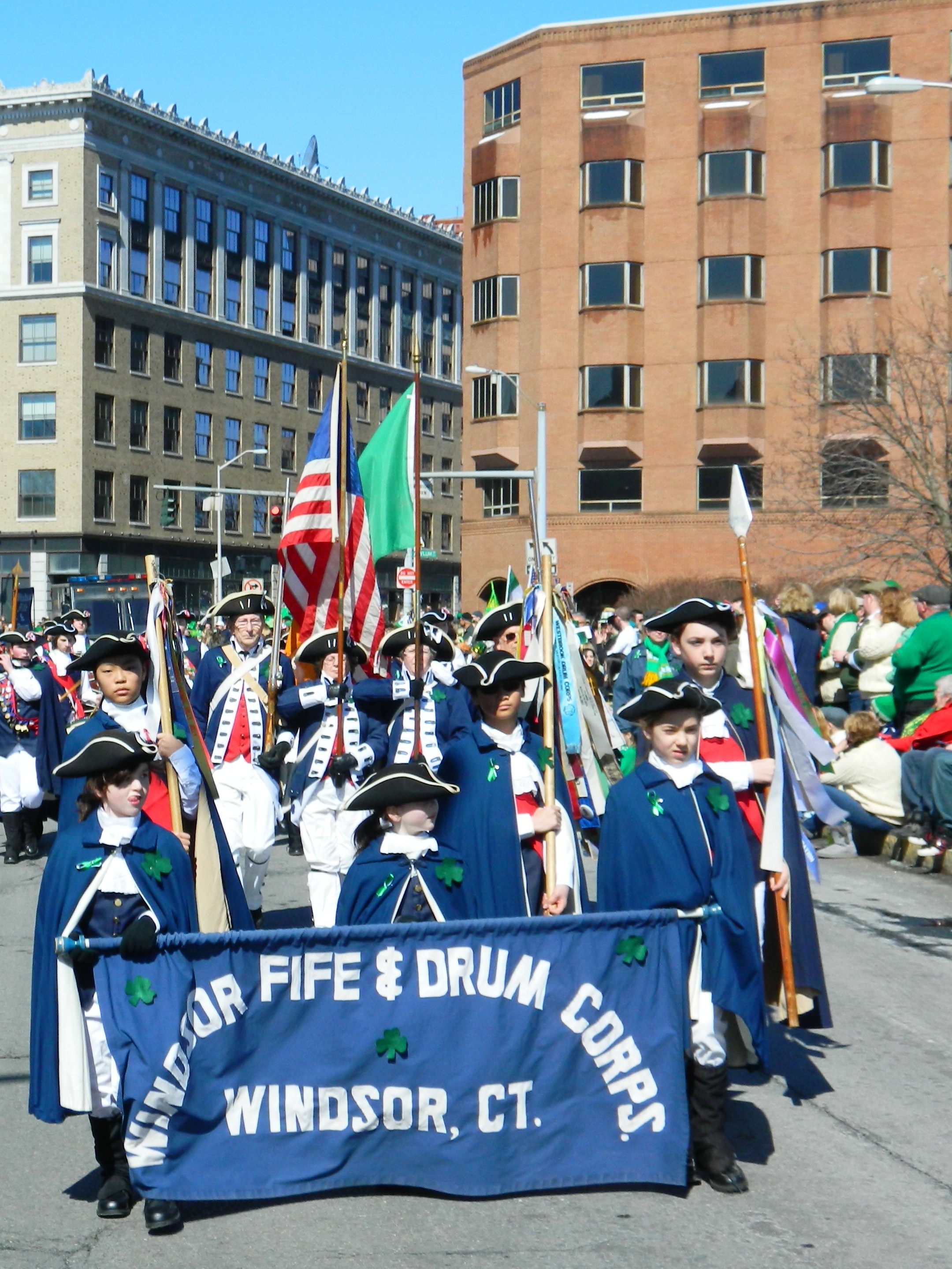 Towns from Greater Hartford and beyond were represented by marching bands, Boy Scouts, Irish step dancers, fife & drum corps, bagpipers, labor union floats, firefighters and police. And, the governor’s foot and horse guards participated. The approximate three hour parade kicked off near the capitol building making its way through downtown Hartford and ended in front of the Soldiers & Sailors Memorial Arch.