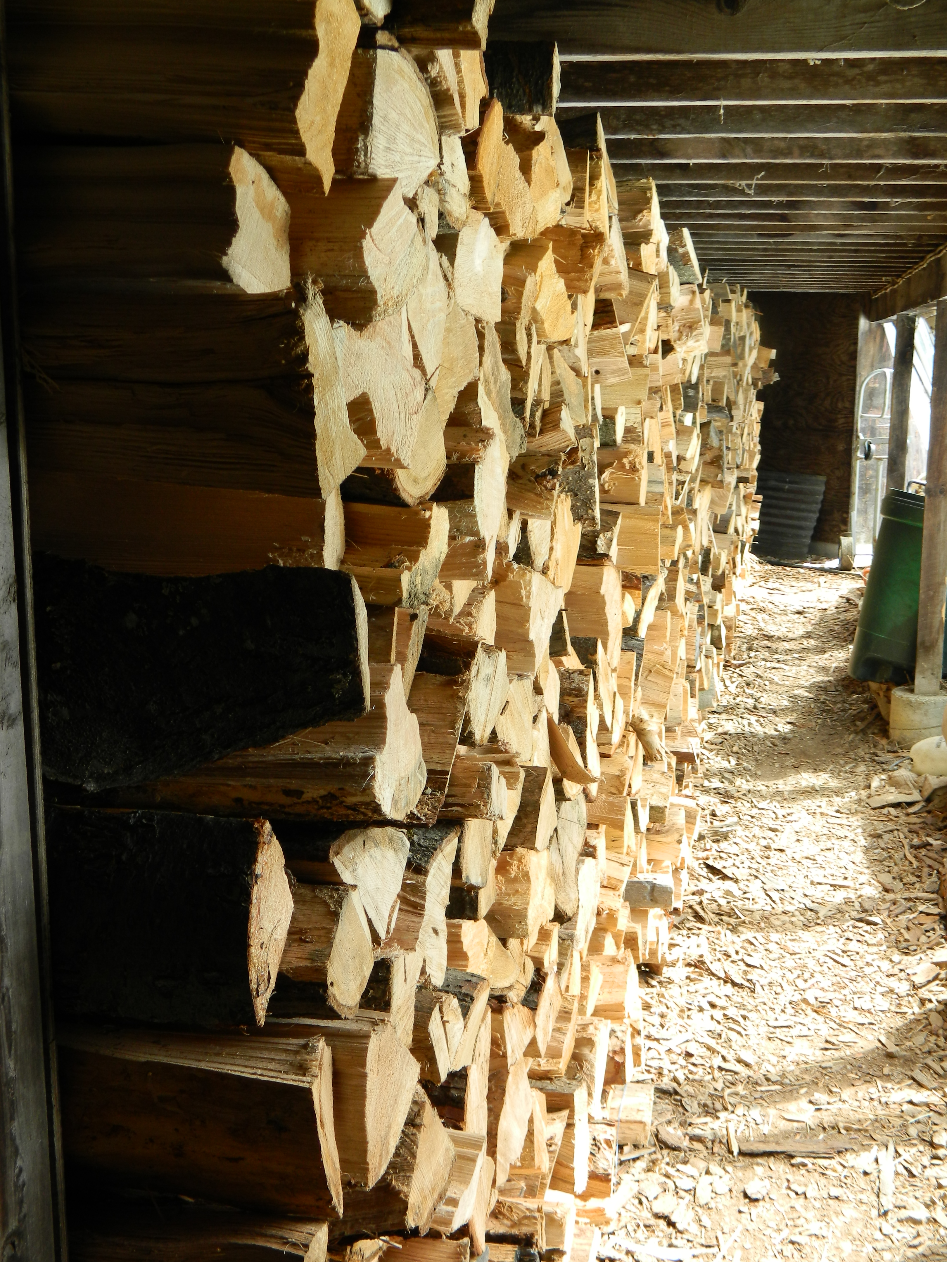 Keeping the old beams in place, Dan converted the existing barn into the sugarhouse. Two years ago, he invested in a 5 foot by 14 foot evaporator that is located downstairs. He then modified the design of the evaporator, adding thicker insulation for the burner to maximize fuel efficiency by minimizing the amount of wood needed for the boiling off process. Generally, he burns some 25 cords of wood each season.