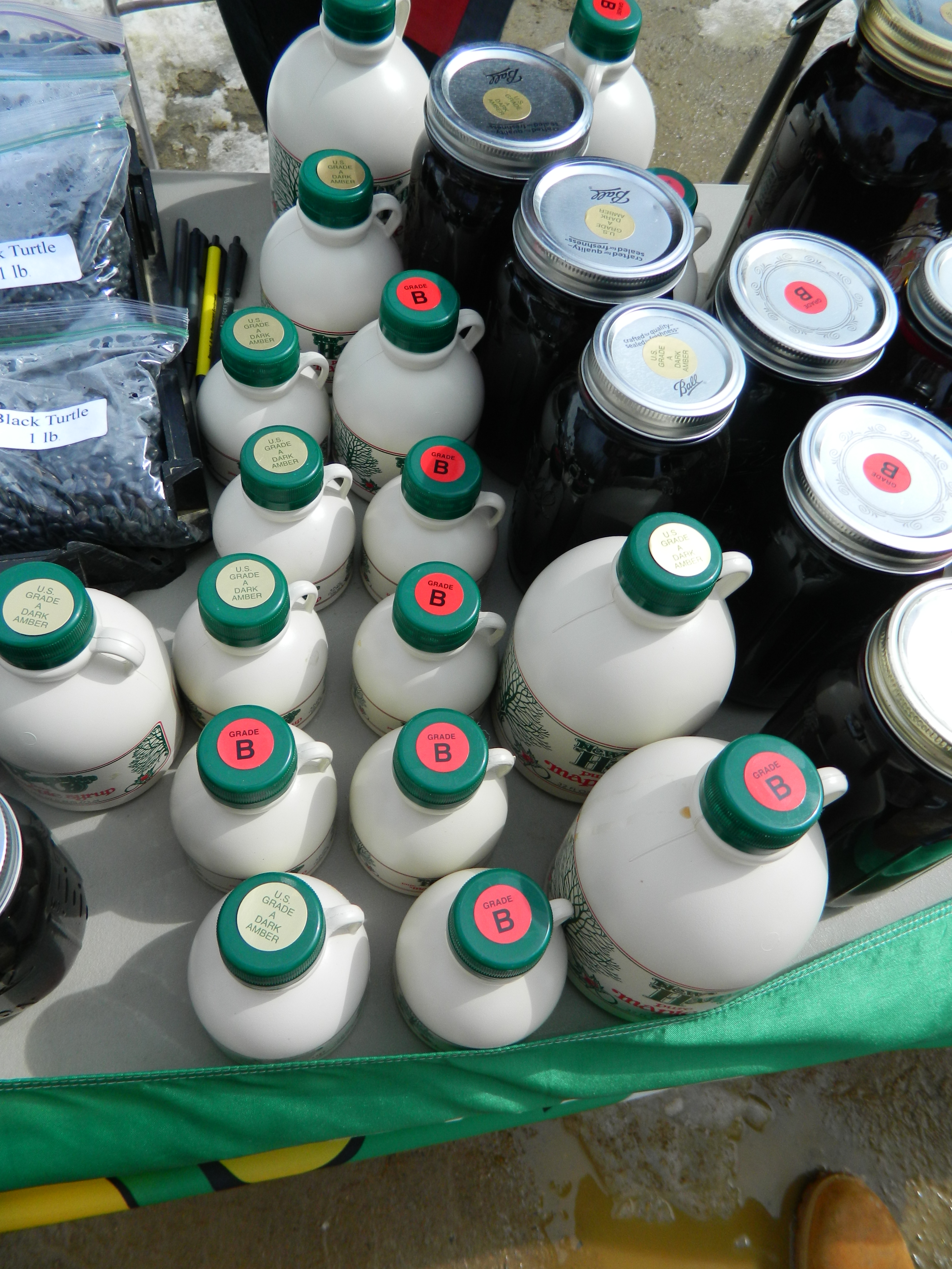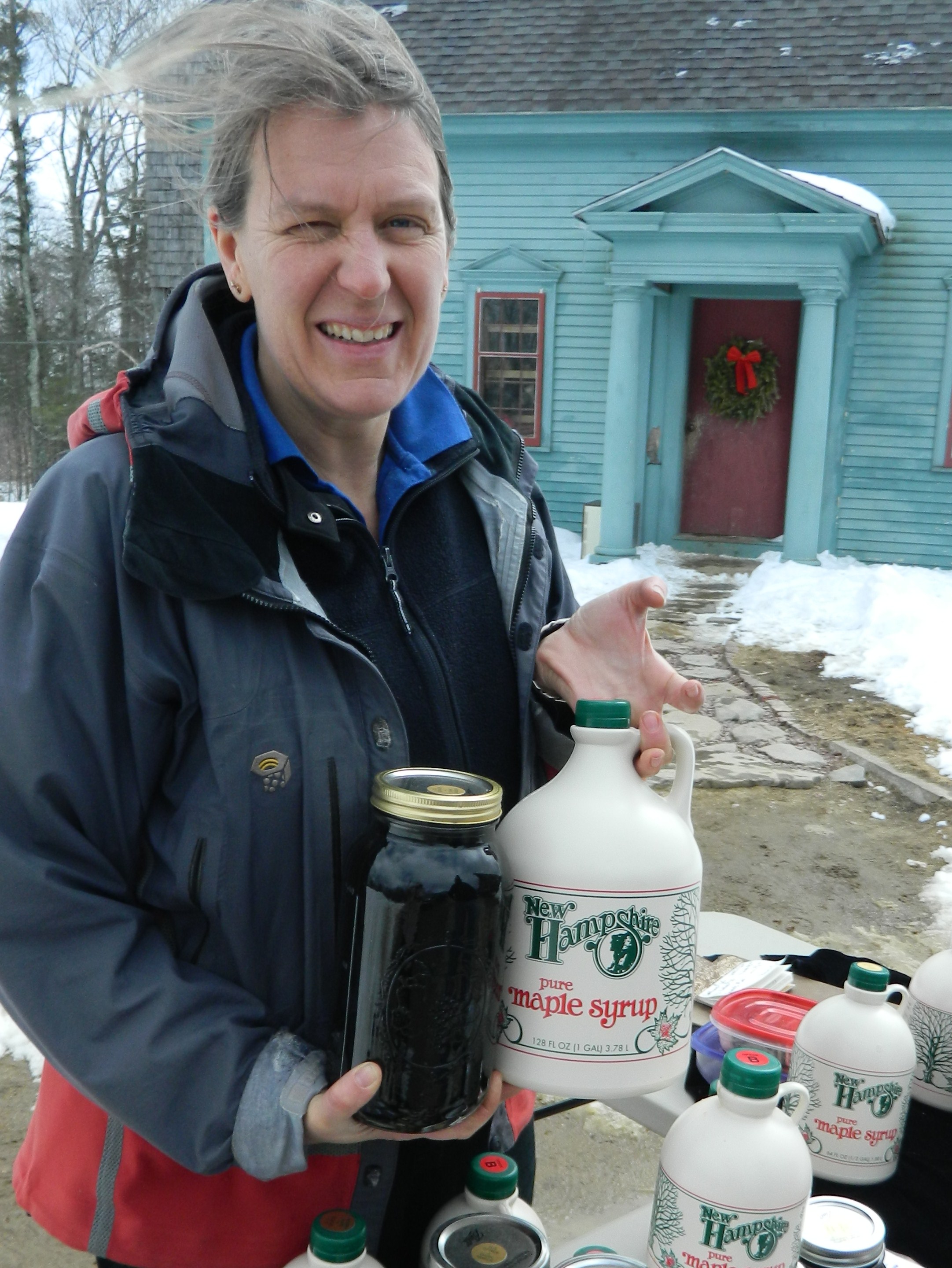 Because the Comtes were busy with maple weekend, Susan’s sister Mary pitched in on Saturday, manning their table at a winter farmer’s market in Tilton, N.H.