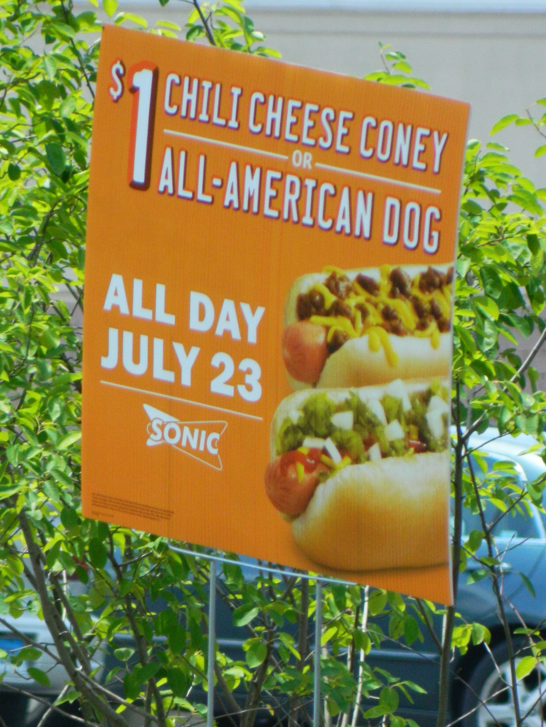 Nonetheless, it is a piece of America’s cultural tapestry. Tomorrow, Sonic will participate offering for $1 the Chili Cheese Coney or the All-American Dog.