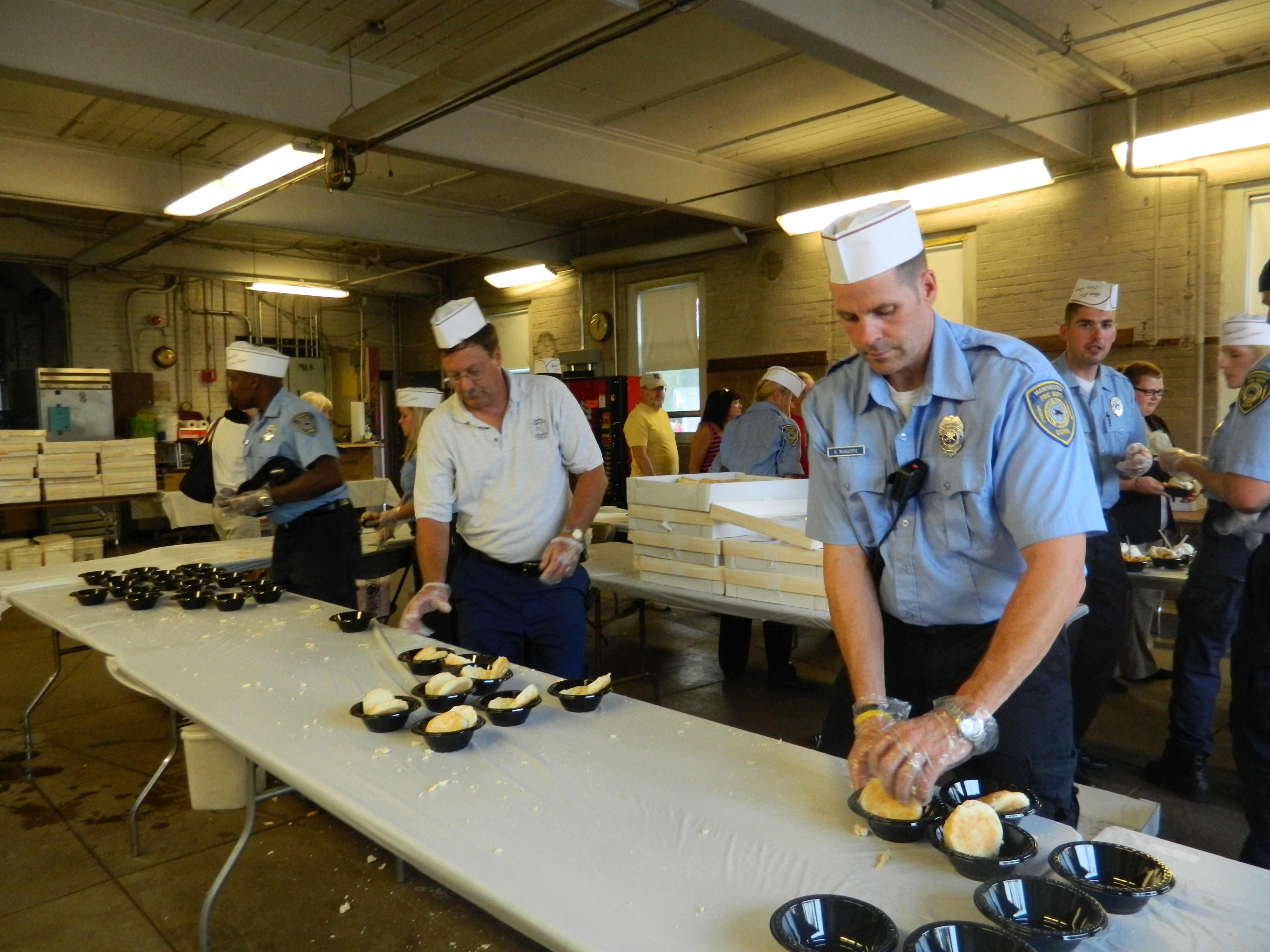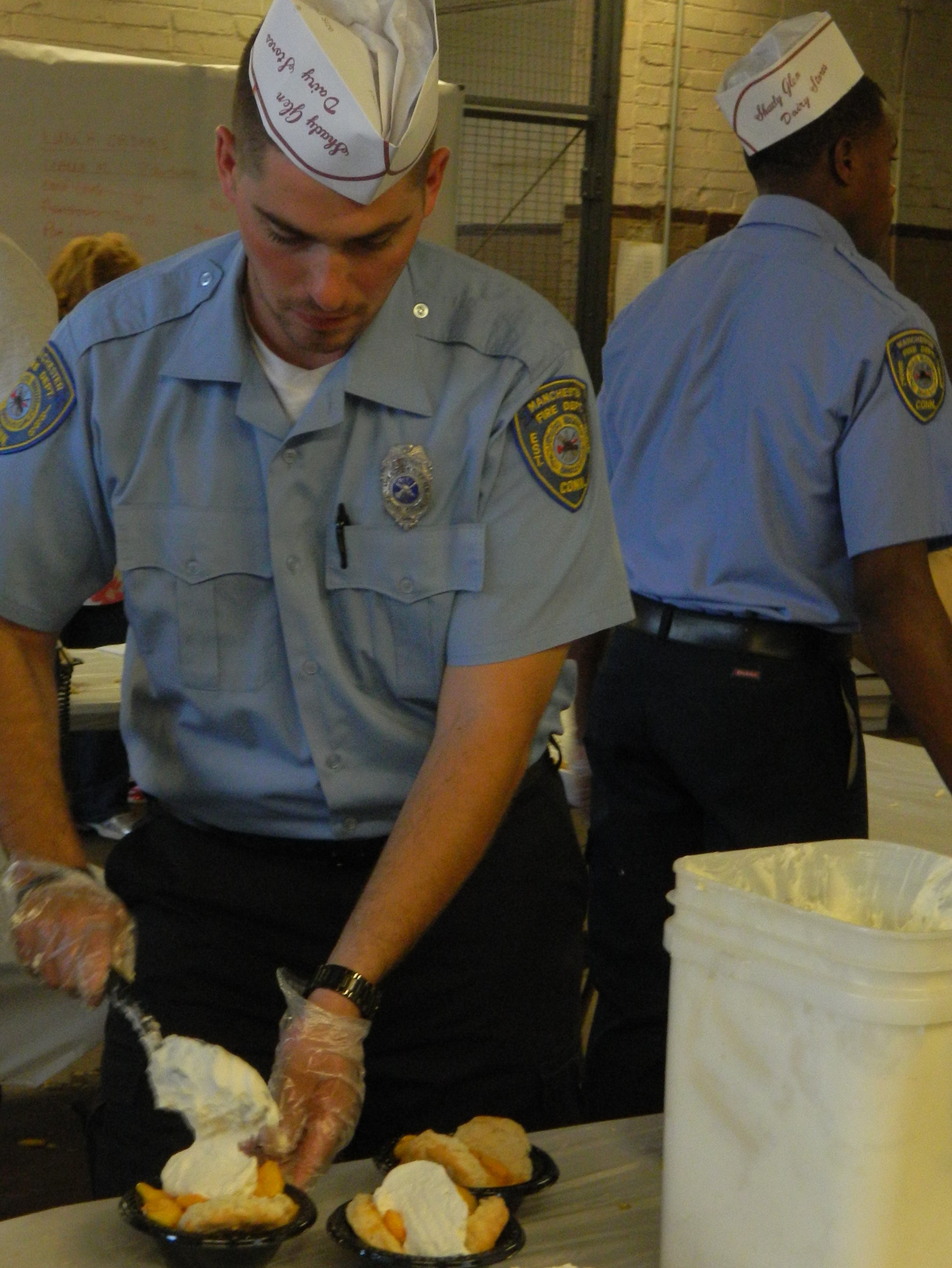 What hasn’t changed is the menu. Each year the fire district puts a call out to the community for volunteers to help cut the fresh peaches that top bowls of buttermilk biscuits lathered with whipped cream – by the firefighters themselves. This is the district’s biggest annual fundraiser.