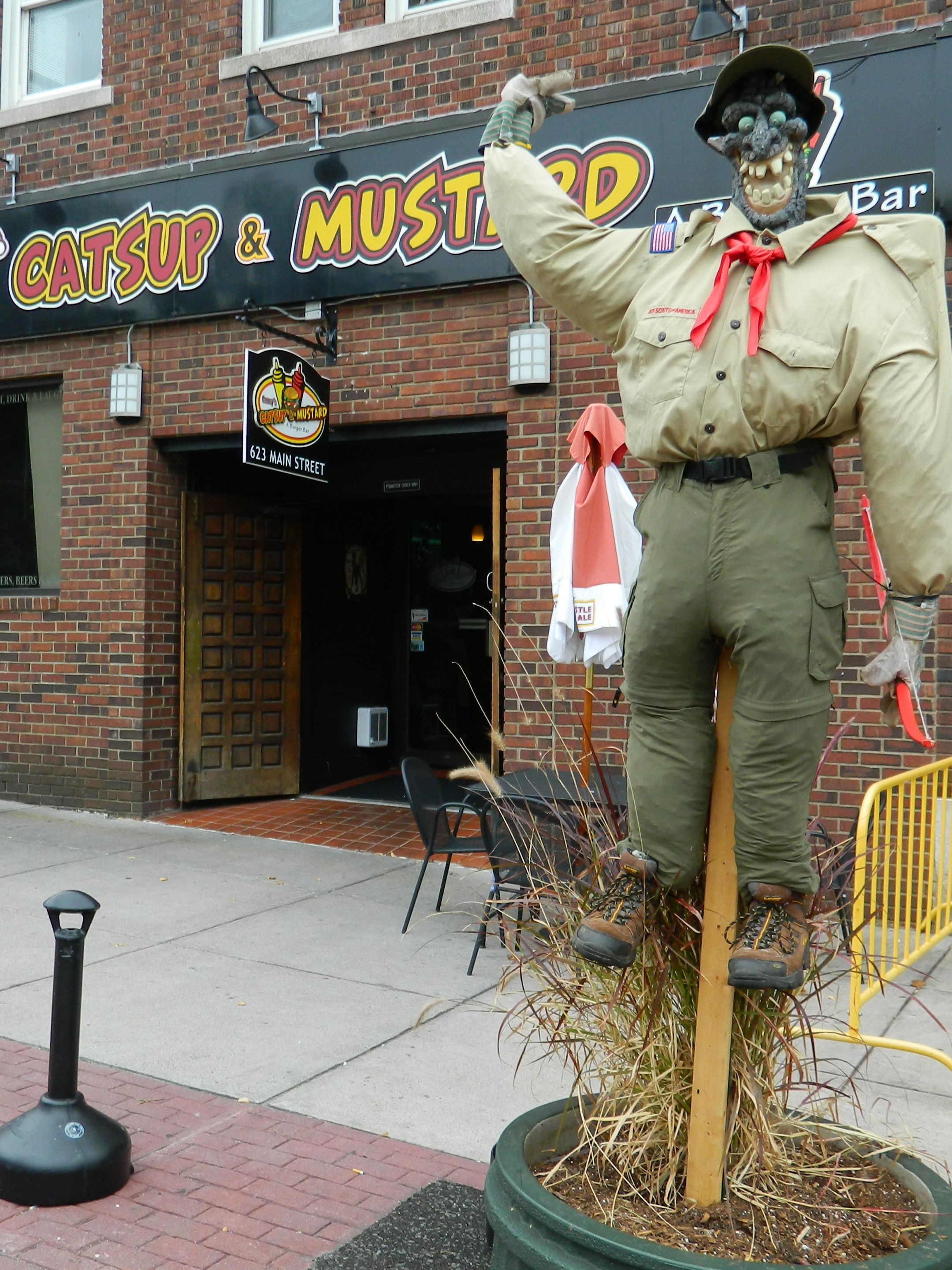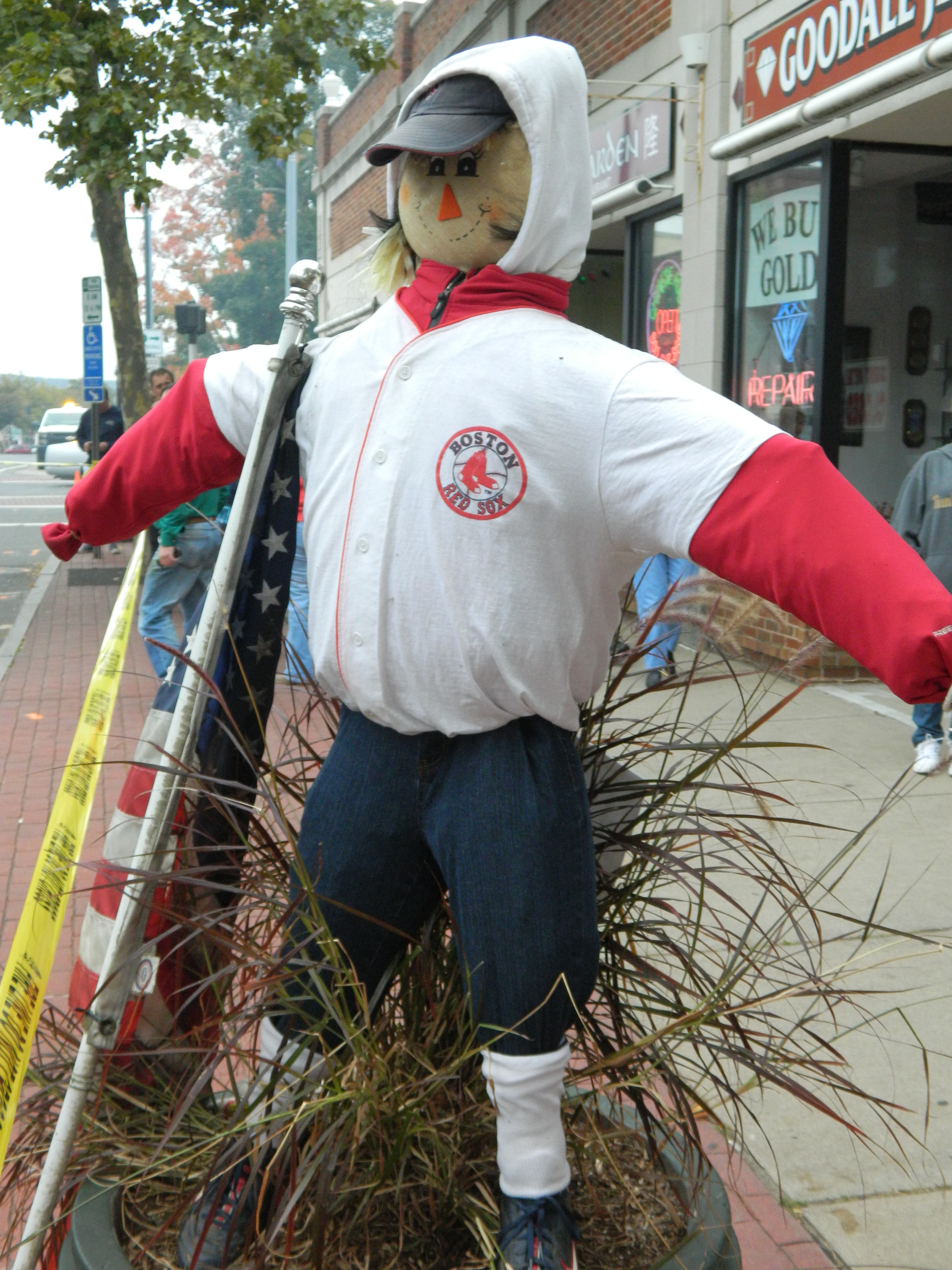From the local produce farmer scarecrows that greet visitors at the northern gateway to the the pirate ship scarecrows collaboration by students at Bennet Academy at the southern end of the street, the festival makes for a fun stroll. As one might expect, a book wizard scarecrow graces the entrance to Mary Cheney Library. Nearby is a ballerina dressed in pink. And, not only did the Red Sox stage a come from behind victory for the ages this past Sunday night but a Red Sox scarecrow still stands across the street from where an October 12 fire destroyed two businesses.