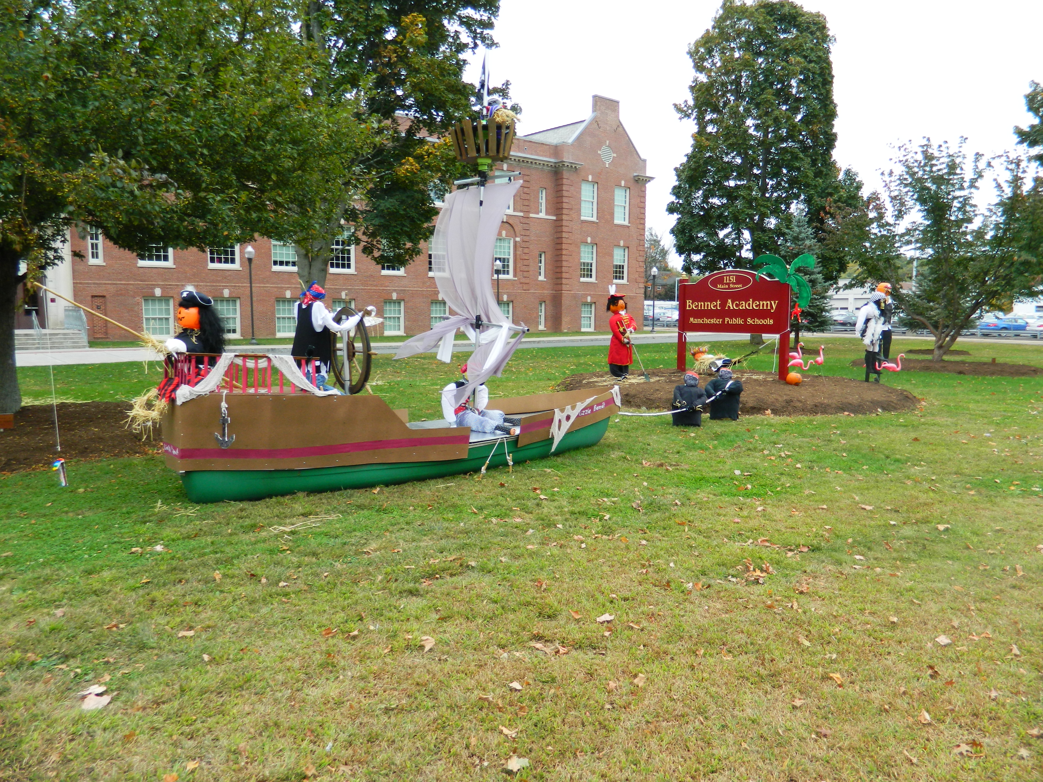 According to a member of the Bennet Academy security detail, the pirate ship has been a schoolwide effort with seven scarecrows so far and a cannon yet to come. A whale that was part of the exhibit apparently “swam away” on Saturday night but the hope is that it will quietly return.