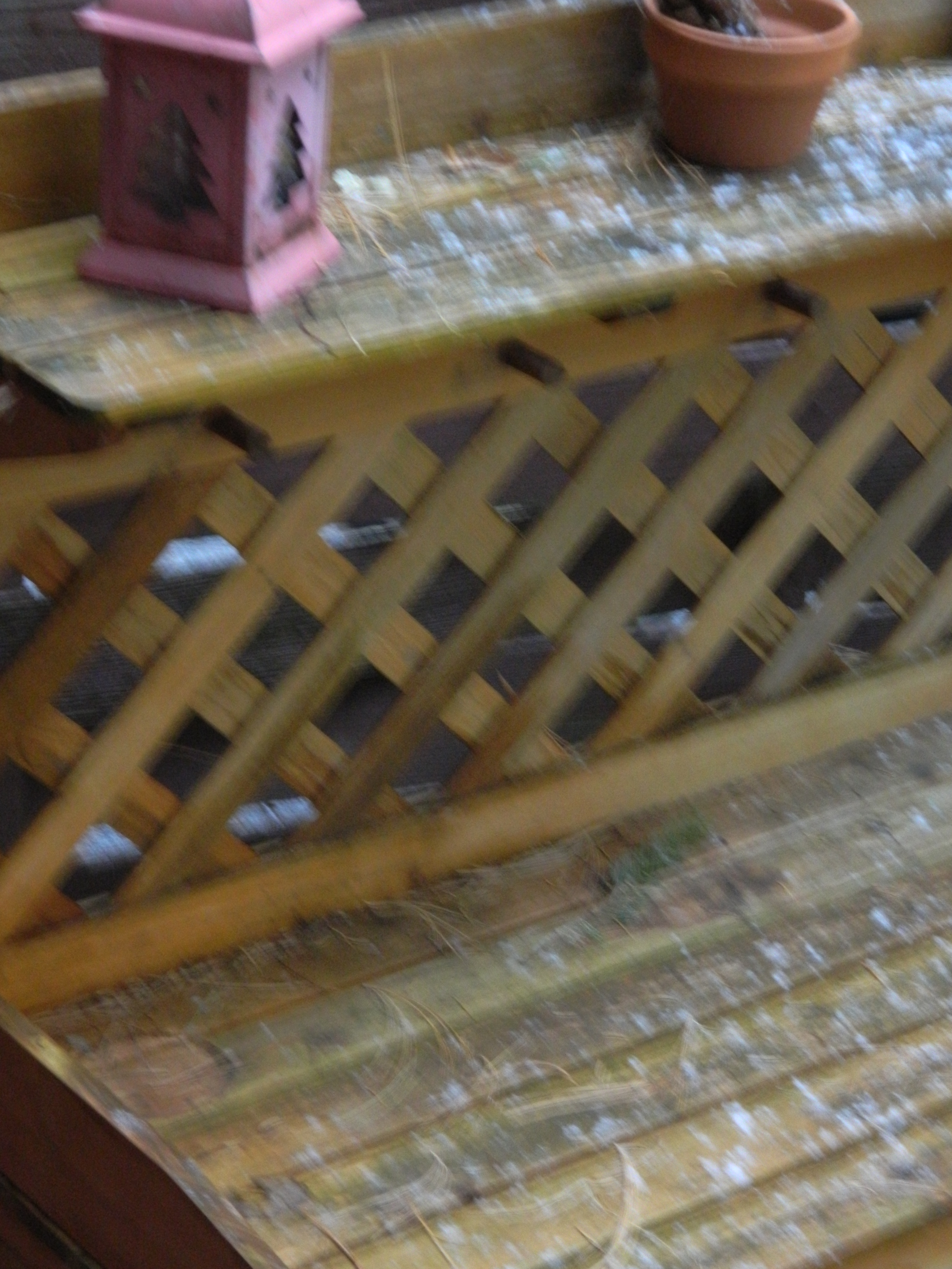 When the arrival of winter is just around the corner here in New England, those words usually indicate that magical seasonal event – the first snowfall. Though it is not sticking much, the first snowfall near my home came this morning and for a while it was visible on my potter’s bench and the picnic table.