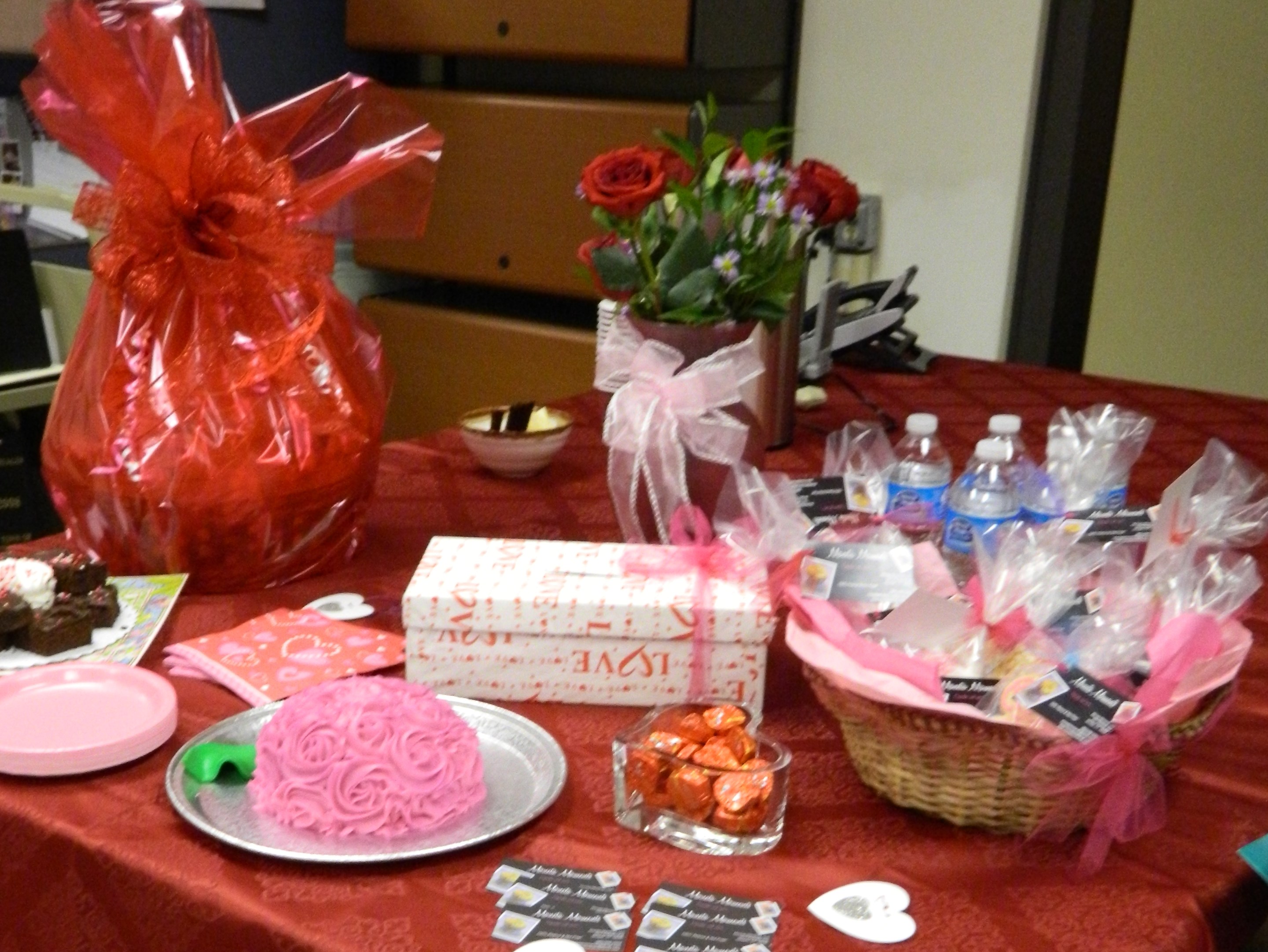 Couples also became eligible for a raffle that featured a large gift basket of items donated by local merchants. Adding ambiance to the surroundings was a table filled with a vase of red roses, Valentine’s Day sweets and a beautiful pink rose blossom cake made by Moneta Moments, LLC, 1077 Palisado Avenue, the “100 % peanut and nut free” shop creates -“cupcakes & more” (www.monetamoments.com).
