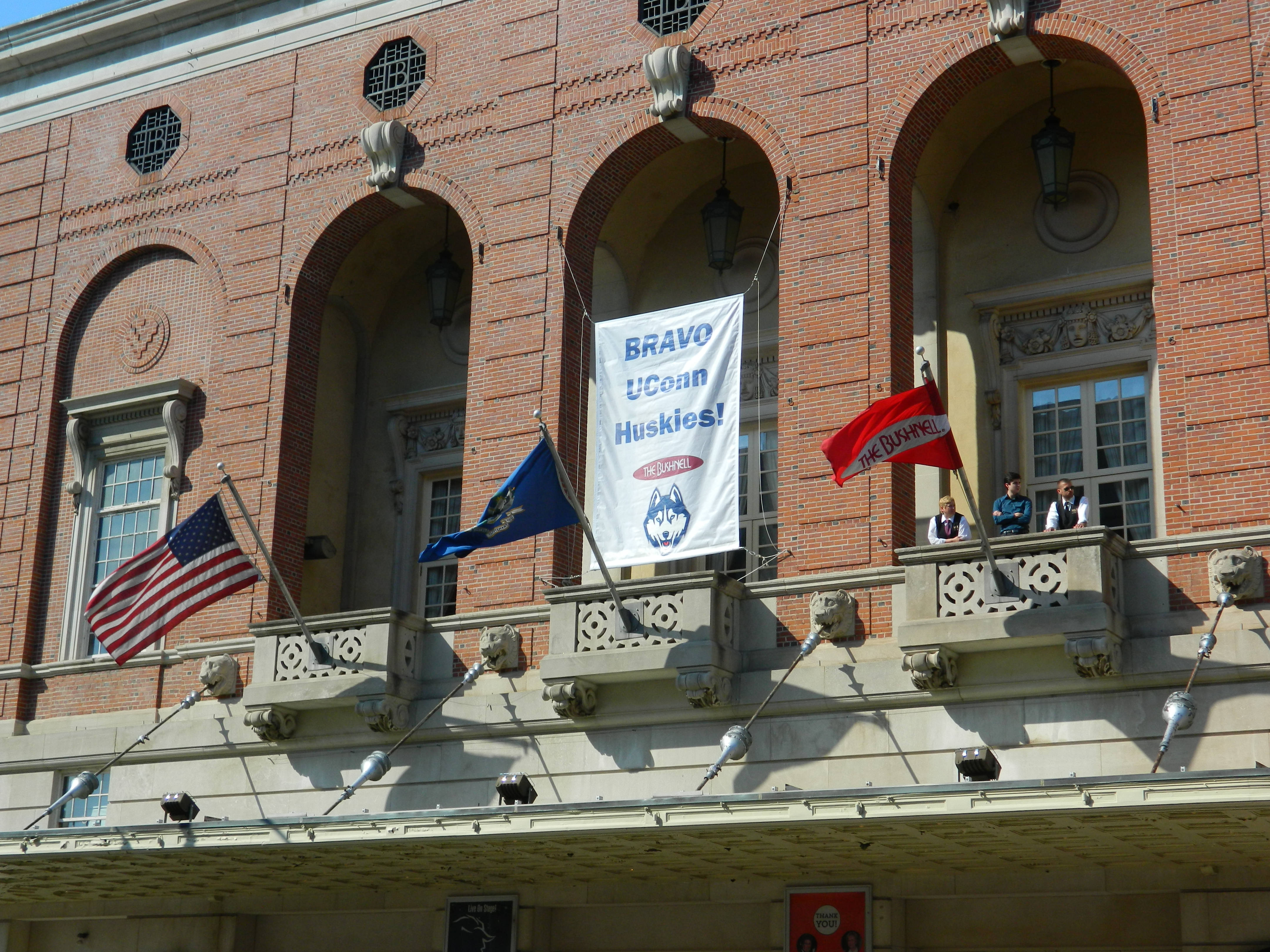 Congratulatory signs could be seen throughout the city but none said it better than one in front of the Bushnell Theater, it read – “BRAVO UConn Huskies!”