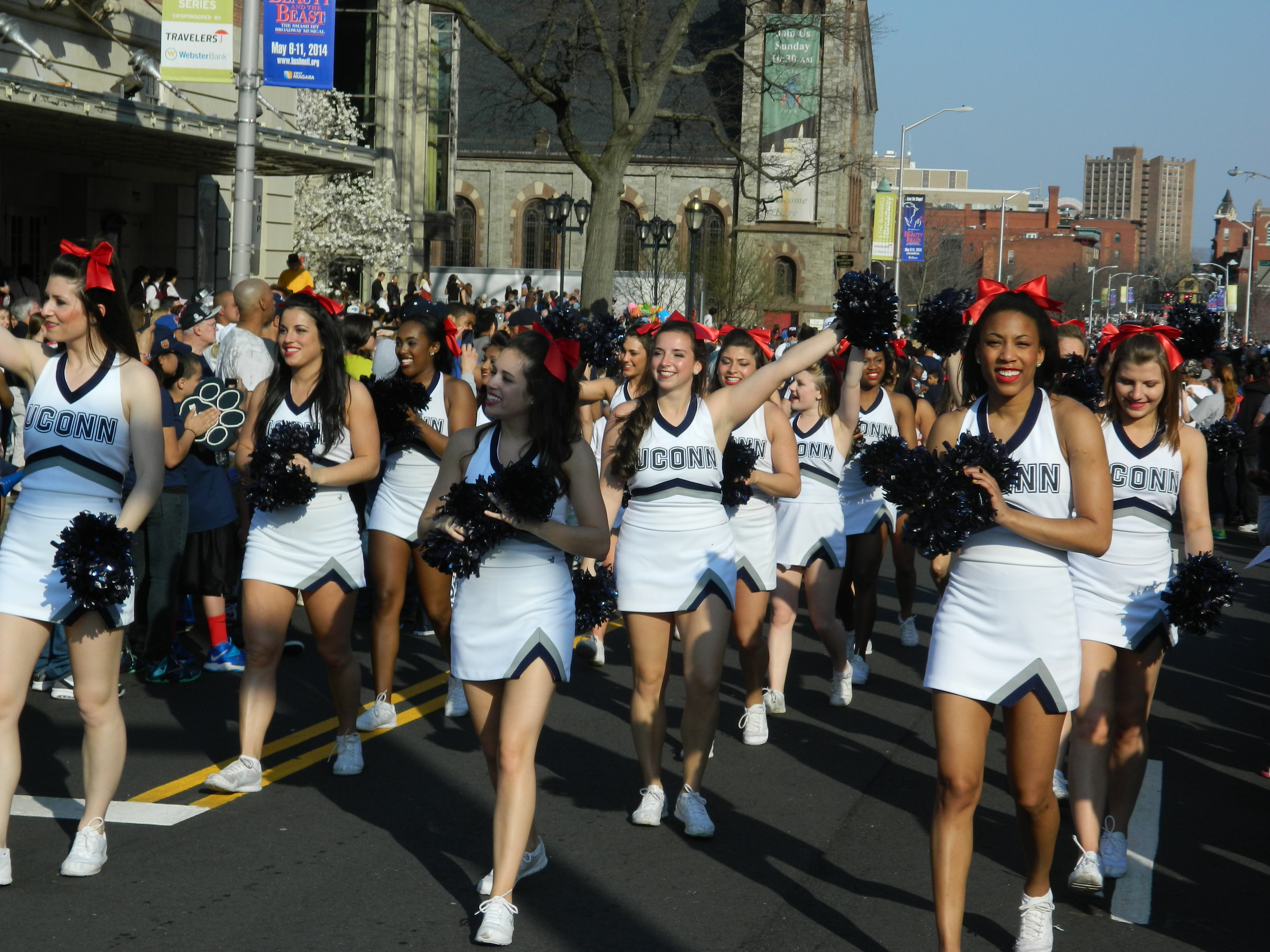 Taking part were a number of area high school marching bands, multiple fife & drum corps, former UConn basketball stars, “voices” of the Huskies – broadcasters Joe D’Ambrosio and Wayne Norman, and state dignitaries – including Gov. Dannel Malloy who rode atop a convertible with UConn President Susan Herbst.