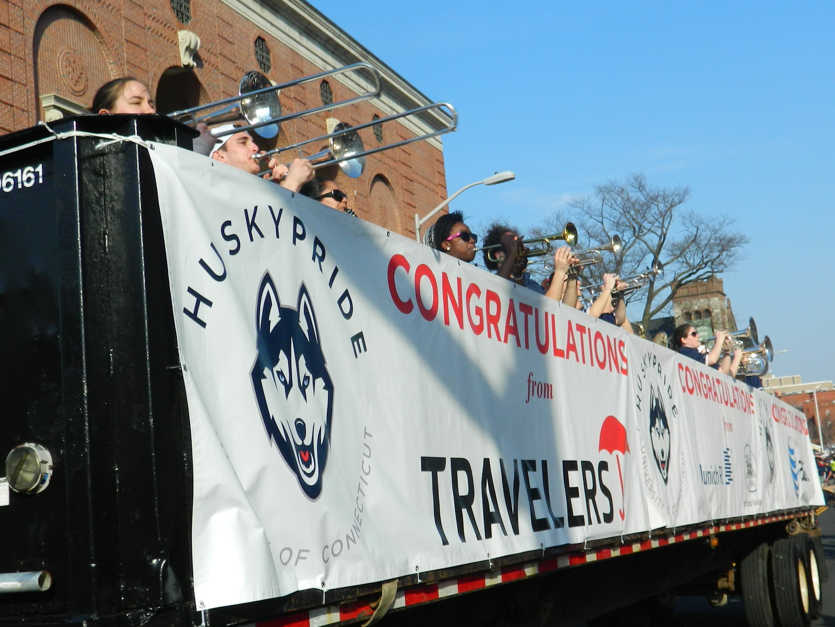 The Hartford Business Improvement District reportedly raised $90,000 to put on the parade. Anticipating the popularity of UConn souvenirs, it was also reported that some 100 vendors got licenses then staked their spots out hours early.