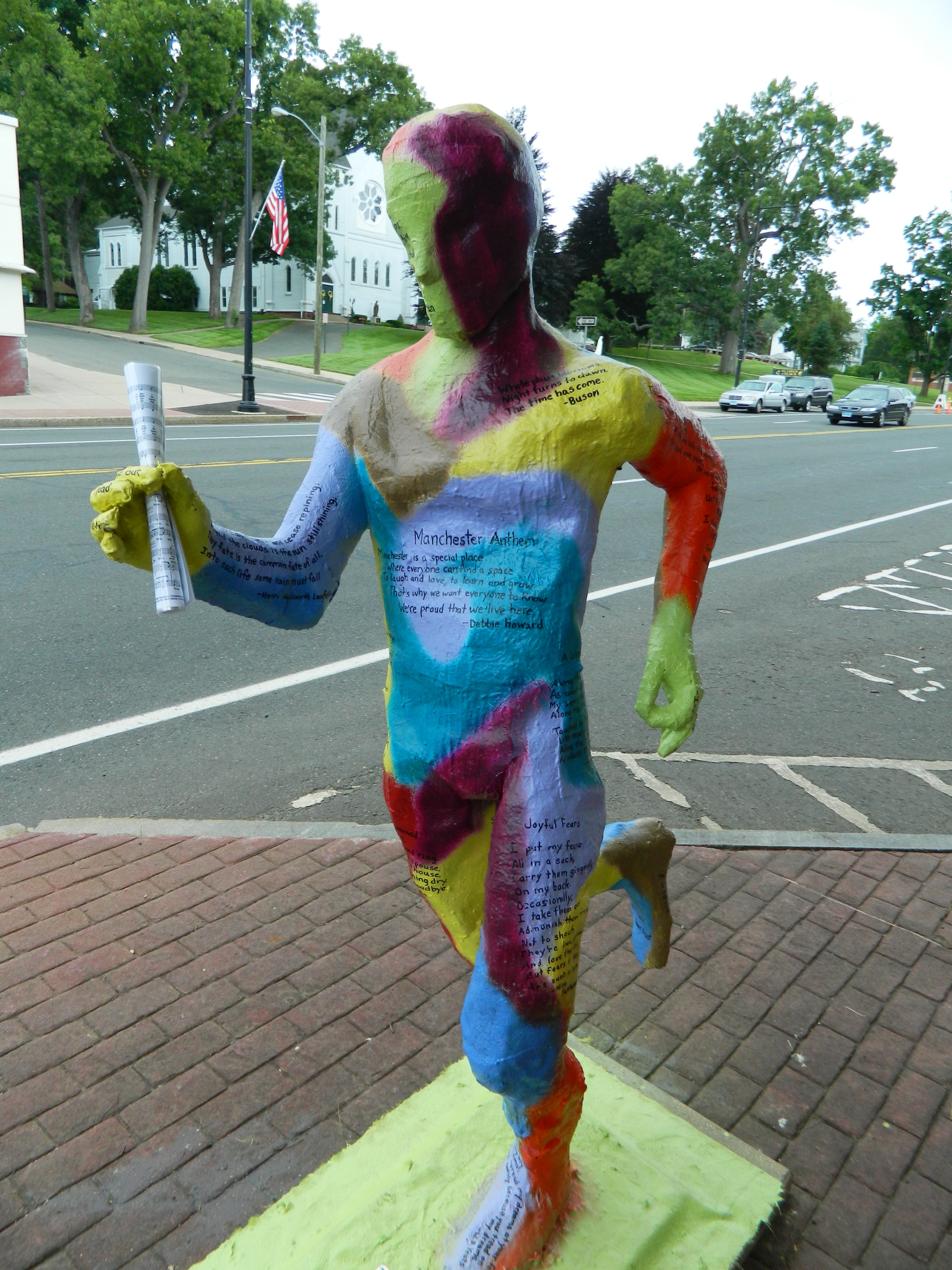 Last night the Runner’s Parade was officially unveiled, however, the sculptures were available for viewing in the preceding days. Among them are “Poetry in Motion” by the Wit & Wisdom Club, “Together We Are Run” – a unity piece with the Boston Marathon that recently marked one year since a terrorist bombing of the historic event, and several more. The sculptures lined the lower part of Main Street during the celebration of the 23rd “Pride in Manchester Week”, which kicked off on June 7 and runs through to tomorrow, Saturday, June 14.
