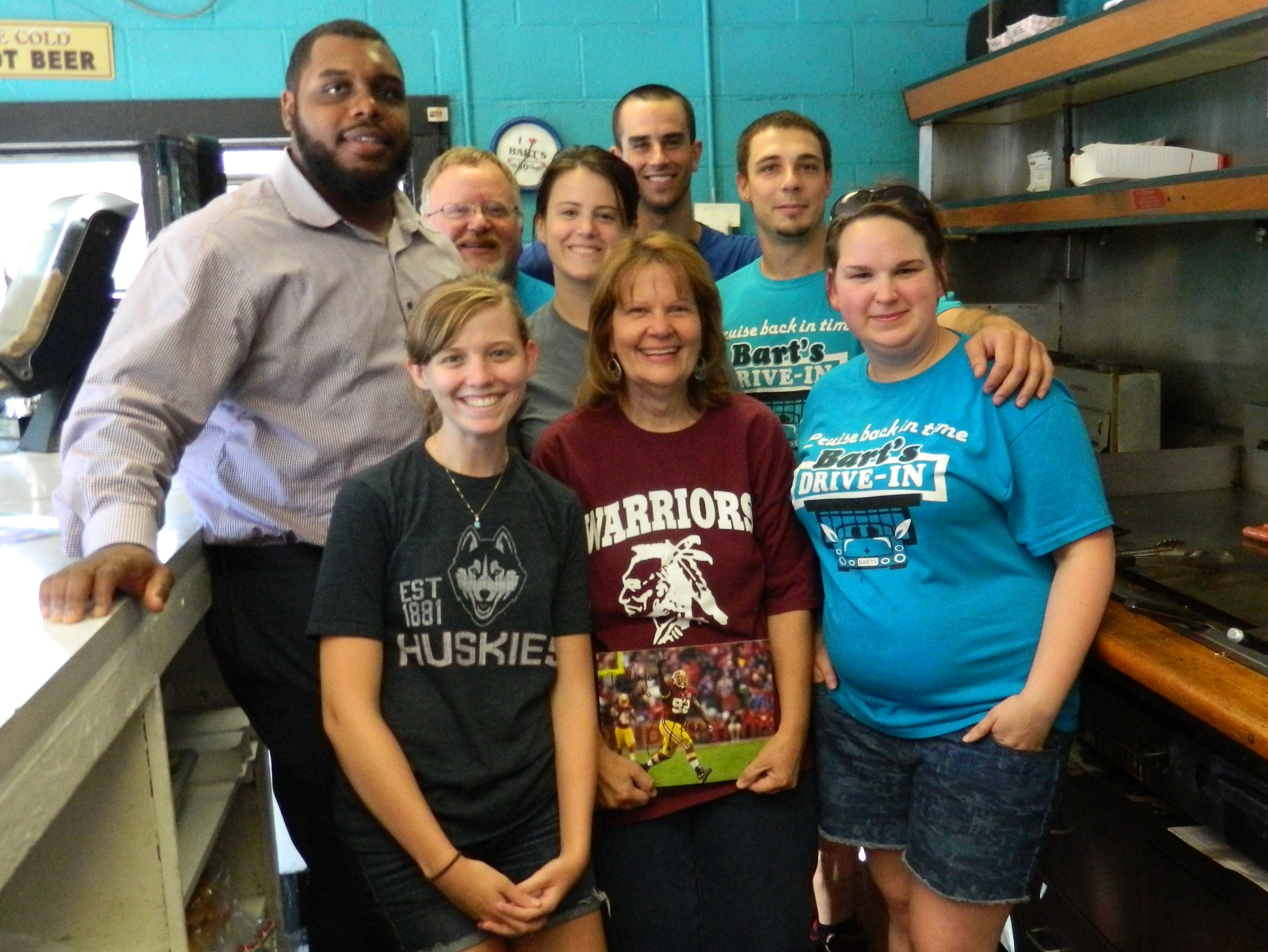 When he was a youngster NFL player Chris Baker and his friends rode their bicycles to “that hot dog place” just down the street from where he lived in Windsor, Connecticut. “That hot dog place” being the iconic Bart’s Drive-In Restaurant. On July 11, Baker was at Bart’s to promote the Chris Baker Foundation, a literacy foundation. He became the most recent among notable professional athletes and Hollywood celebrities whose presence at this Nutmeg state institution have added to its mystique since it opened more than sixty years ago.
