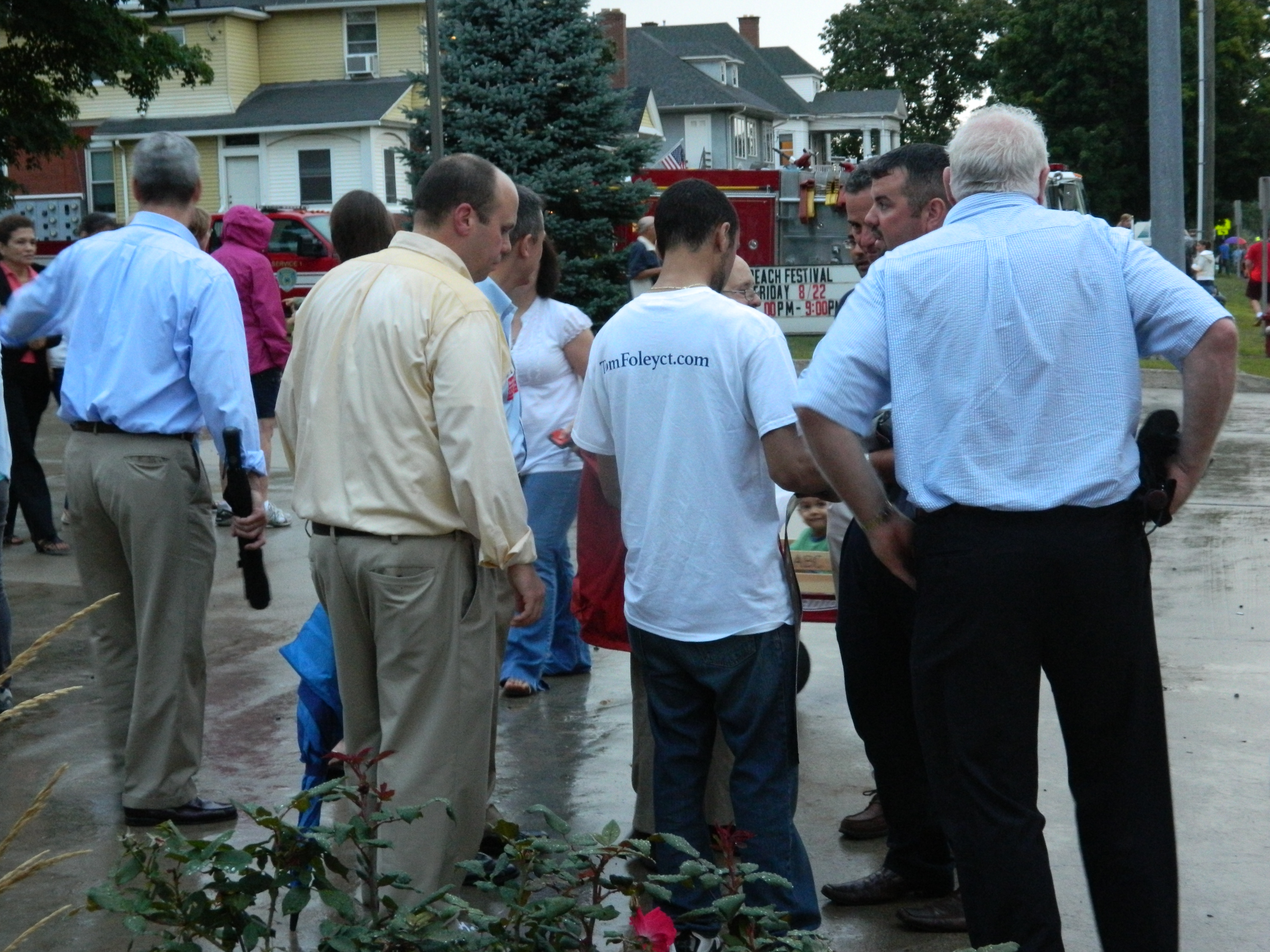 The Peach Festival has long been a popular stop for campaigning politicians and this one was no exception. Local Republicans gathered by the fire station awaiting the arrival of GOP gubernatorial candidate Tom Foley.