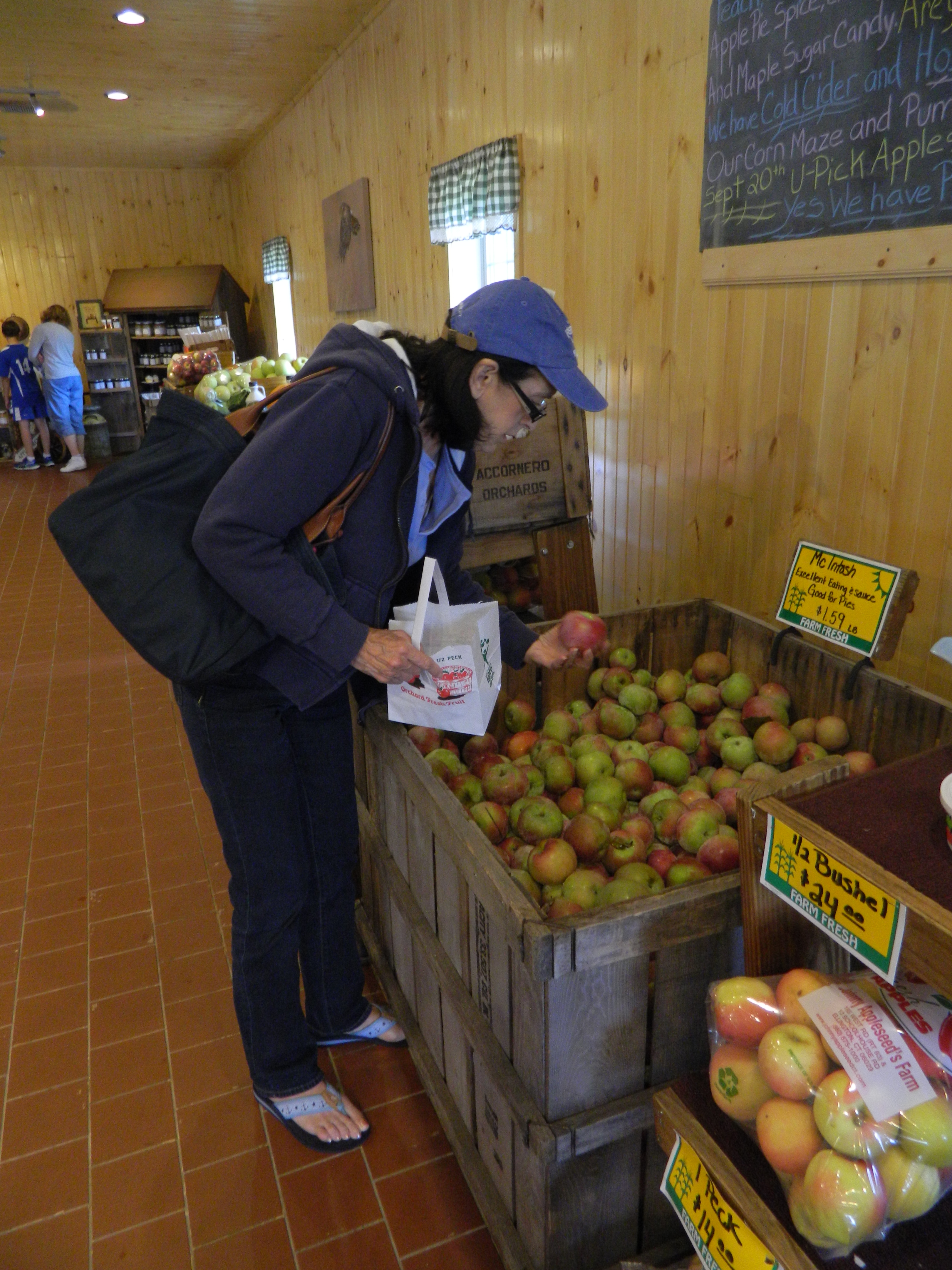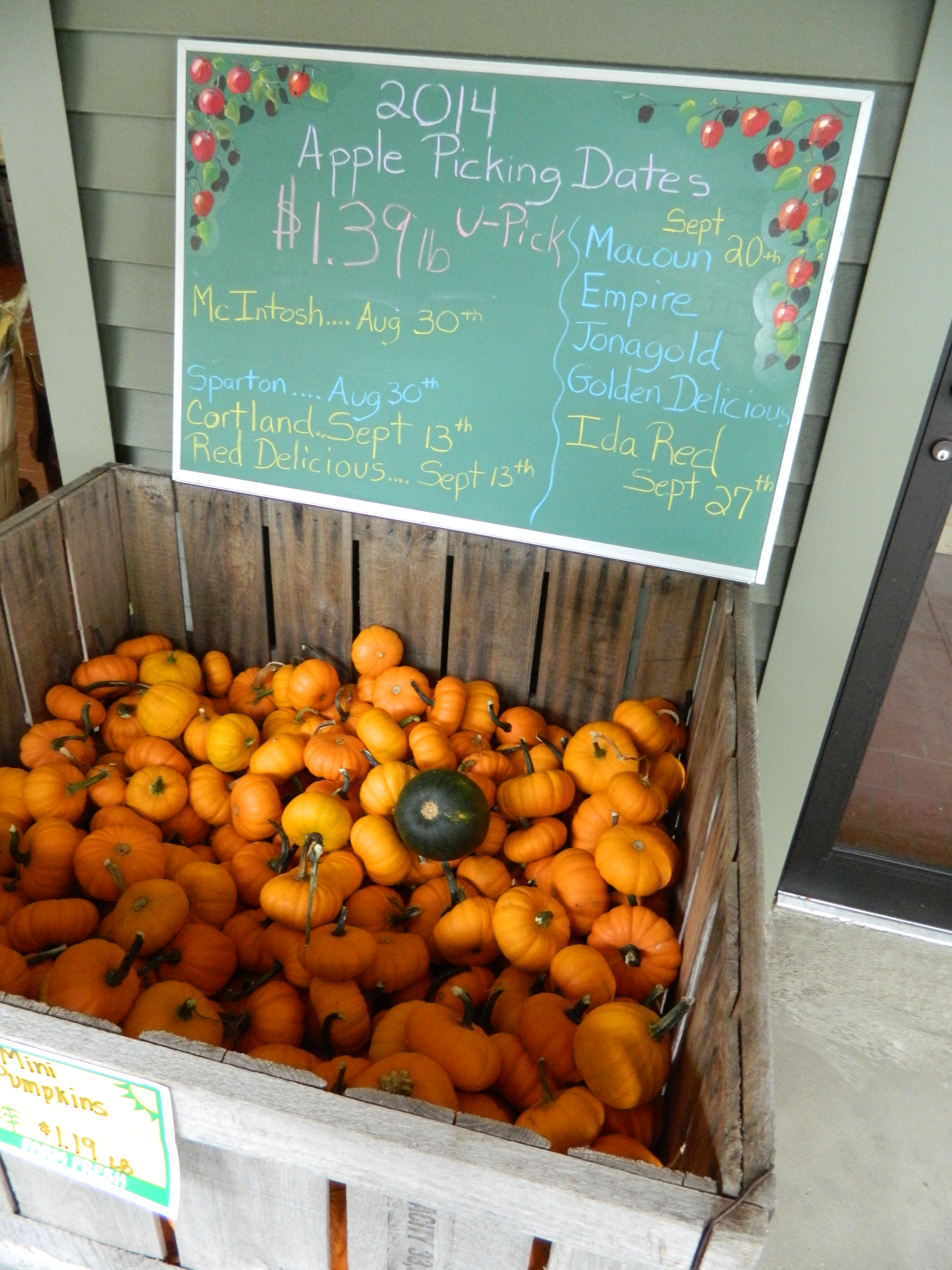 I revisited the Johnny Appleseed’s Farm stand in Ellington, Connecticut because their canopy/tent set-up has been replaced by a new home – a freestanding building. Also, I like this as an autumn spot. Consistently, they have pretty pumpkins, tasty fruit and pick-your-own opportunities.