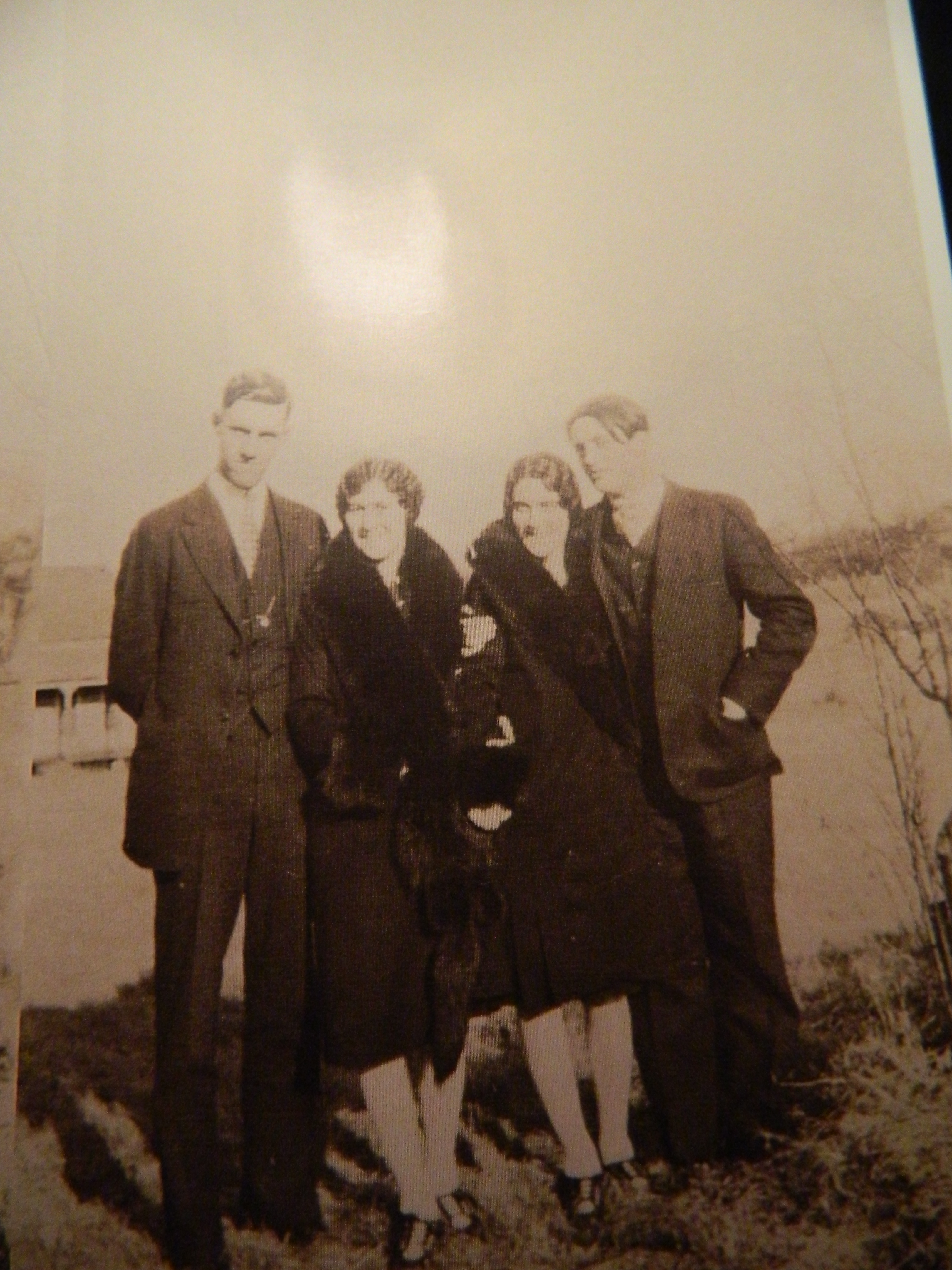 Her sister Anna’s Ice Box Cookies can be found in Mom’s Recipe Box. (The Generous sisters Anna and Cecelia – Mom – shown with their husbands Perce Spiller and John F. Bennett, Sr. – Dad).