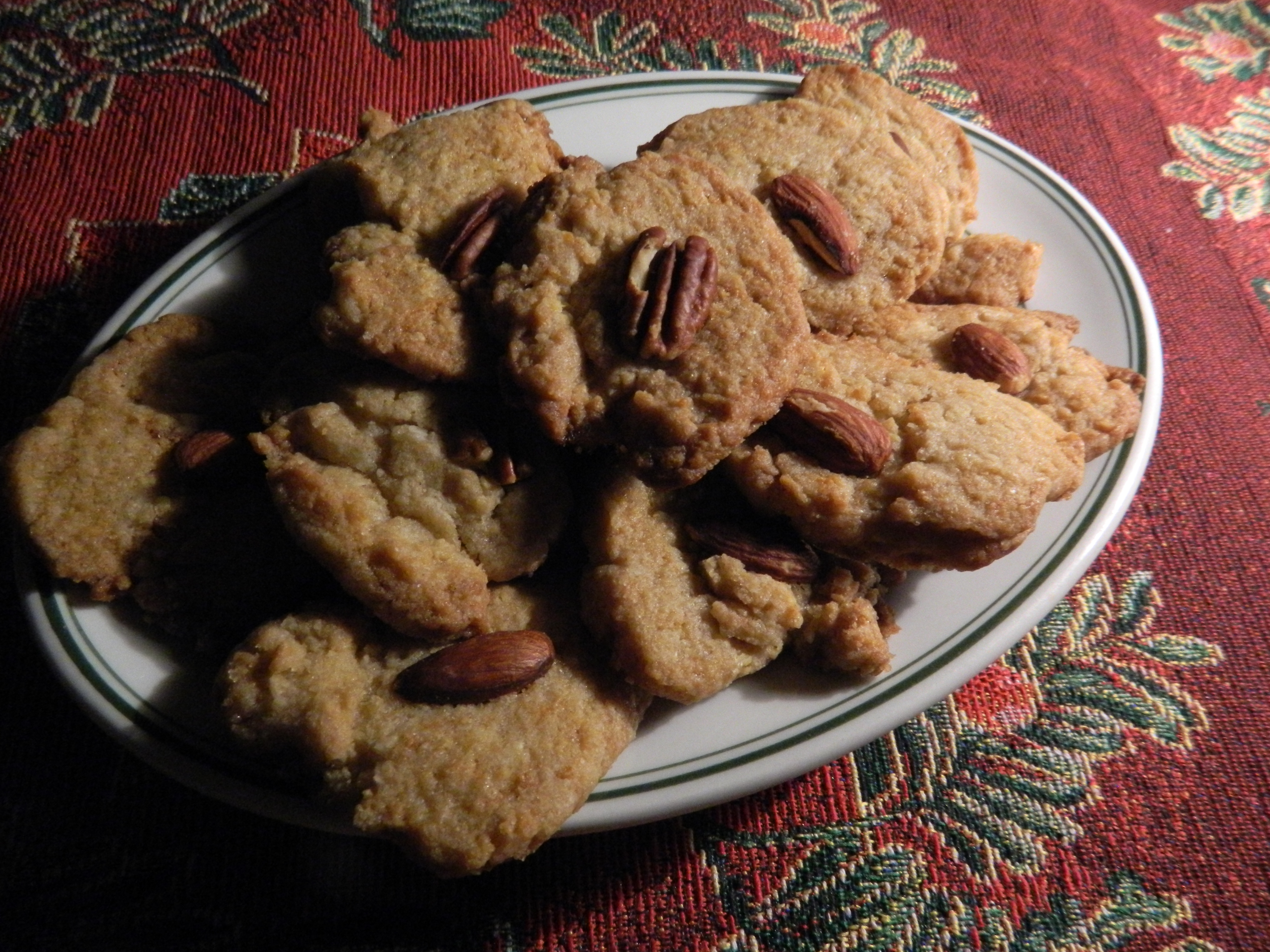 Rather than mixing in chopped walnuts I opted to place walnut and almond pieces on the cookie tops.