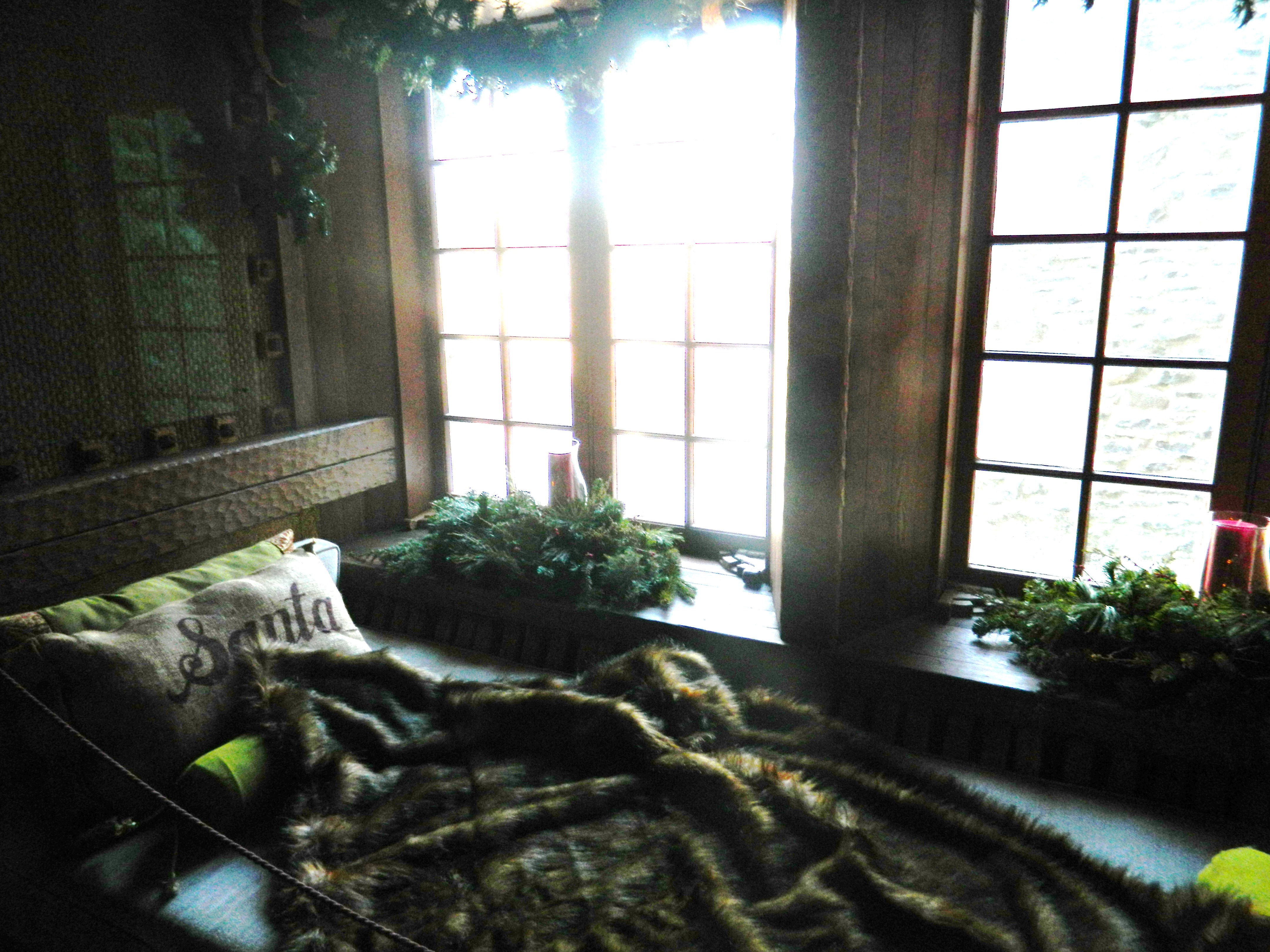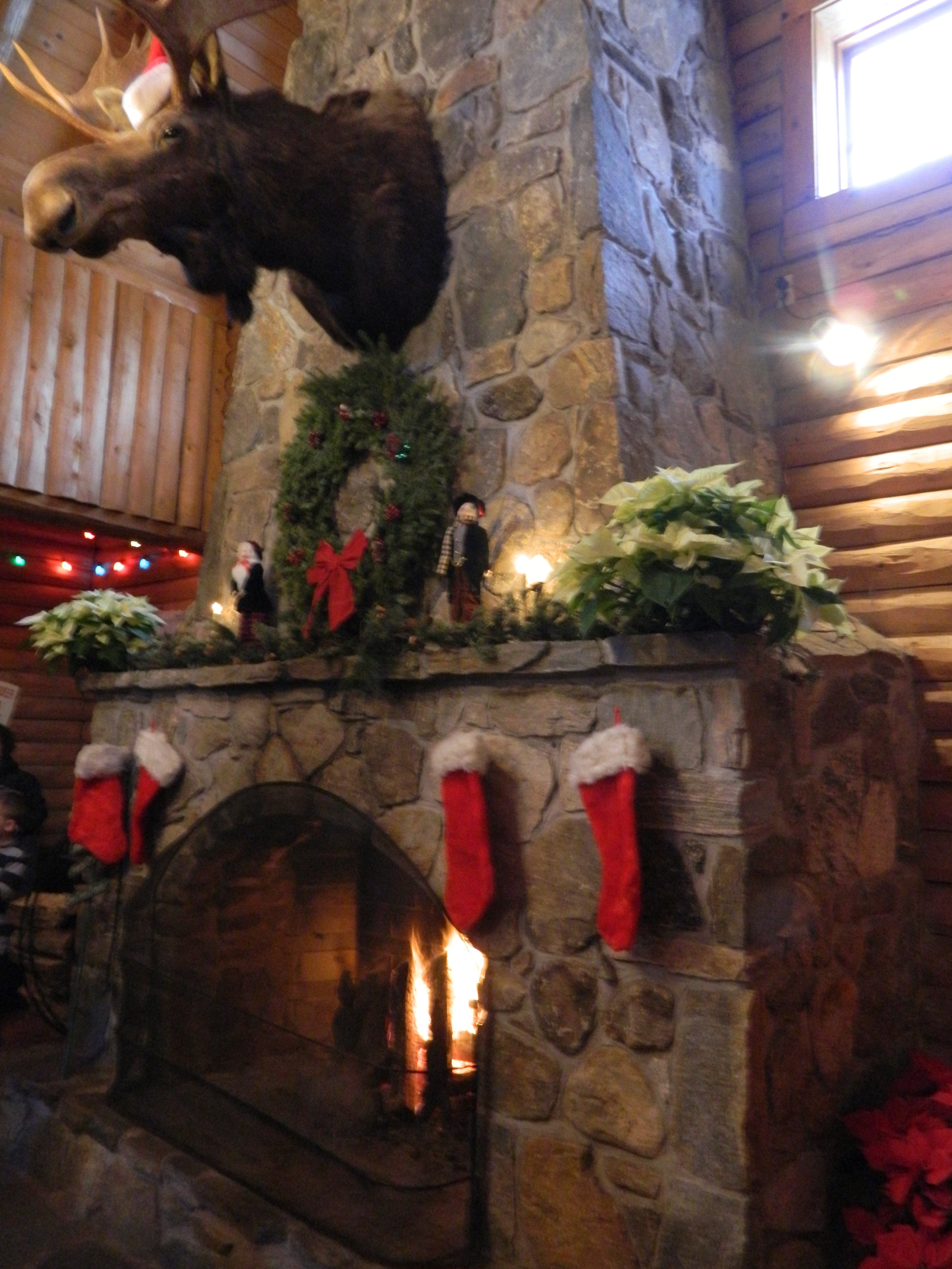 This past Sunday, the first day of winter, we were graced with a pretty snowfall. It made an ideal backdrop for a visit to Santa’s Workshop at Wickham Park. Here, I found a truly magical, hilltop log cabin which is transformed each December into a storybook-like Christmas adventure – complete with Santa, Mrs. Claus handing out hot chocolate and cookies, elves hard at work, a 15-foot Christmas Tree and an intriguing moosehead hung above a fireplace – and inside the hearth, a crackling fire.