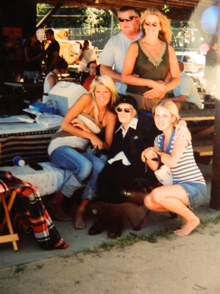 Nana with Mike, Melane, Maryann and Michelle at the picnic pavillion by Lake Hayward.