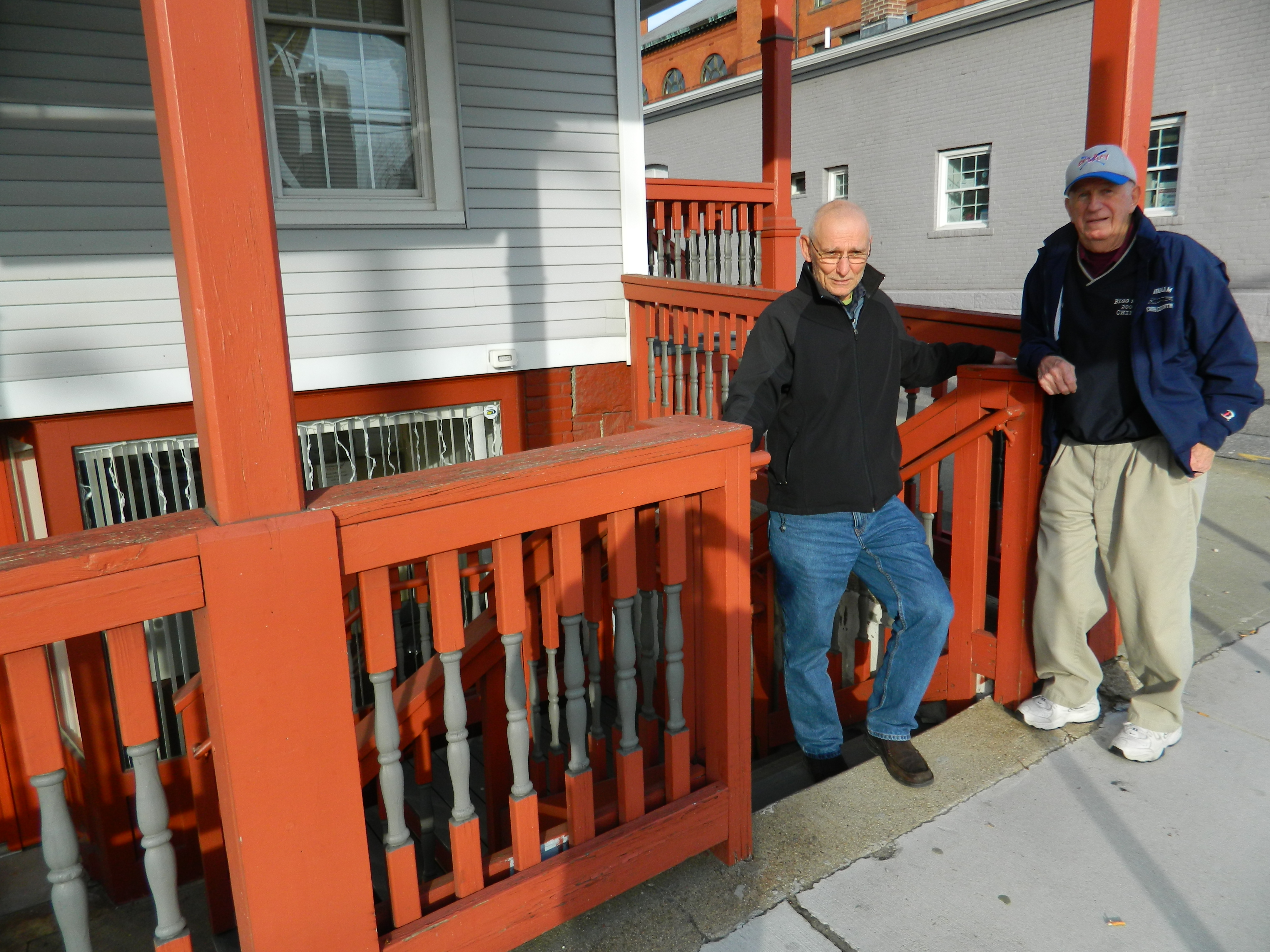 Photo by Jacqueline Bennett Bill Shea, president of Bigg Play and “Mooney” Haddad, vice president, are shown by the steps of the old Remy’s Grinder Shop, known as the dugout.