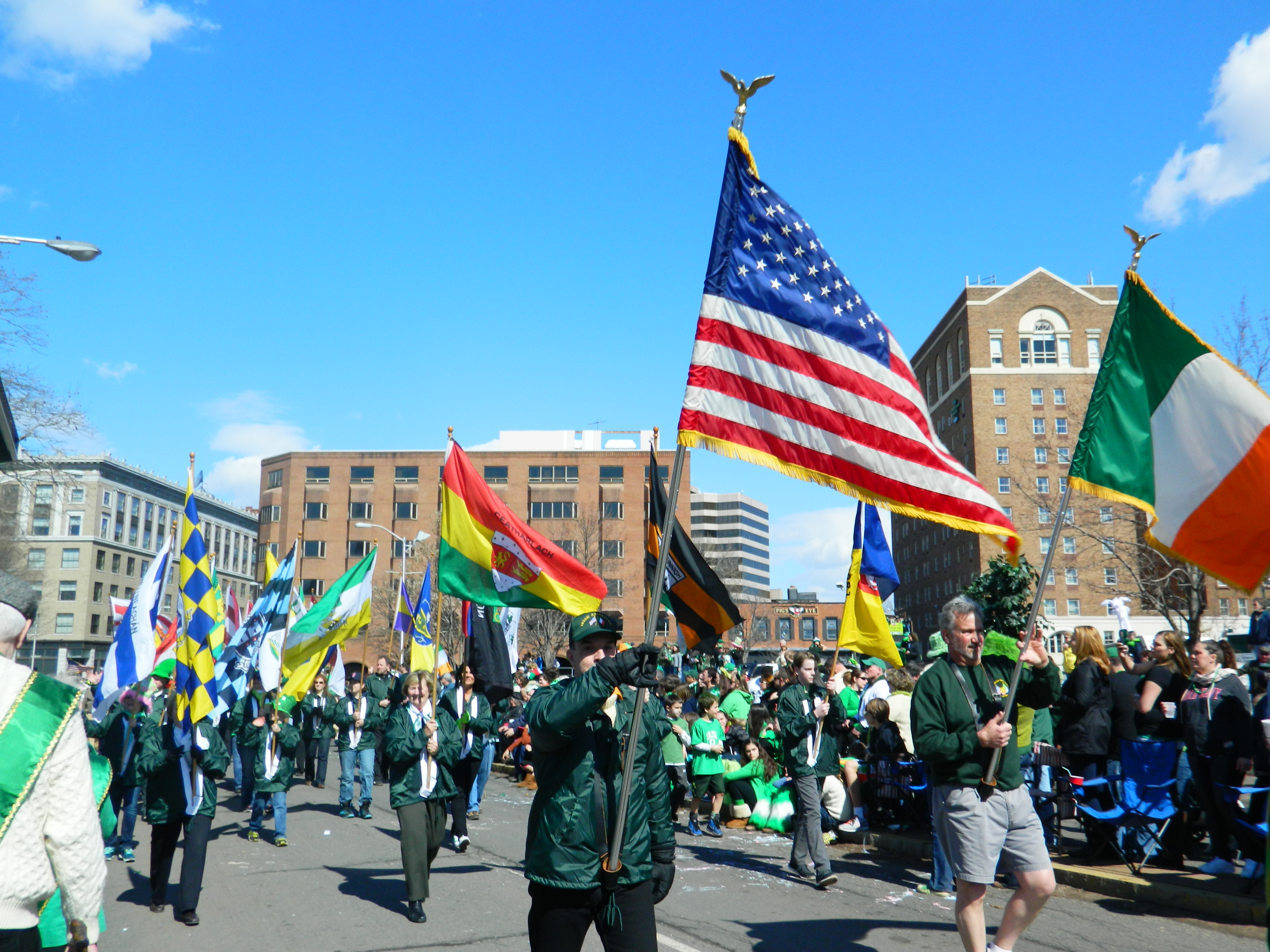 Photo by Jacqueline Bennett Hartford St. Patricks Day Parade 2014 highlighting the Order of the Flags – representing the thirty-two counties of Ireland.