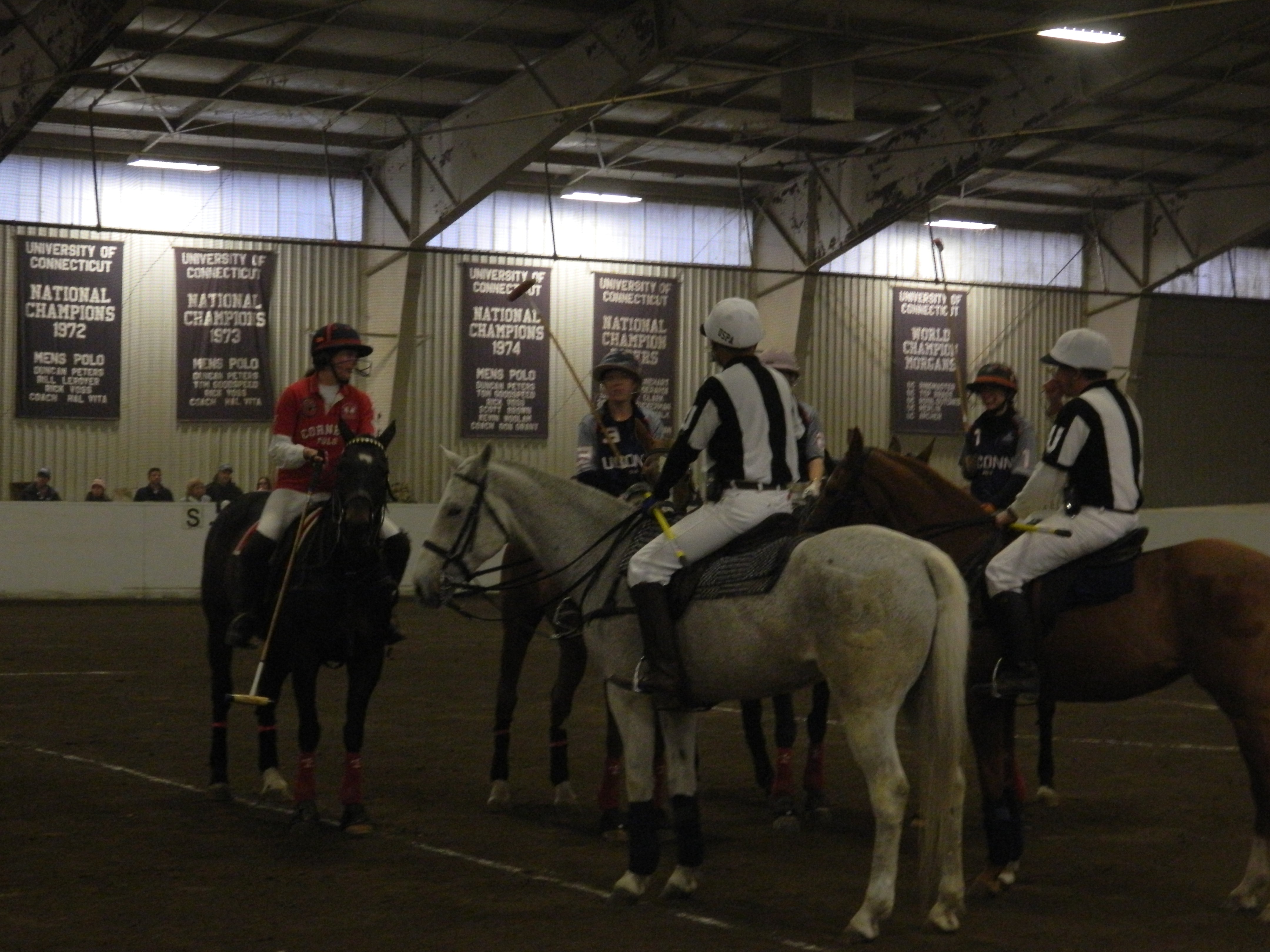 Like a flash of lightning, six competitors – three on each team – atop muscular horses, mallots in hand chased a small white ball inside Horsebarn Hill Arena Thursday night. The University of Connecticut Women’s Polo Team took on Cornell April 9, during the National Intercollegiate Championship being held in Storrs, CT from April 6-11.