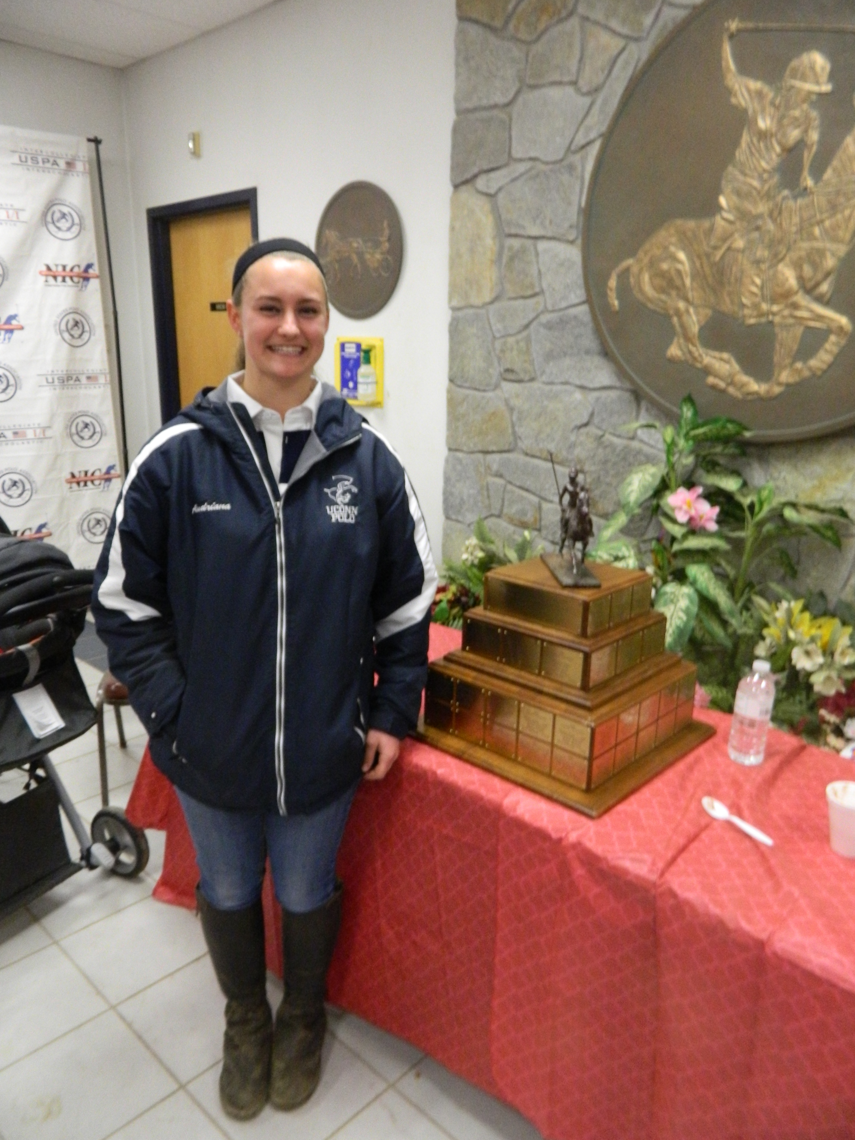 At UConn, polo is a club sport, supported mainly by donations. That explains the front reception area of the Horsebarn Hill Arena on this evening being filled with – yes – bake sale fundraising items. Polo is a notoriously expensive endeavor. Nonetheless, the fifty colleges and universities taking part in intercollegiate competition this season are making it accessible to those not necessarily ‘to the manor born.’ UConn polo ponies are owned and cared for by the Animal Science Department and many were donated by alumni.