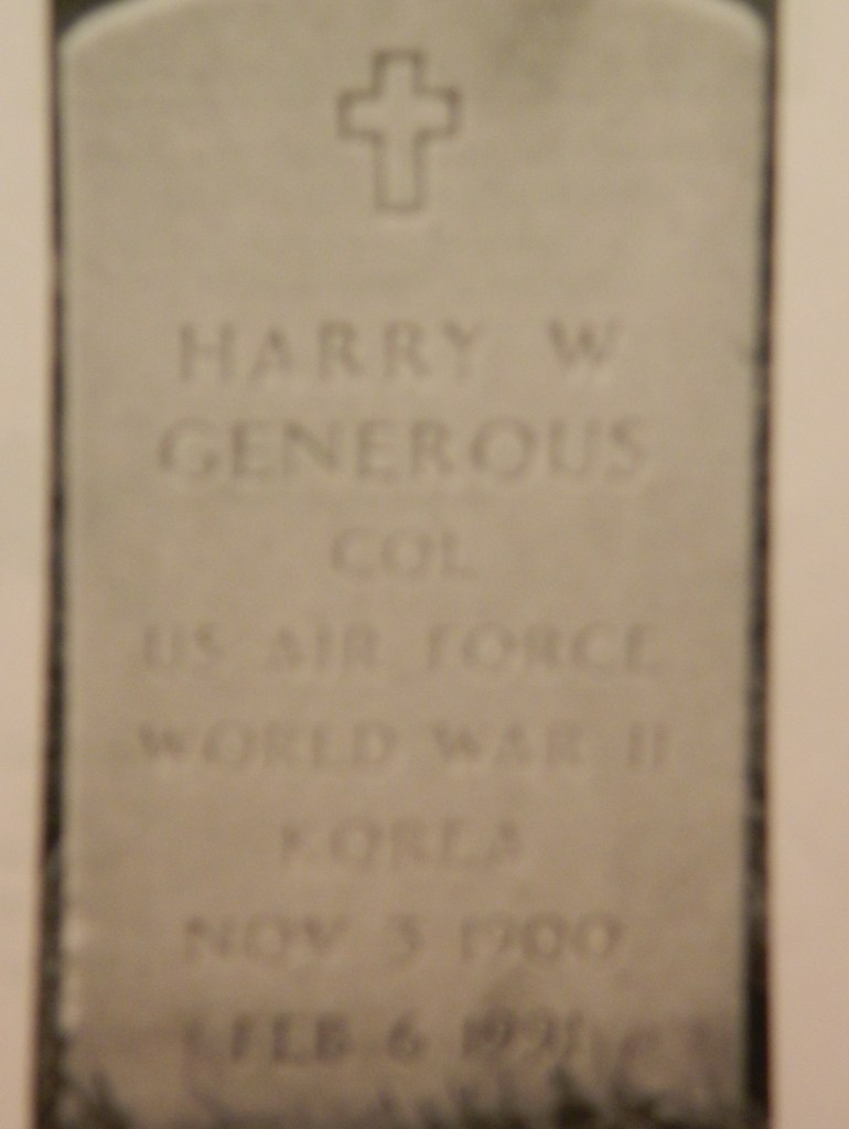 From “Find a Grave”. Col. Harry W. Generous is buried at Arlington National Cemetery,