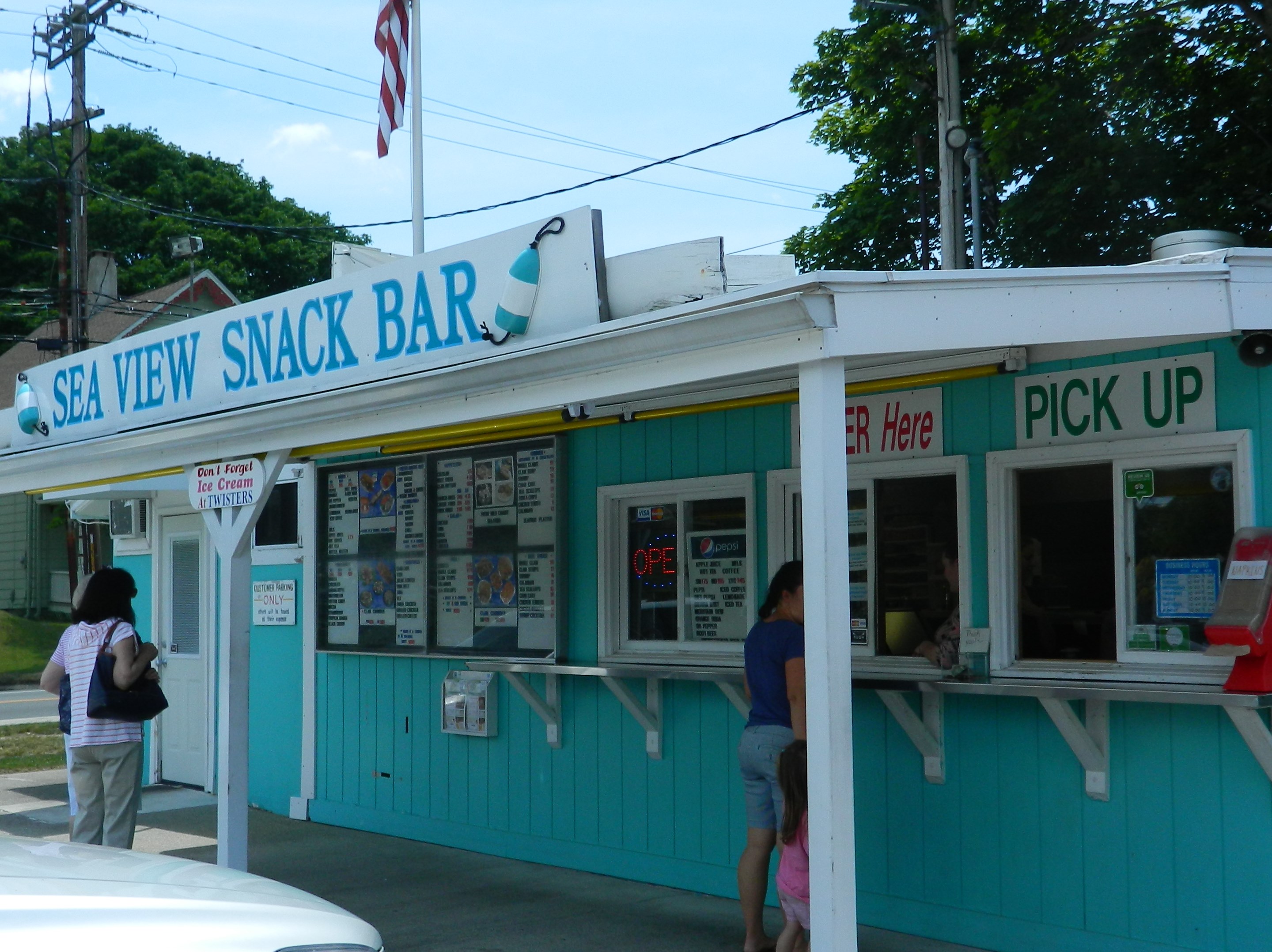 Sea View Snack Bar is located at 145 Greemanville Avenue, Mystic, CT 06355, serving lunch and dinner Sun-Thur 10 a.m. – 8 p.m. and Fri & Sat 10 a.m. to 9 p.m. 860-572-0096 seaviewsnackbar.com