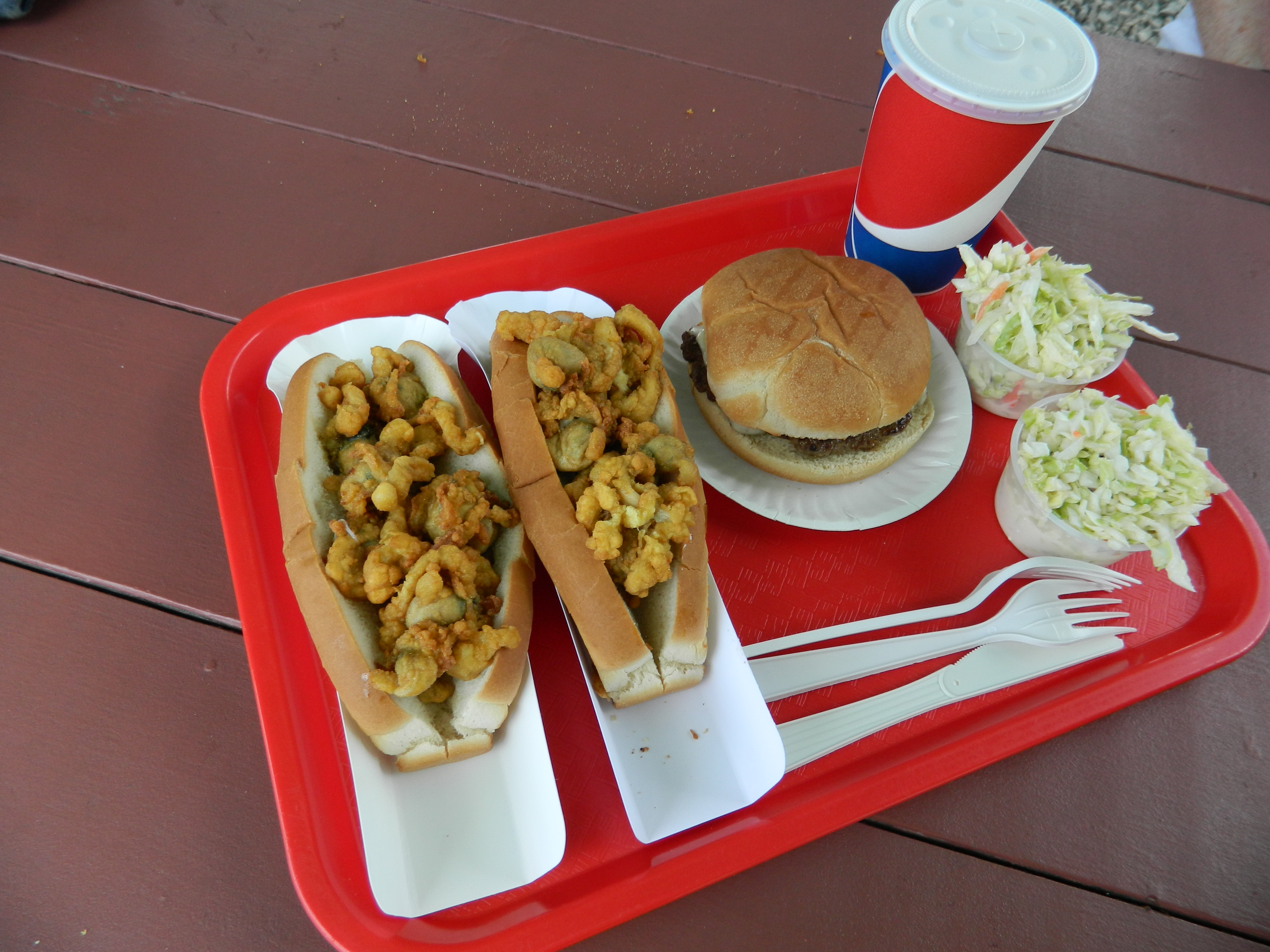The plump whole belly clam rolls got good reviews. A nice feature is a self-serve condiment space where you’ll find canisters of barbecue sauce and chilled tarter sauce which is kept on ice. Rather than being handed a small, side dollop of sauce, it’s easy enough to squeeze on as much as you want. And the rolls were soft and especially tasty.