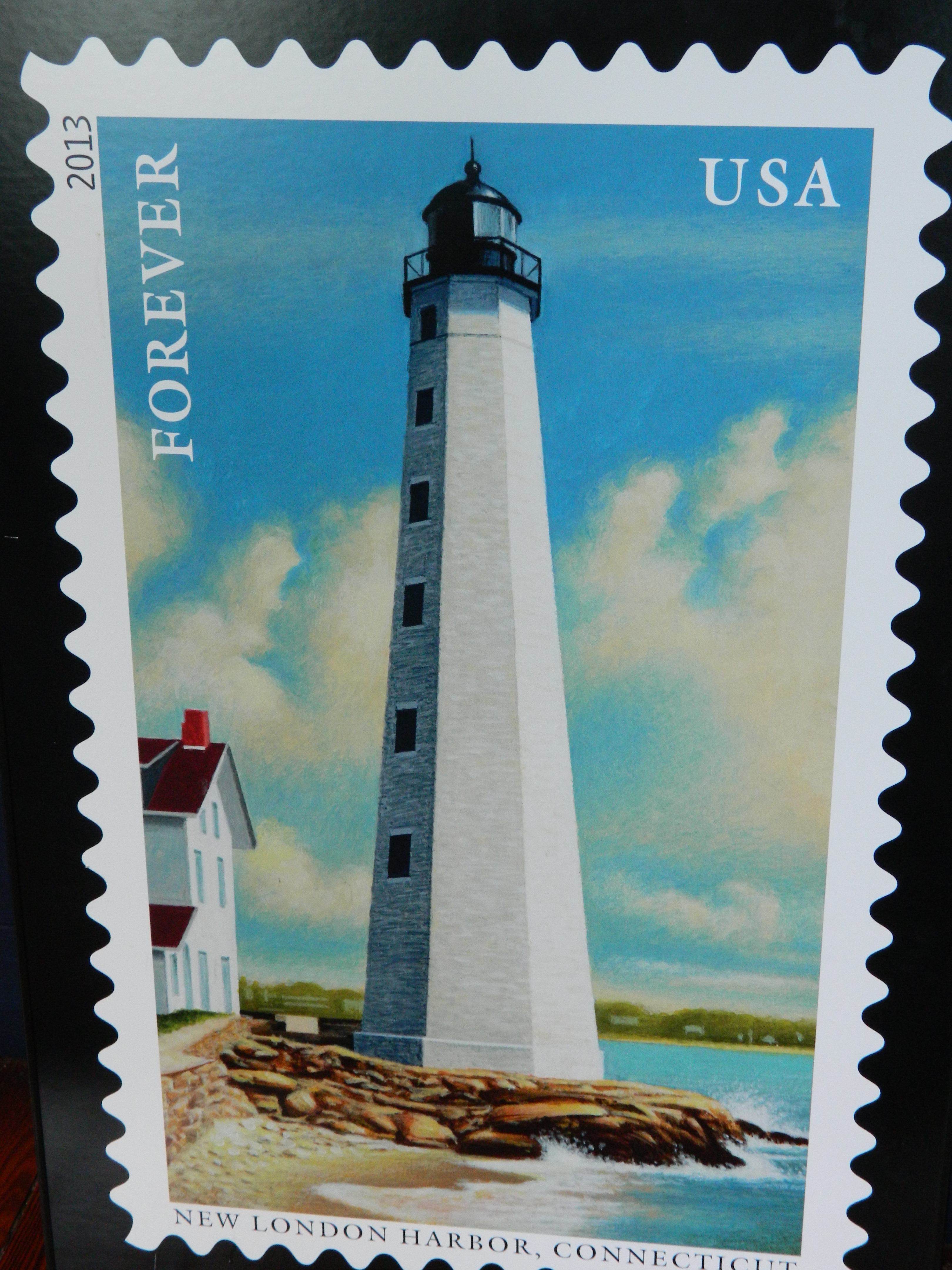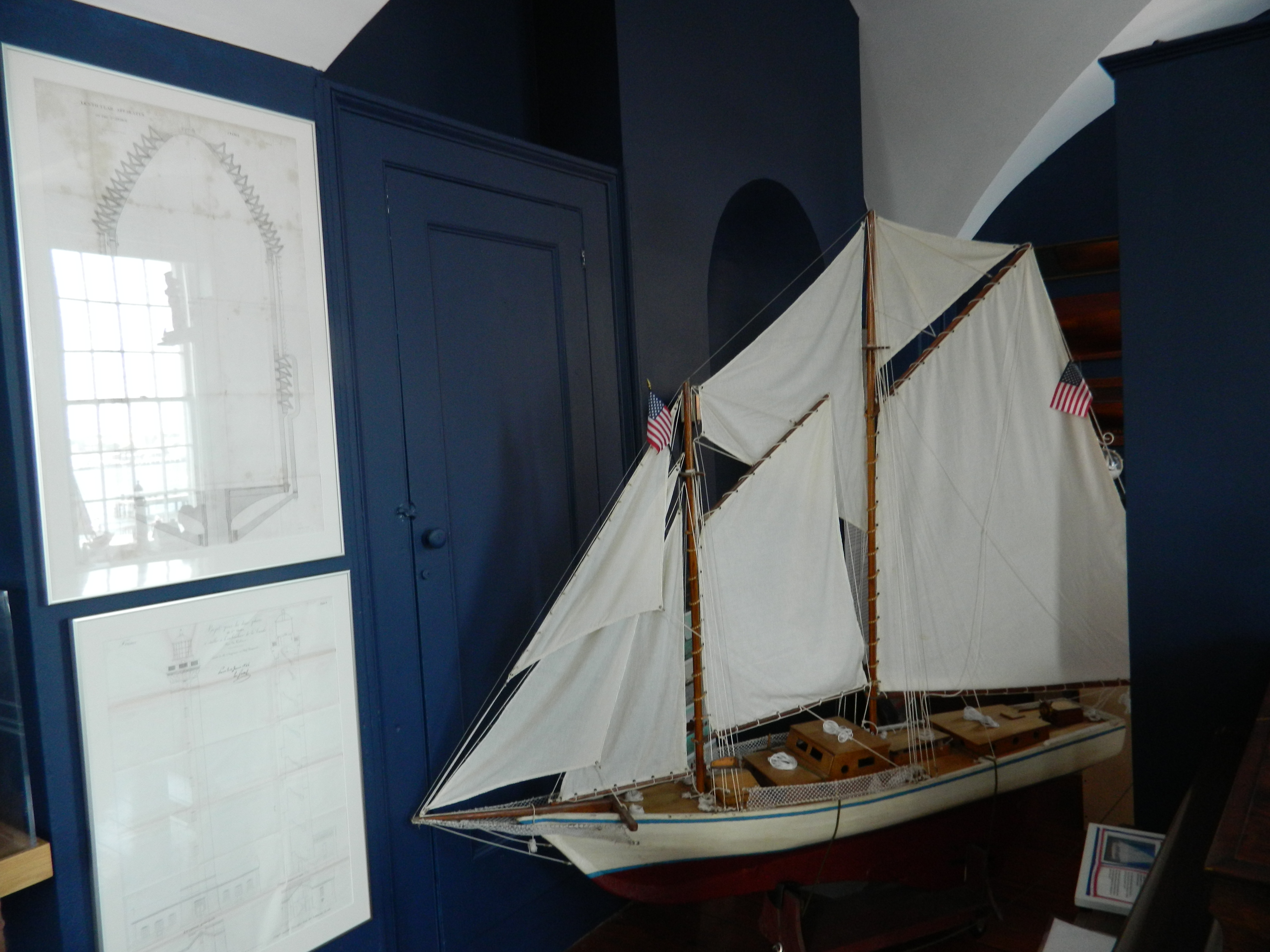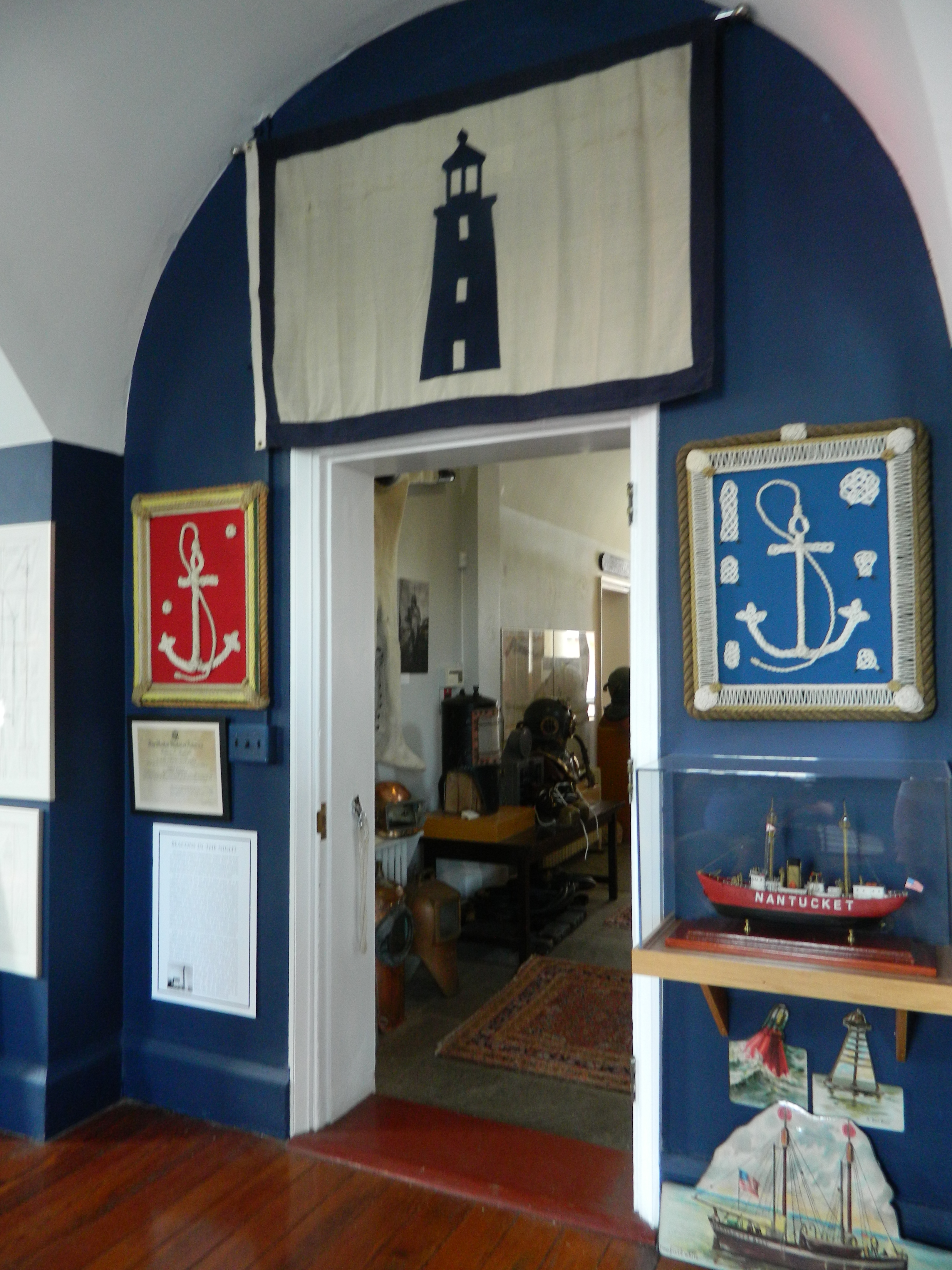 Also on display was a wall of sailors’ knots, local lighthouse replicas, a tall ship replica, anchor prints and a large reproduction of a commemorative New London Harbor “Forever” stamp issued in 2013. A small gift shop is located on the first floor.